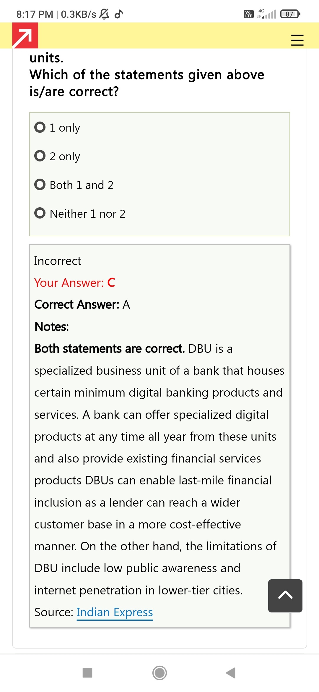 comment image 10th question answer should be C as per the explanation but it has been marked as A.