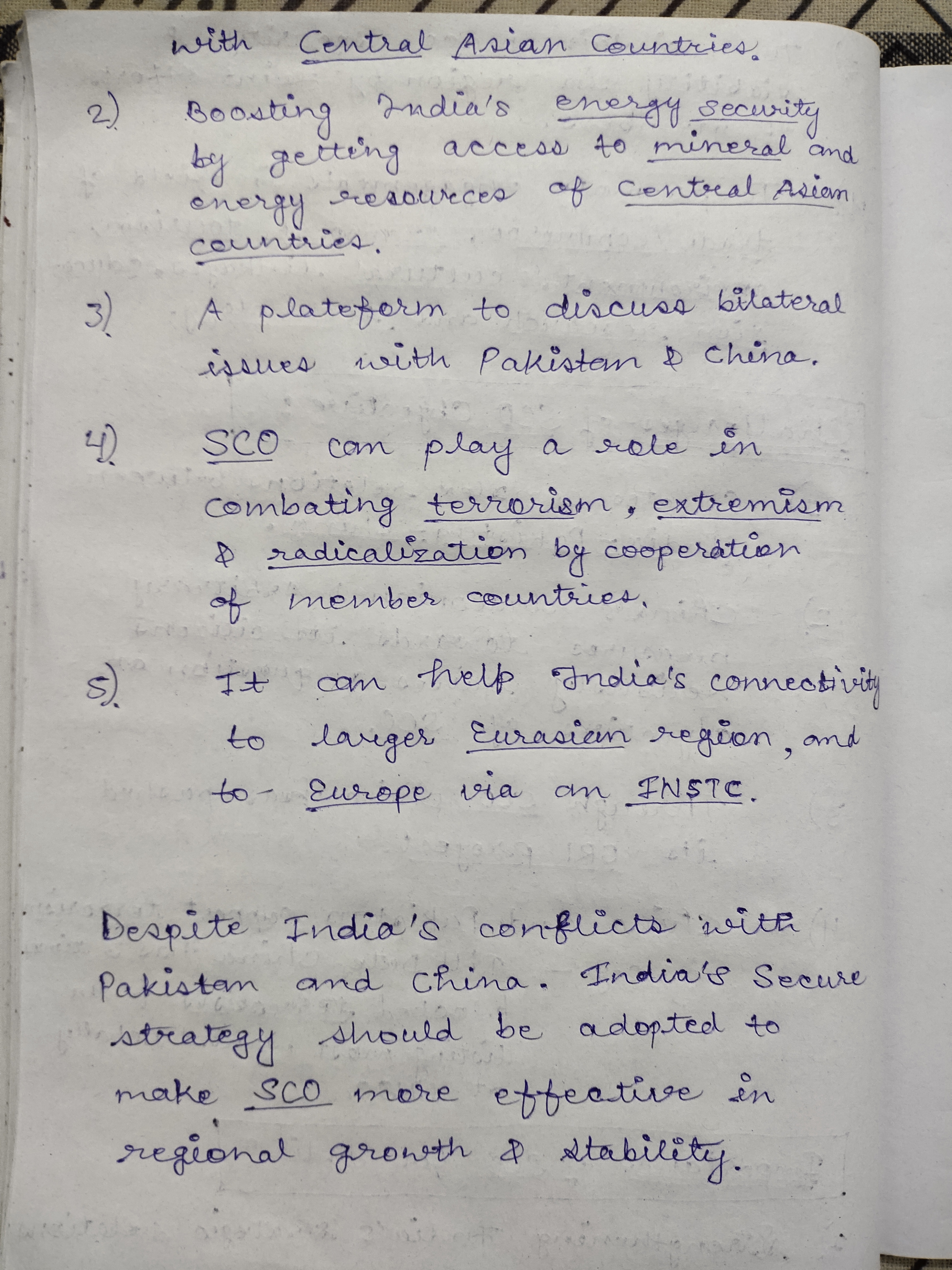 - SCO allows India to deepen its strategic reach in Central Asia. India already has substantial soft power potential (Buddhist linkages, Bollywood movies etc.) in Central Asia, which it can exploit through SCO.