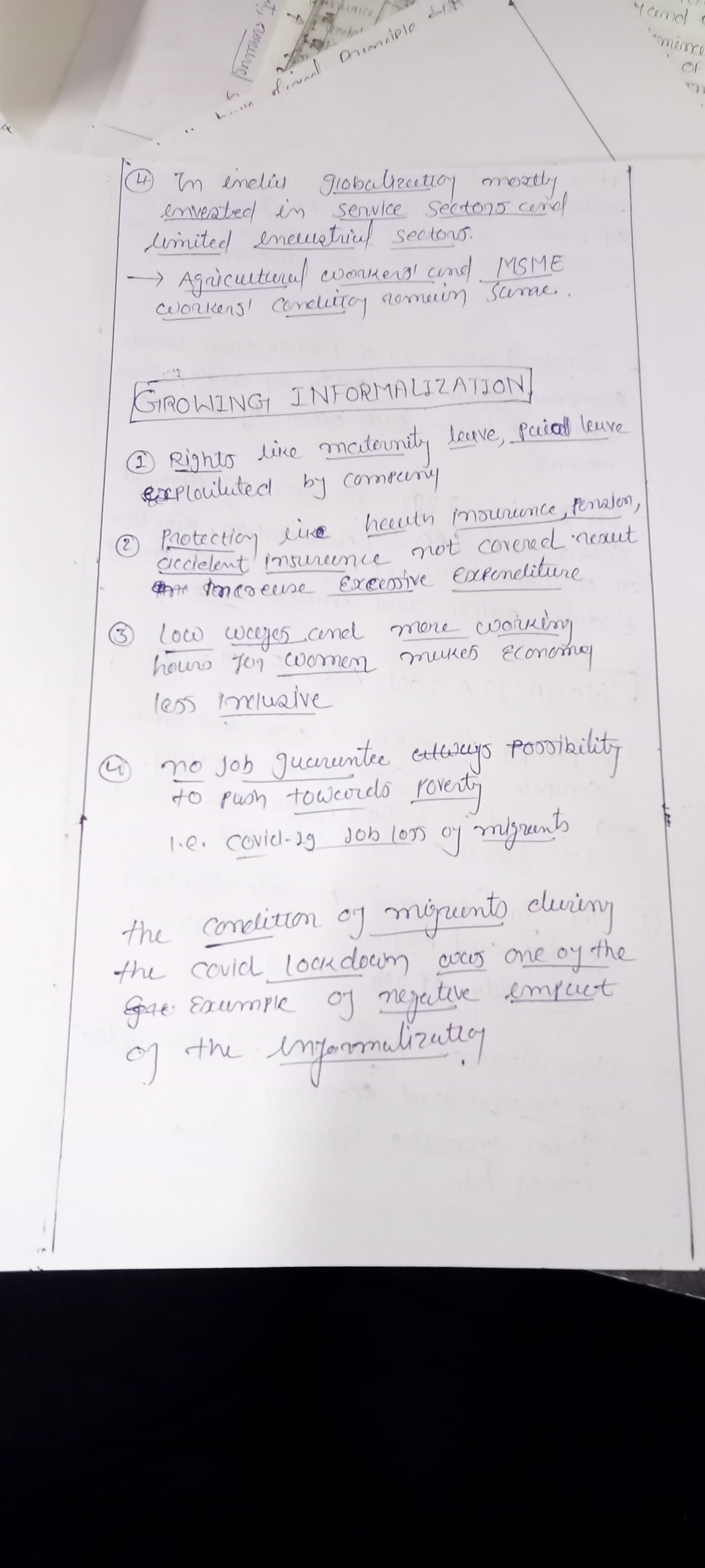 - Informalisation: Due to rise in the service sector many jobs were outsourced which were fulfilled by the informal sector. Further, contractual jobs led to insecurity in the labour sector and formal sector. Thus, many people took up informal jobs.
