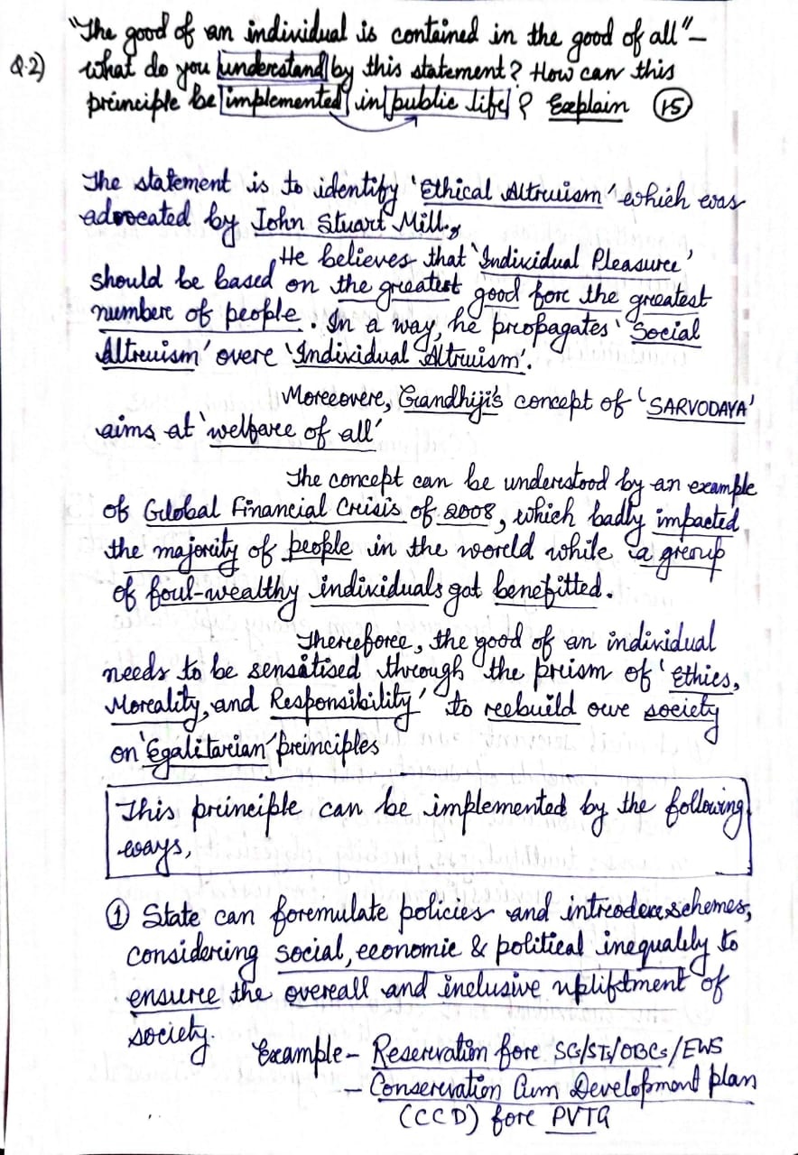 | Demand of the question Introduction. Contextual Introduction. Body. Discuss how good of an individual is contained in the good of all? How can this principle be implemented in public life? Conclusion. Way forward. |