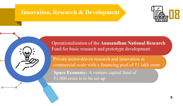 Private Sector Driven Research- Private sector-driven research and innovation at commercial scale with a financing pool of ₹1 lakh crore.