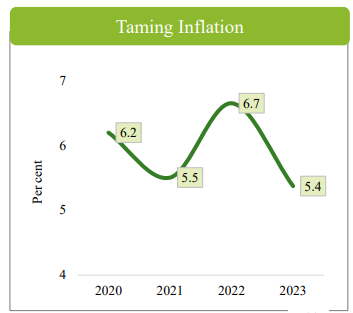 Inflation Target- India’s inflation continues to be low, stable and moving towards the 4 per cent target. Core inflation (nonfood, non-fuel) currently is 3.1 per cent.