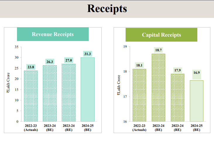 The total receipts other than borrowings for the year 2024-25, is estimated to be at Rs. 32.07 lakh crore.