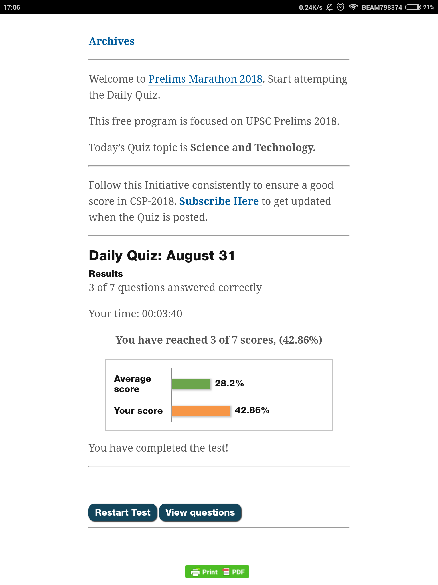 Welcome to Prelims Marathon 2018. Start attempting the Daily Quiz.
