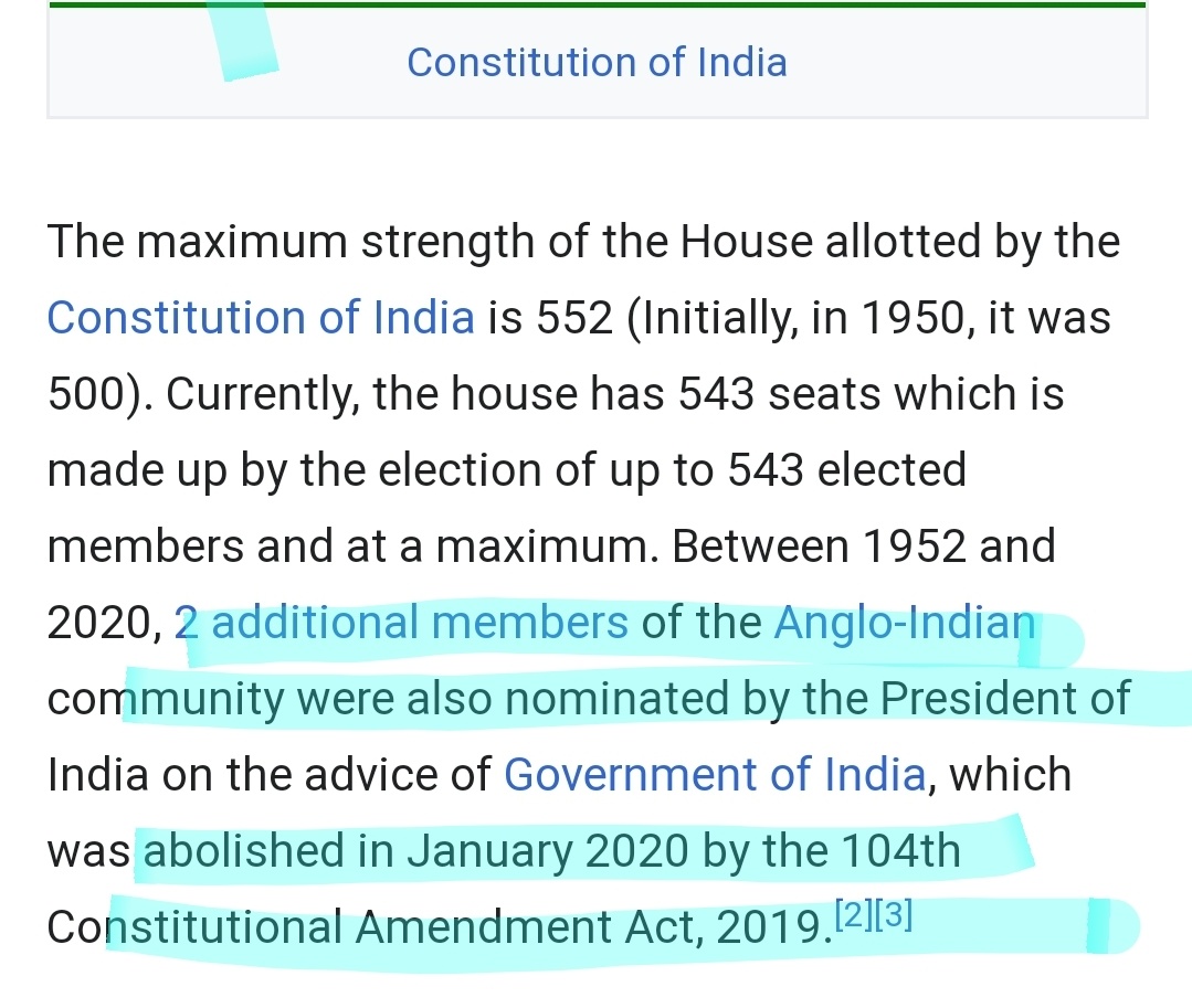 Ha 104 th amendment pata h tabhi to confusion ho raha h kyuki abhi bhi parliament of India ki site p strength 552 he dikh rha h