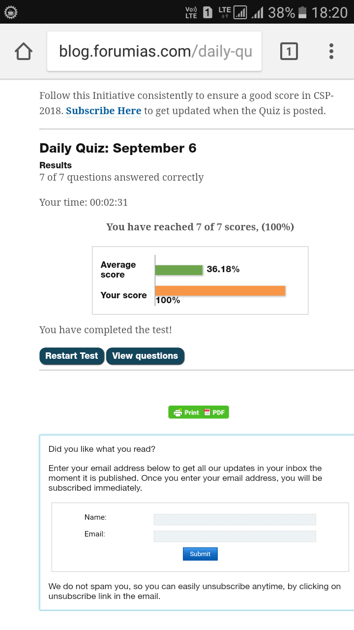 Welcome to Prelims Marathon 2018. Start attempting the Daily Quiz.