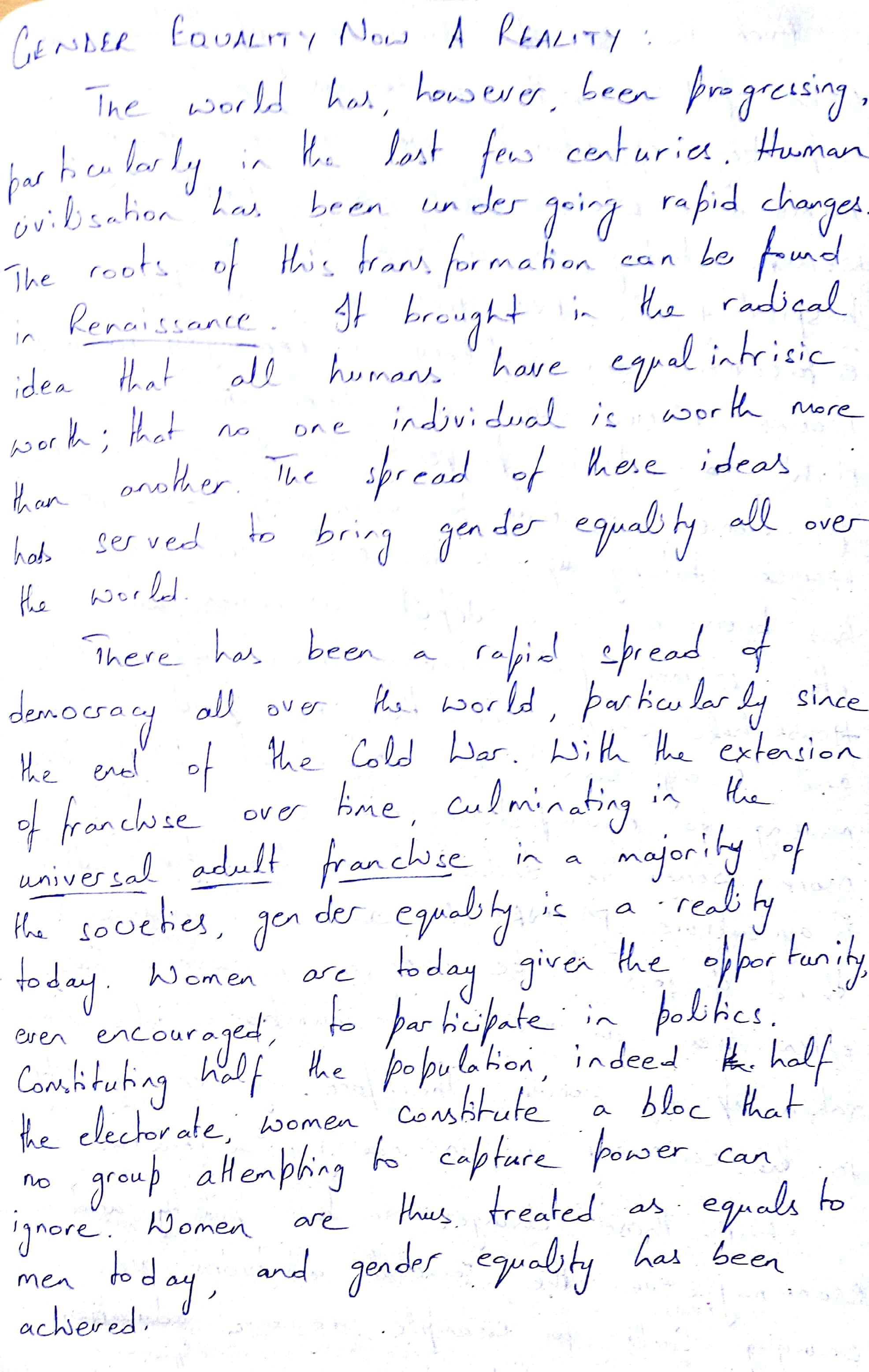 ESSAY : GENDER EQUALITY MYTH OR REALITY