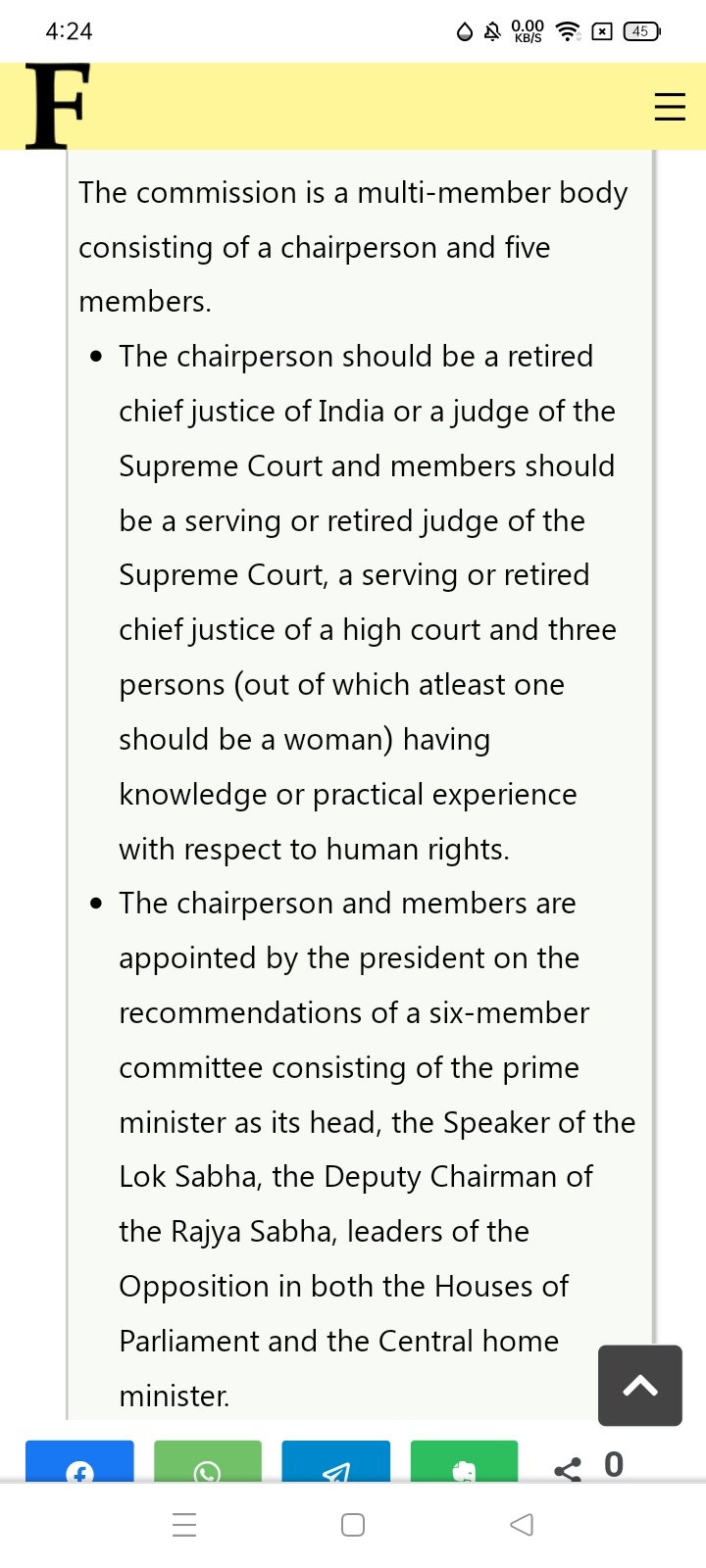 * The chairperson and members of” NHRC” are appointed by the ” President of India” on the recommendation of the” six members committee consisting of” PM , Speaker of LS , Deputy chairman of the RS, LoP of both the House of the parliament and Home minister”.