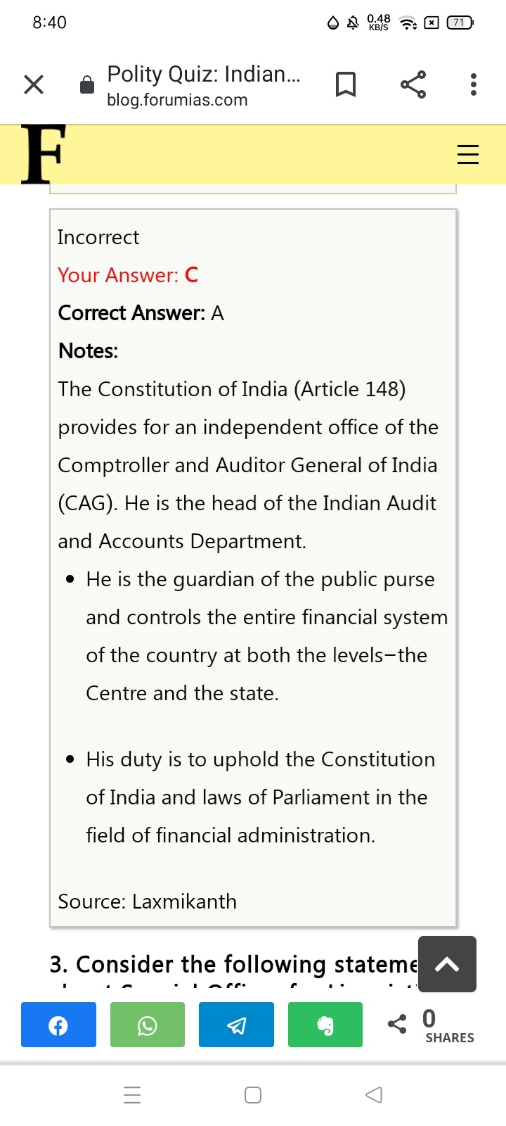 Polity Quiz: Indian Constitution – Revision – 7th November 2021