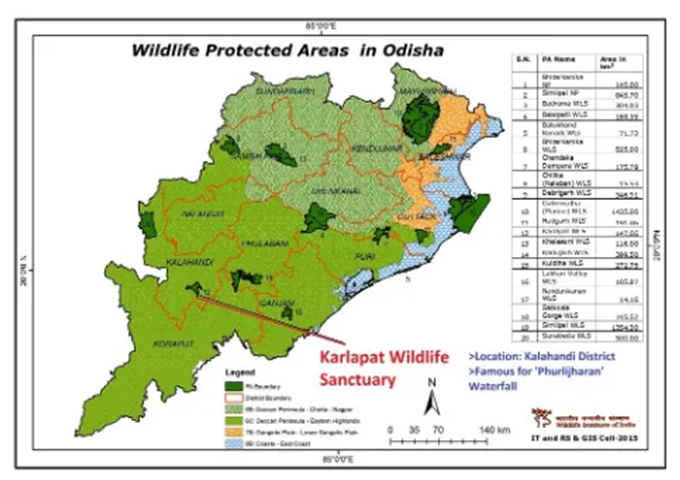 - It is a wildlife sanctuary located in the Kalahandi district in Odisha. The sanctuary is famous for the lush green dry deciduous forest.