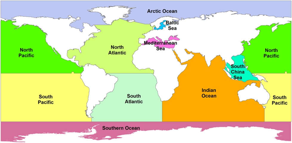 [D] Pacific Ocean, Atlantic Ocean, Indian Ocean and Arctic Ocean