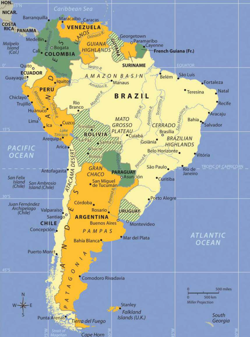 South American Countries and Tropic of Capricorn