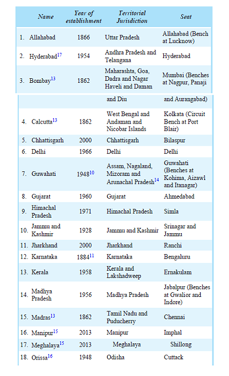 Q. Which of the following High courts has the largest number of benches?