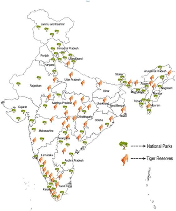 National Park: An area, whether within a sanctuary or not, can be notified by the state government to be constituted as a National Park, by reason of its ecological, faunal, floral, geo-morphological, or zoological association or importance, needed to for the purpose of protecting & propagating or developing wildlife therein or its environment.