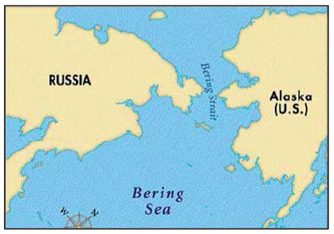 - Located between Alaska (USA) and Russia, the Bering Strait is the marine gateway between the Arctic and the Pacifi c Ocean. Atits narrowest point, the strait is only 55 miles wide.