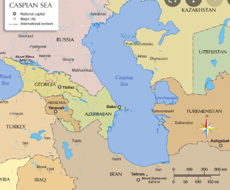 3.It is surrounded by Georgia, Iran, Kazakhstan, Russia, and Turkmenistan.