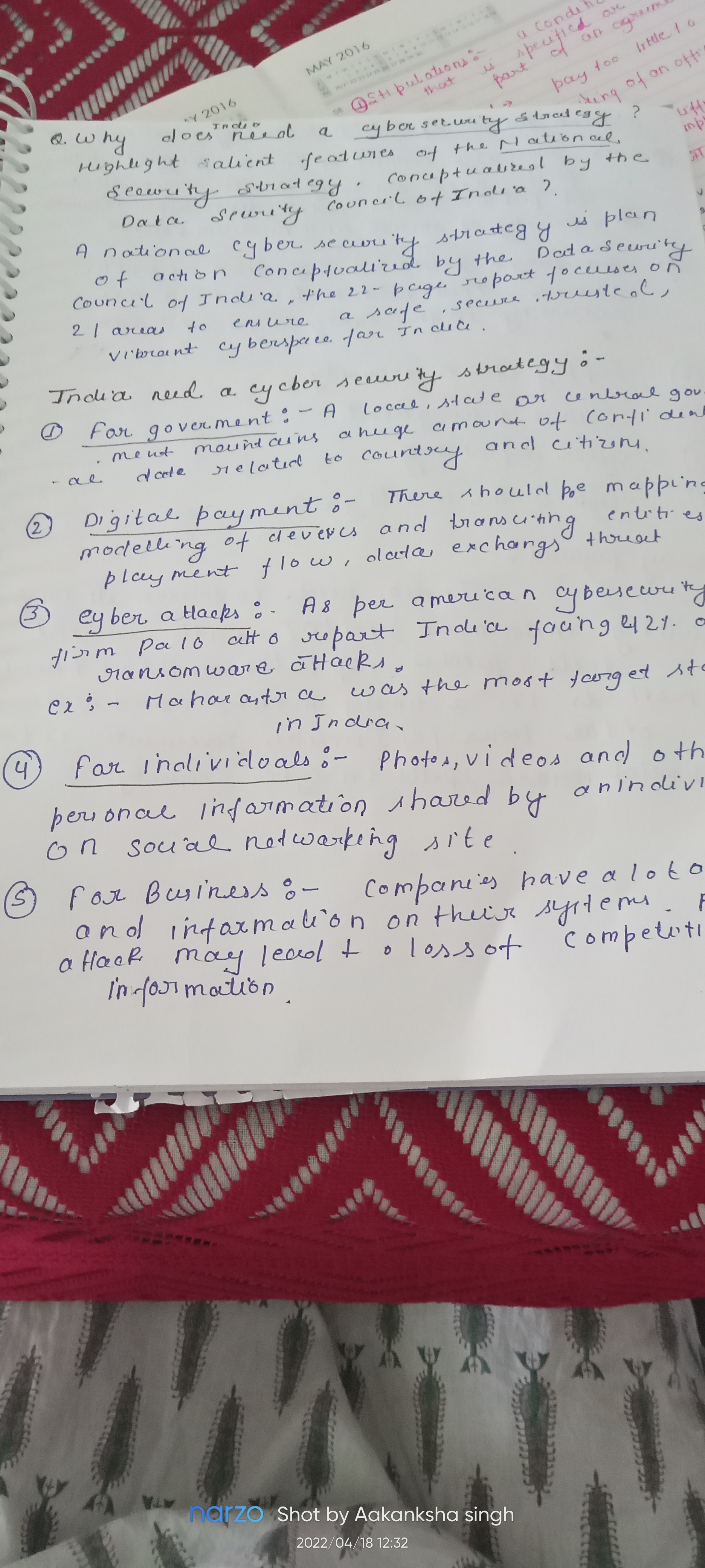 1.) Why does India need a cybersecurity strategy? Highlight salient features of the National Cyber Security Strategy, conceptualized by the Data Security Council of India (DSCI).