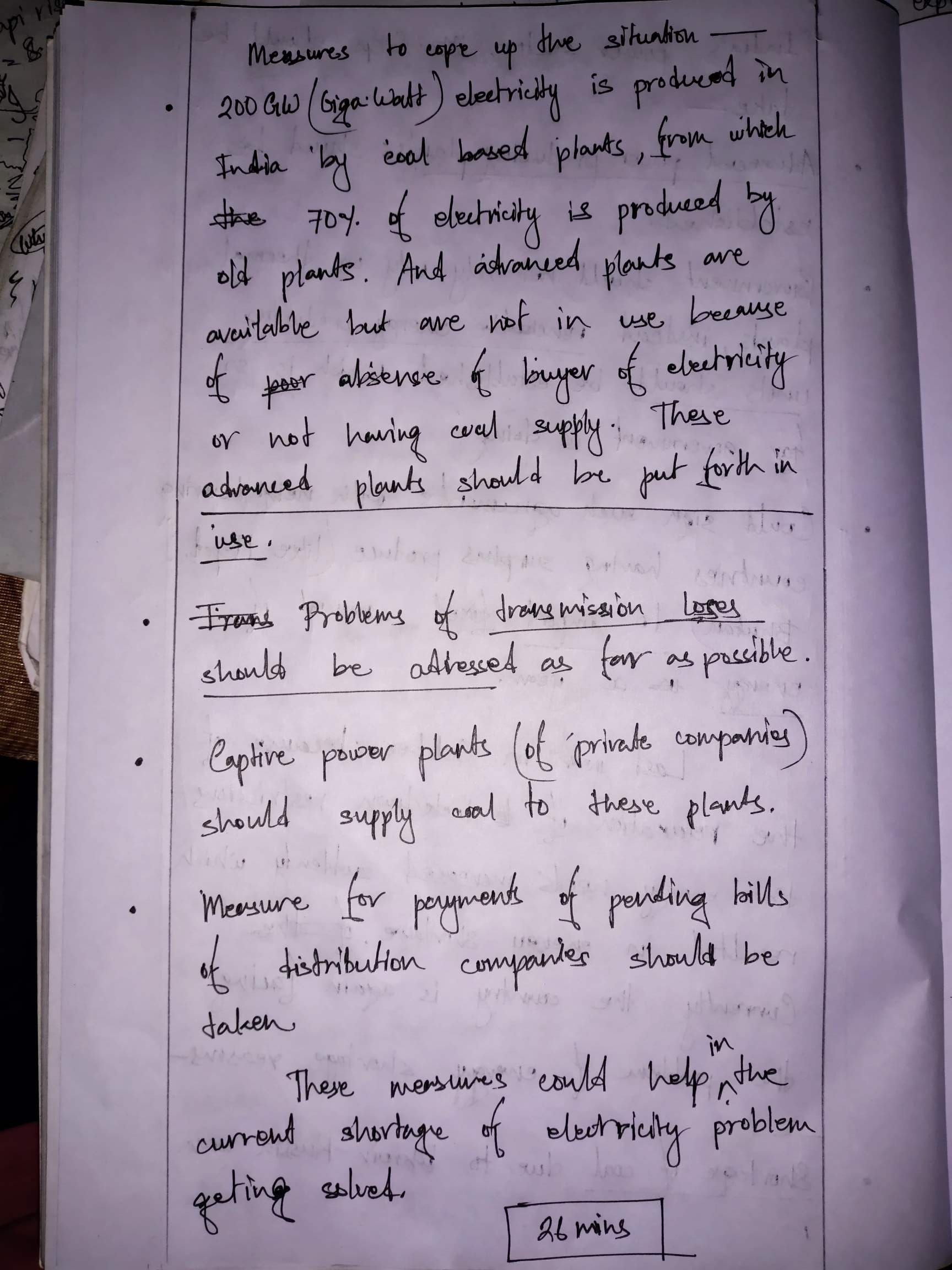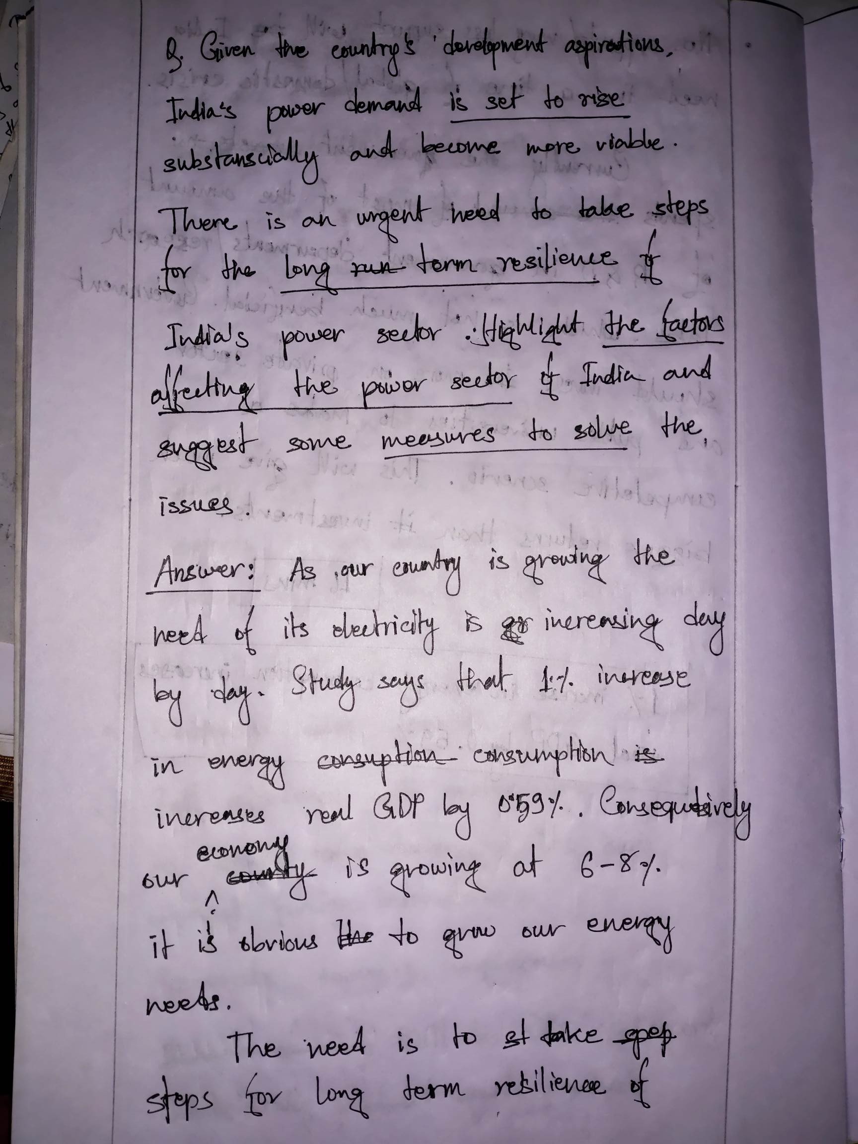 Good Attempt. You have tried to cover all the issues affecting power sector in India. Writing is fair, legible. Arguments provided in point-wise manner, hence easy to read.