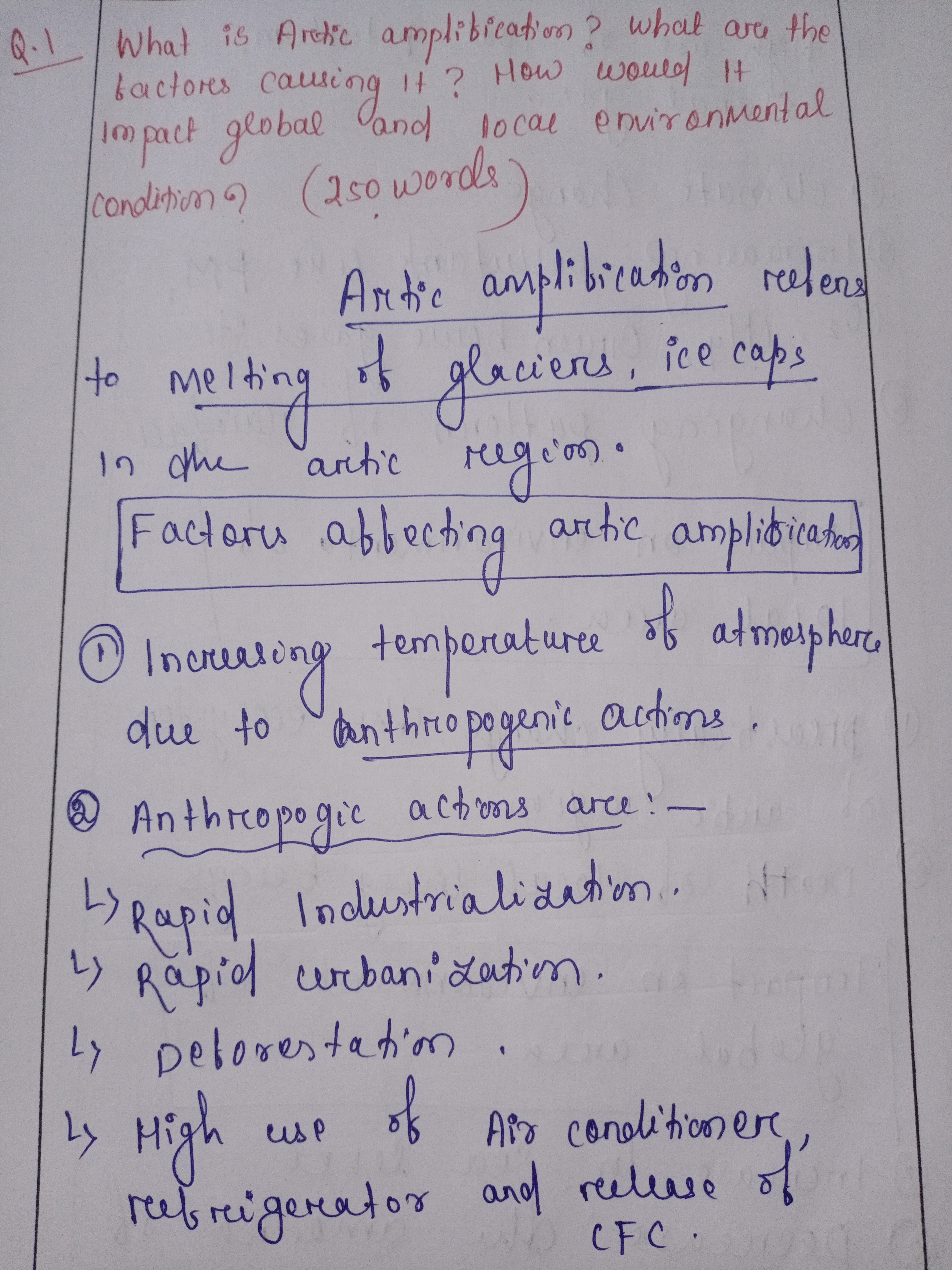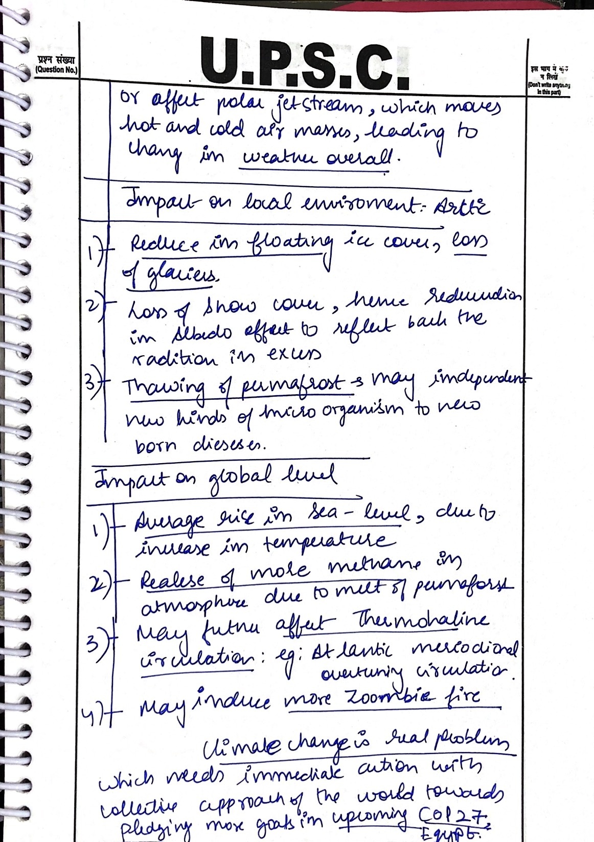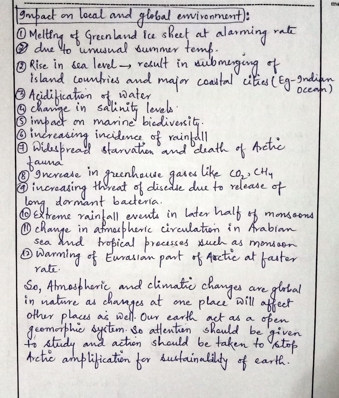 Great answer! Don’t mention ‘twice’ in the definition as the studies point out different rate of warming (2-3-4 times). You can also add the point of release of harmful pathogens with melting of ice. Can separate local/global impacts under 2 headings.