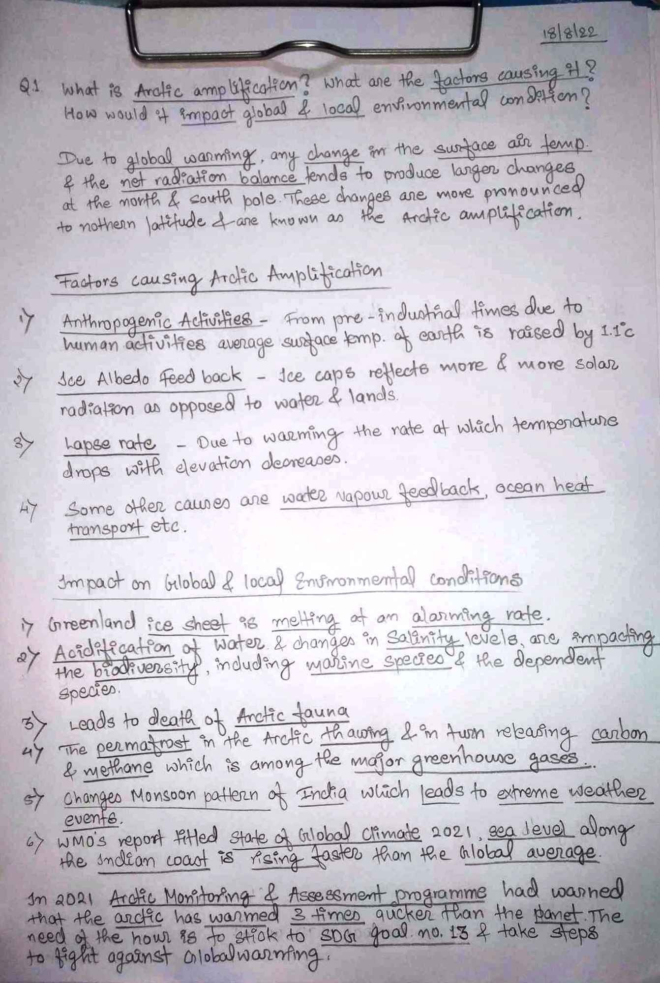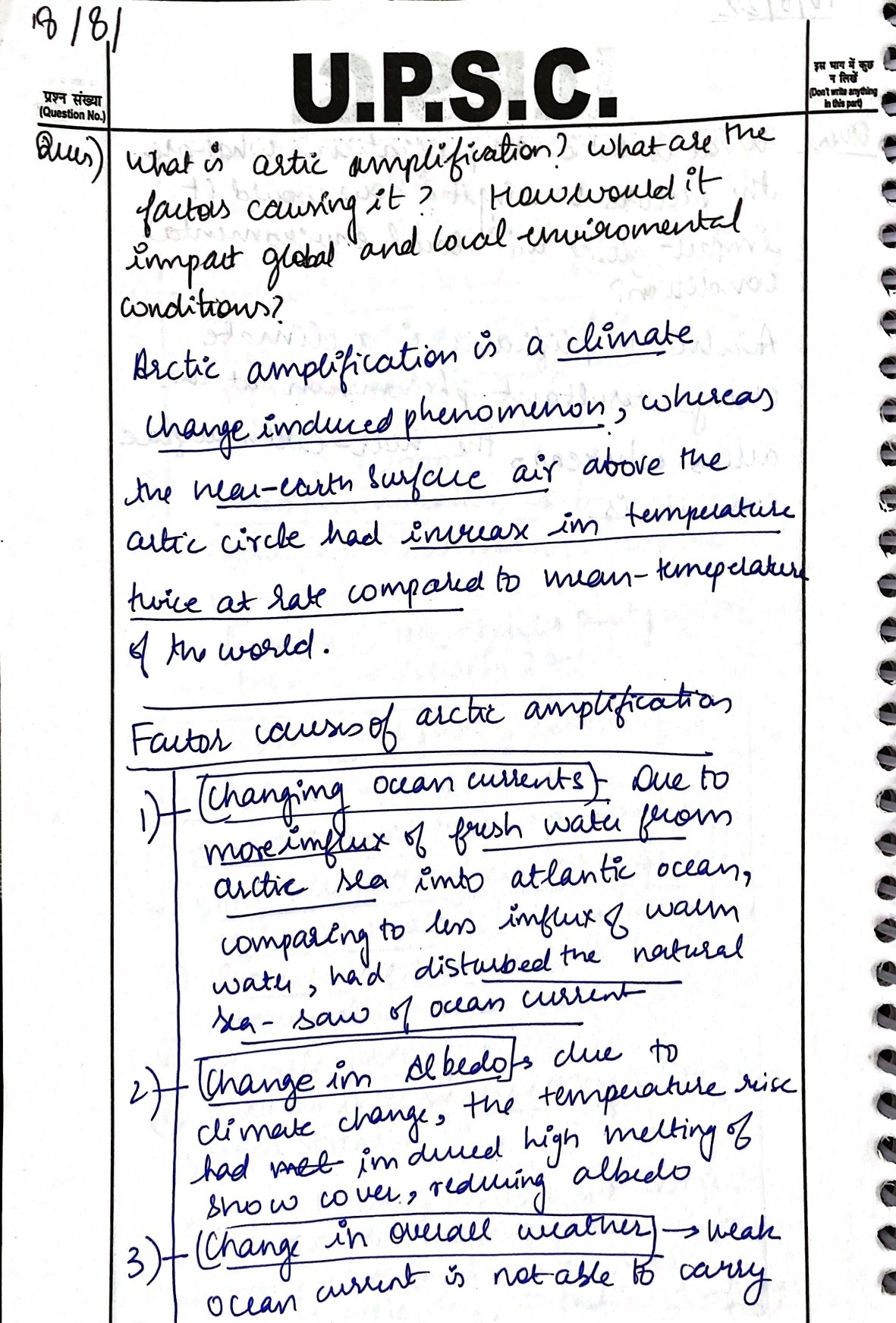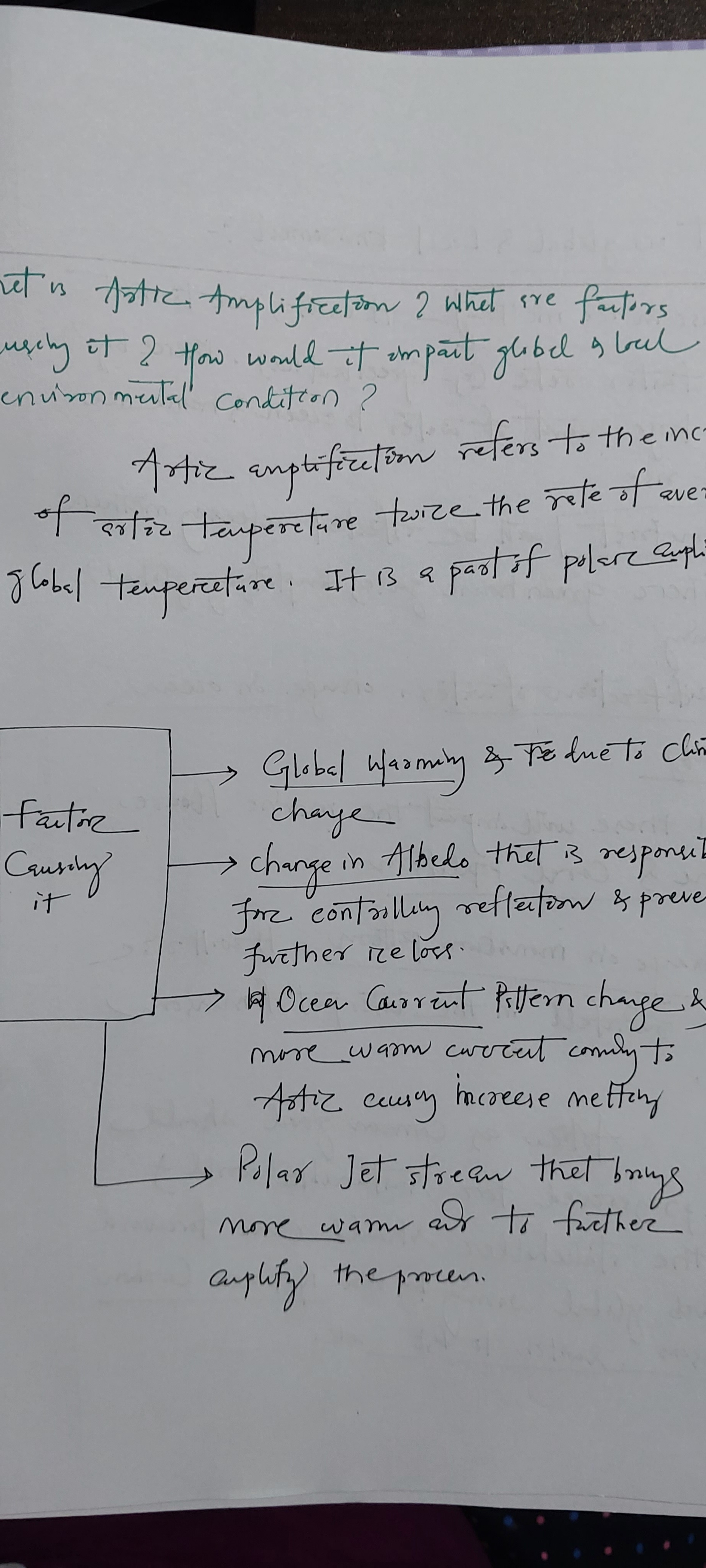 Great answer! Don’t mention ‘twice’ in the definition as the studies point out different rate of warming (2-3-4 times). You can also add the point of release of harmful pathogens with melting of ice. Can separate local/global impacts under 2 headings.