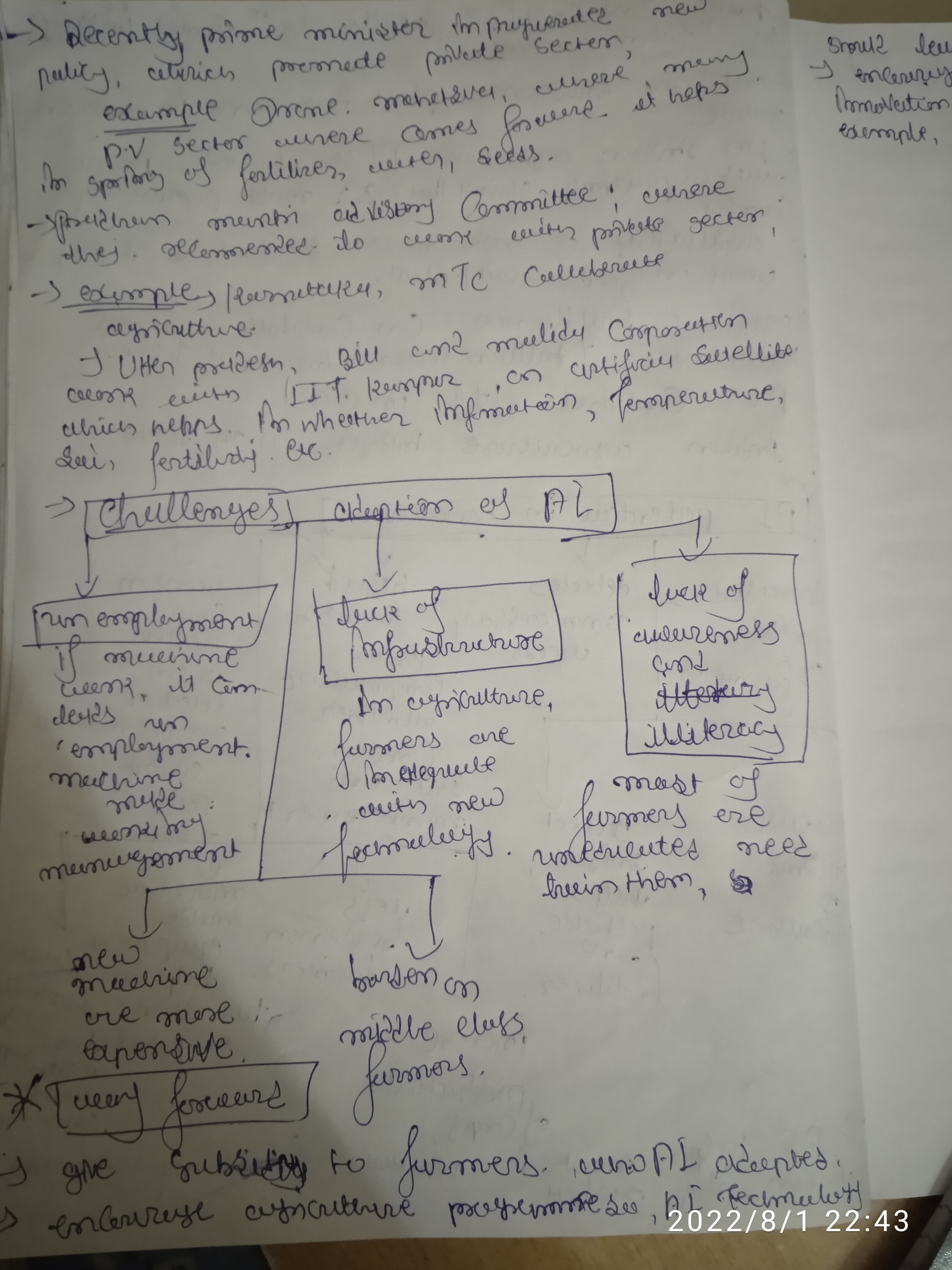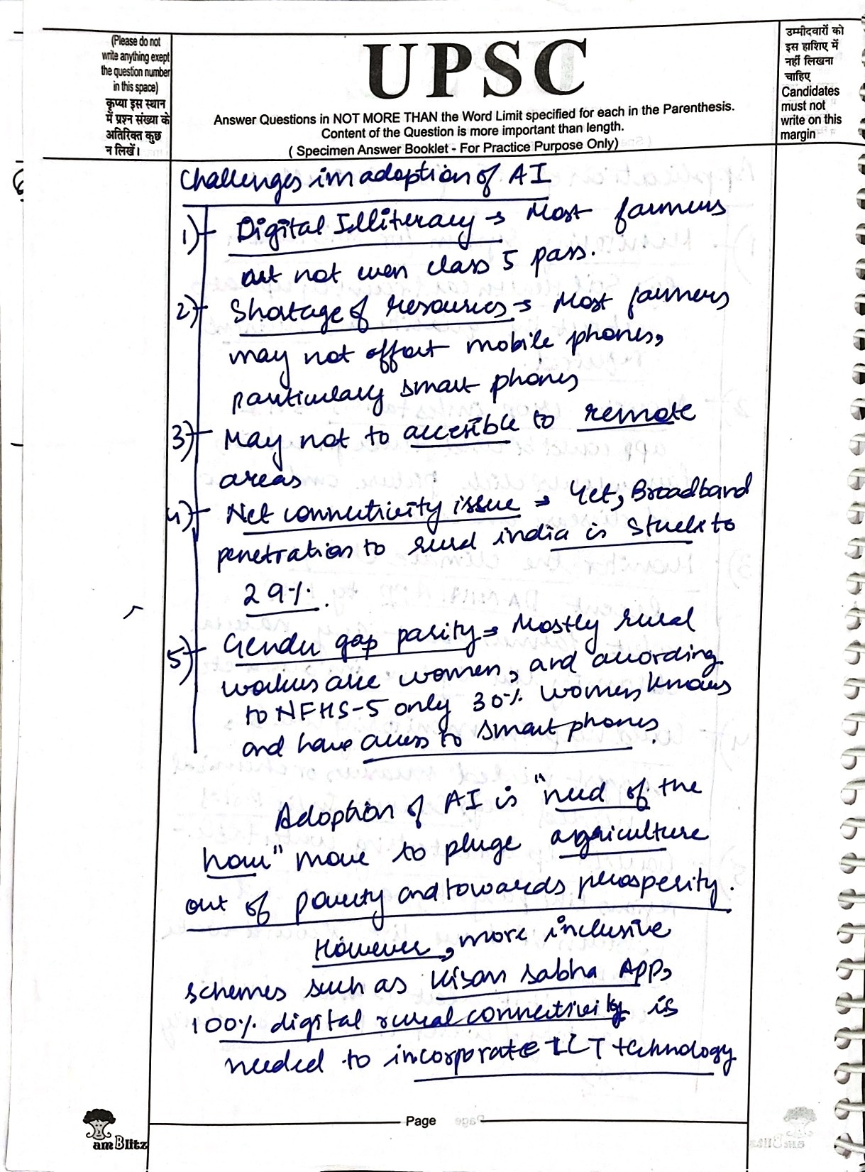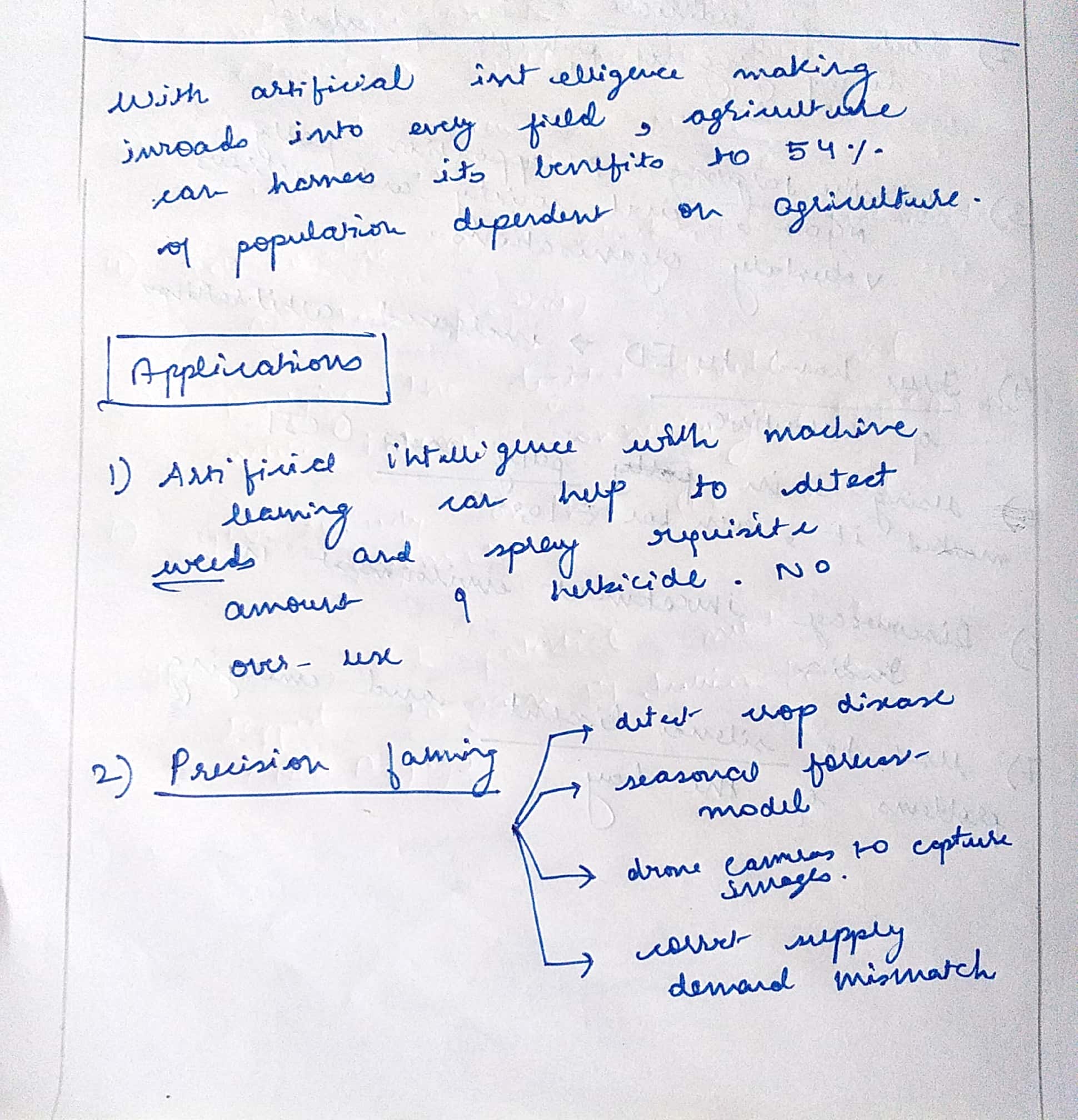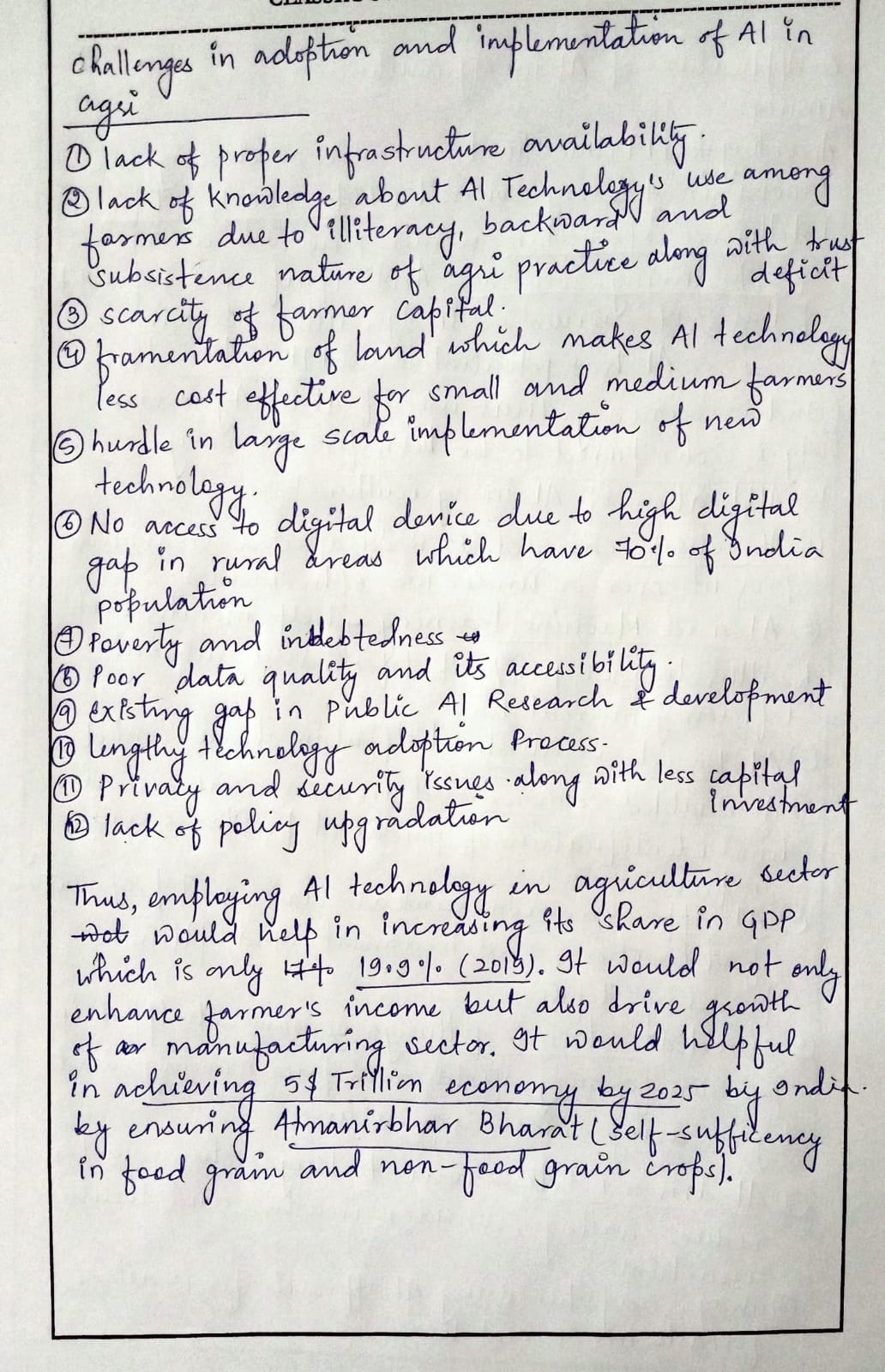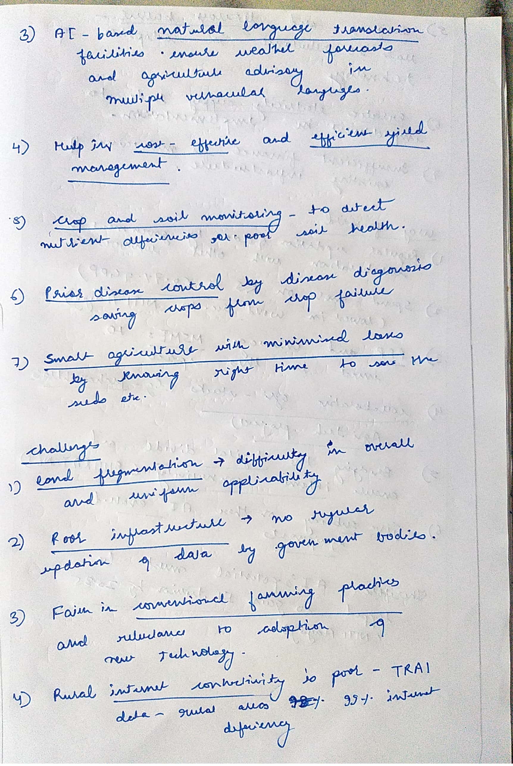 2. Some more points can be added in both Applications and challenges e.g., in Applications You can add the keyword: Precision Farming. Similarly in challenges You only mentioned smartphones under resources. Technology can also be mentioned here. Also reluctance to adopt new technology, fragmented/small landholdings are a hurdle in application of tech. These points mentioned in the article.