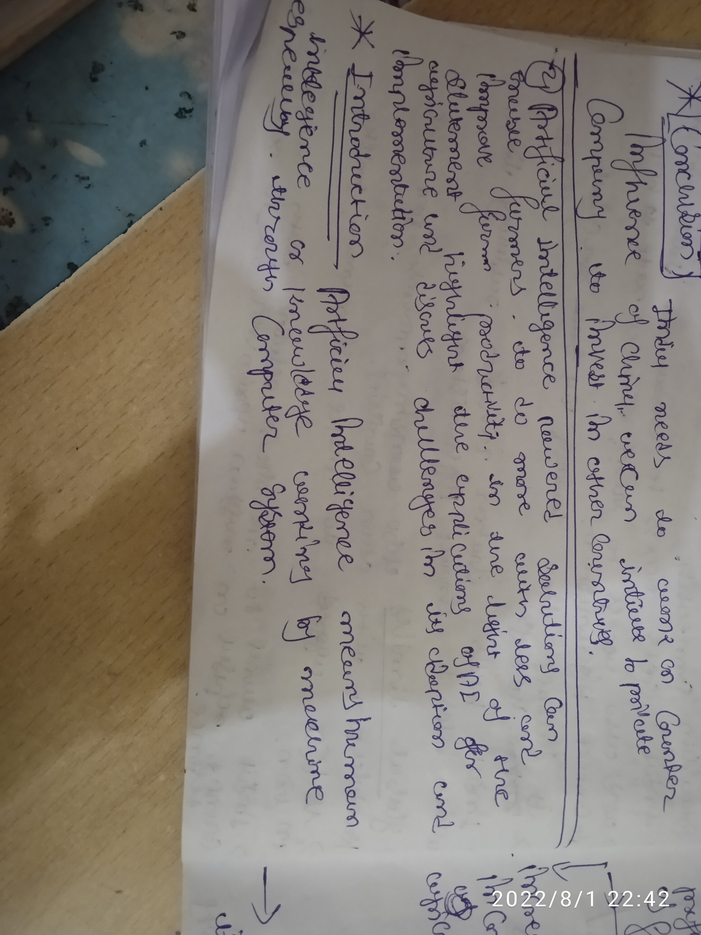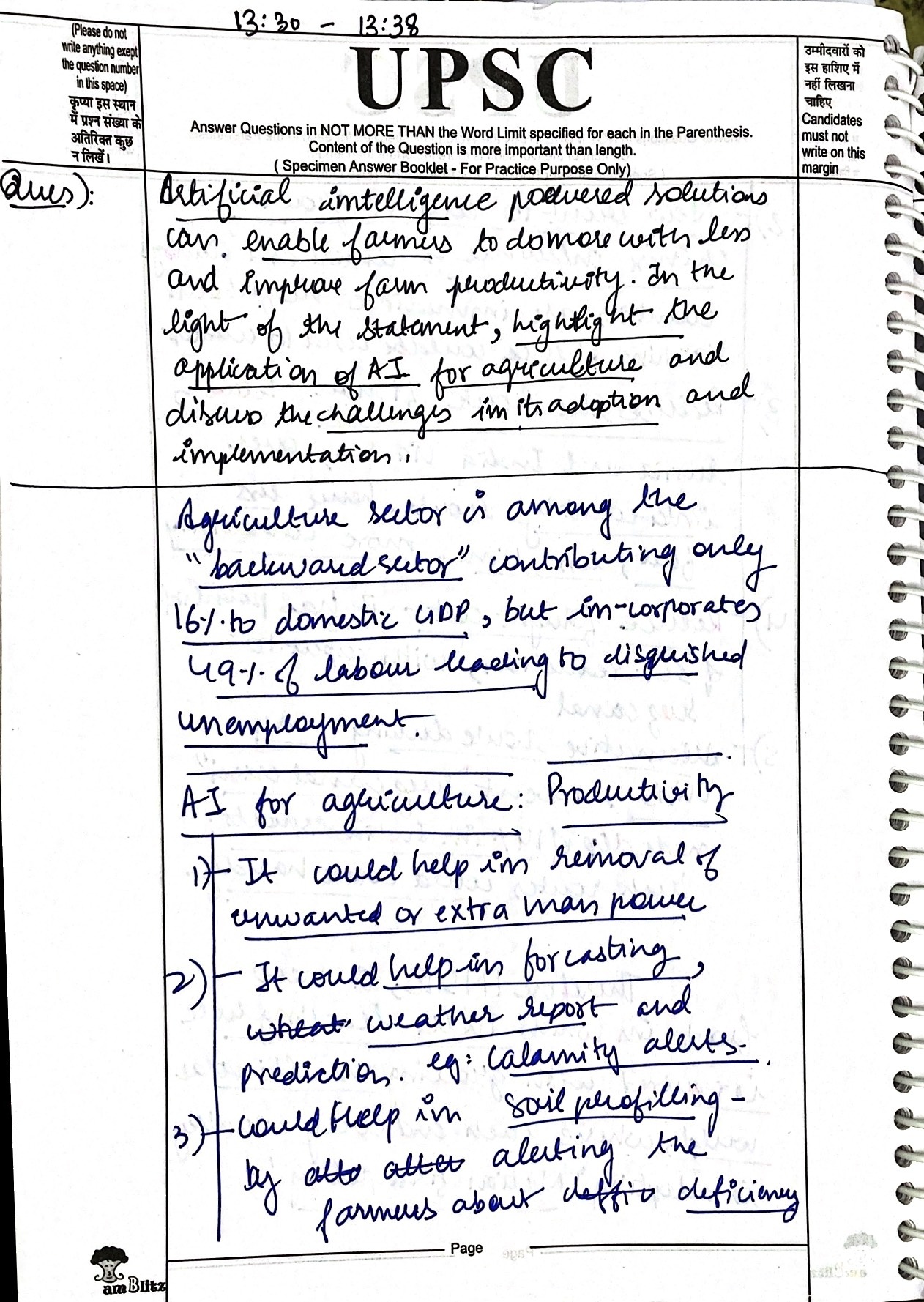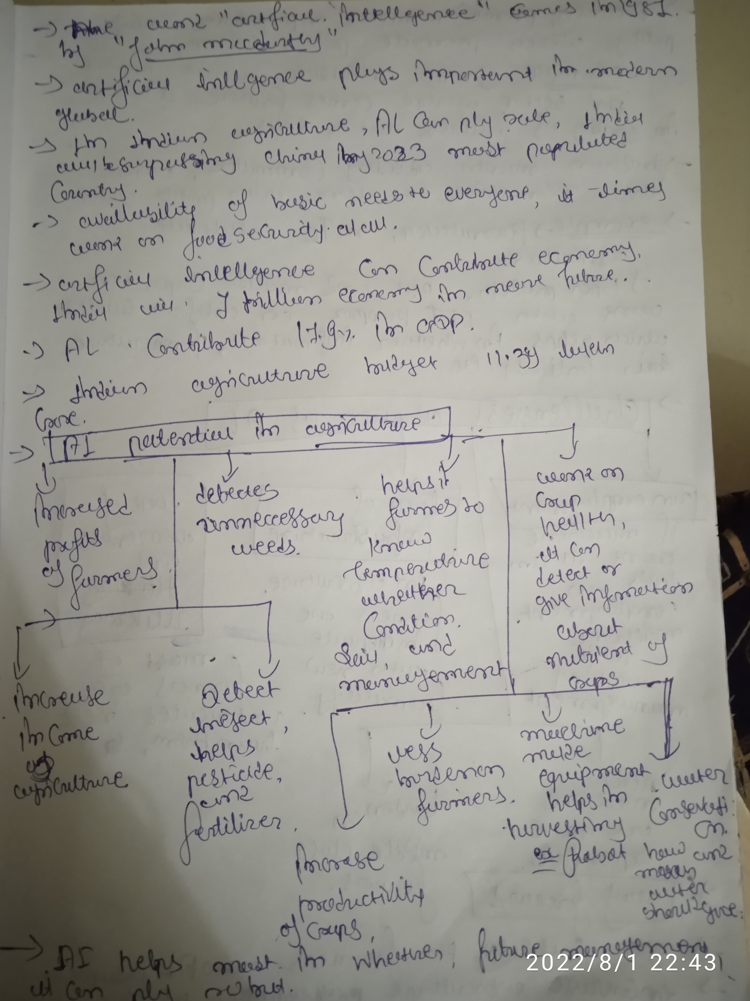 Ideally, the introduction should contain some relevant fact/data related to the main theme of the answer. So either You can begin by quoting some report, how AI can help improve agri-GDP to reach xxx dollars or You can mention how agri-productivity is very low in India (like yield data or low labor productivity) and AI can be helpful etc.
