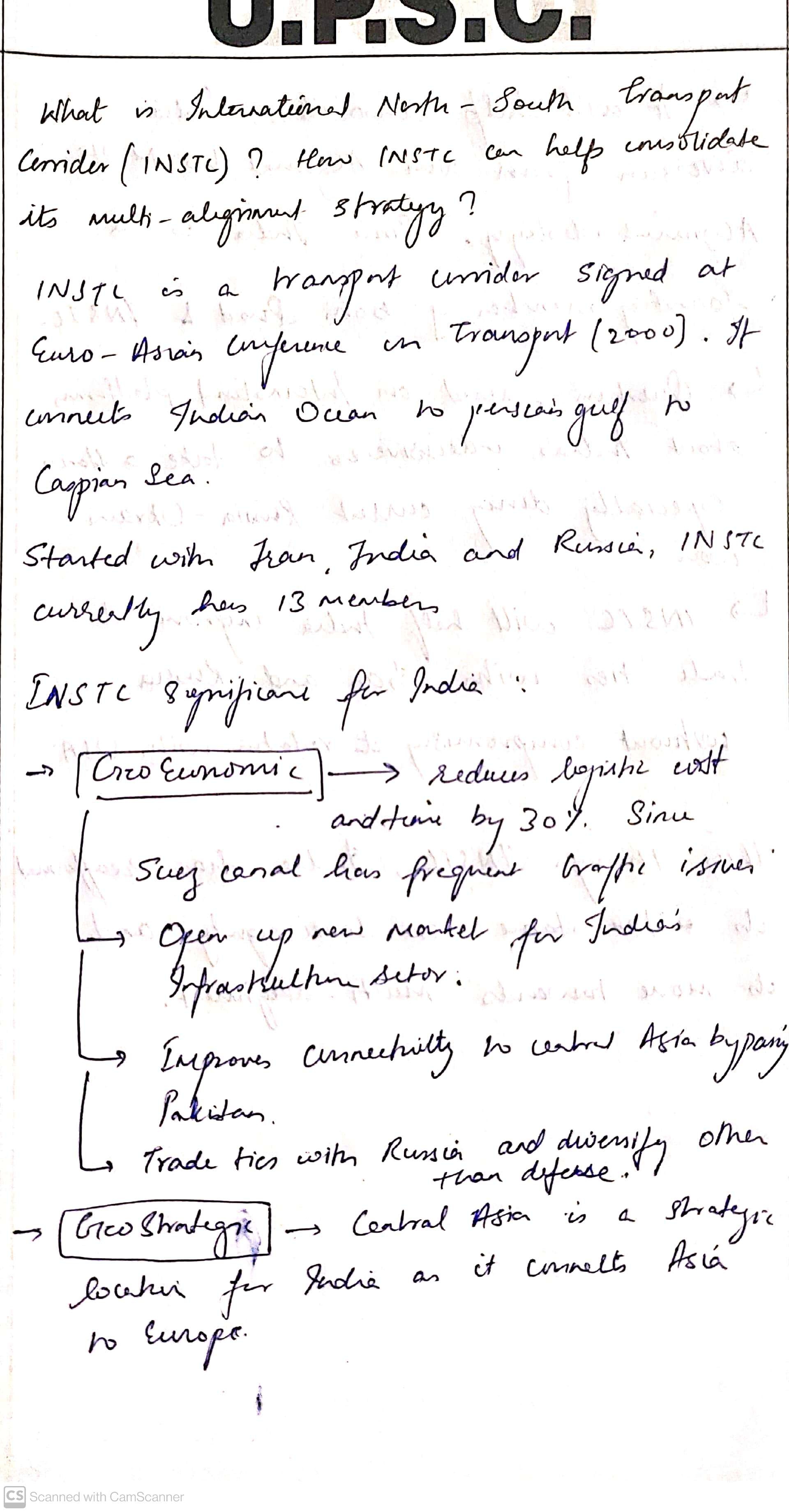 1) What is International North-South Transport Corridor (INSTC)? How INSTC can help India consolidate its multi-alignment strategy?