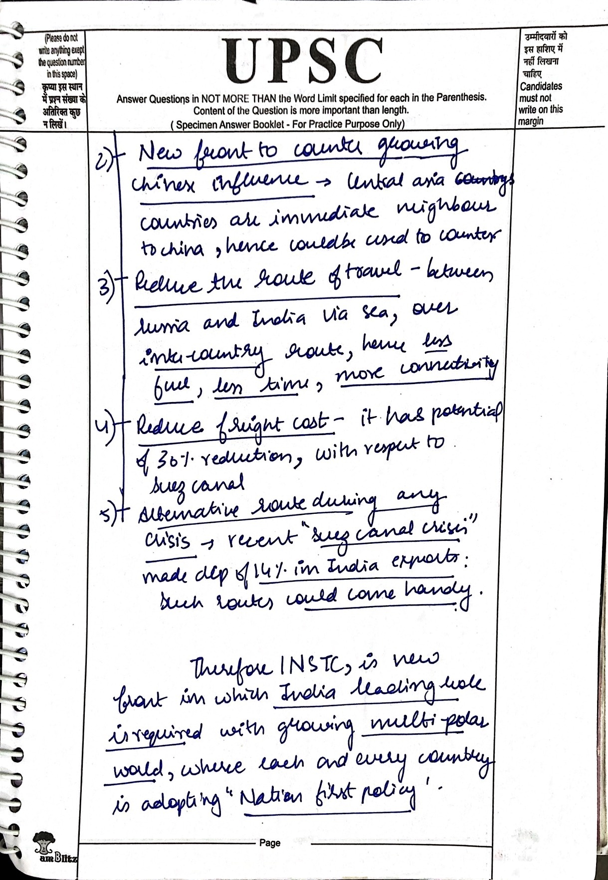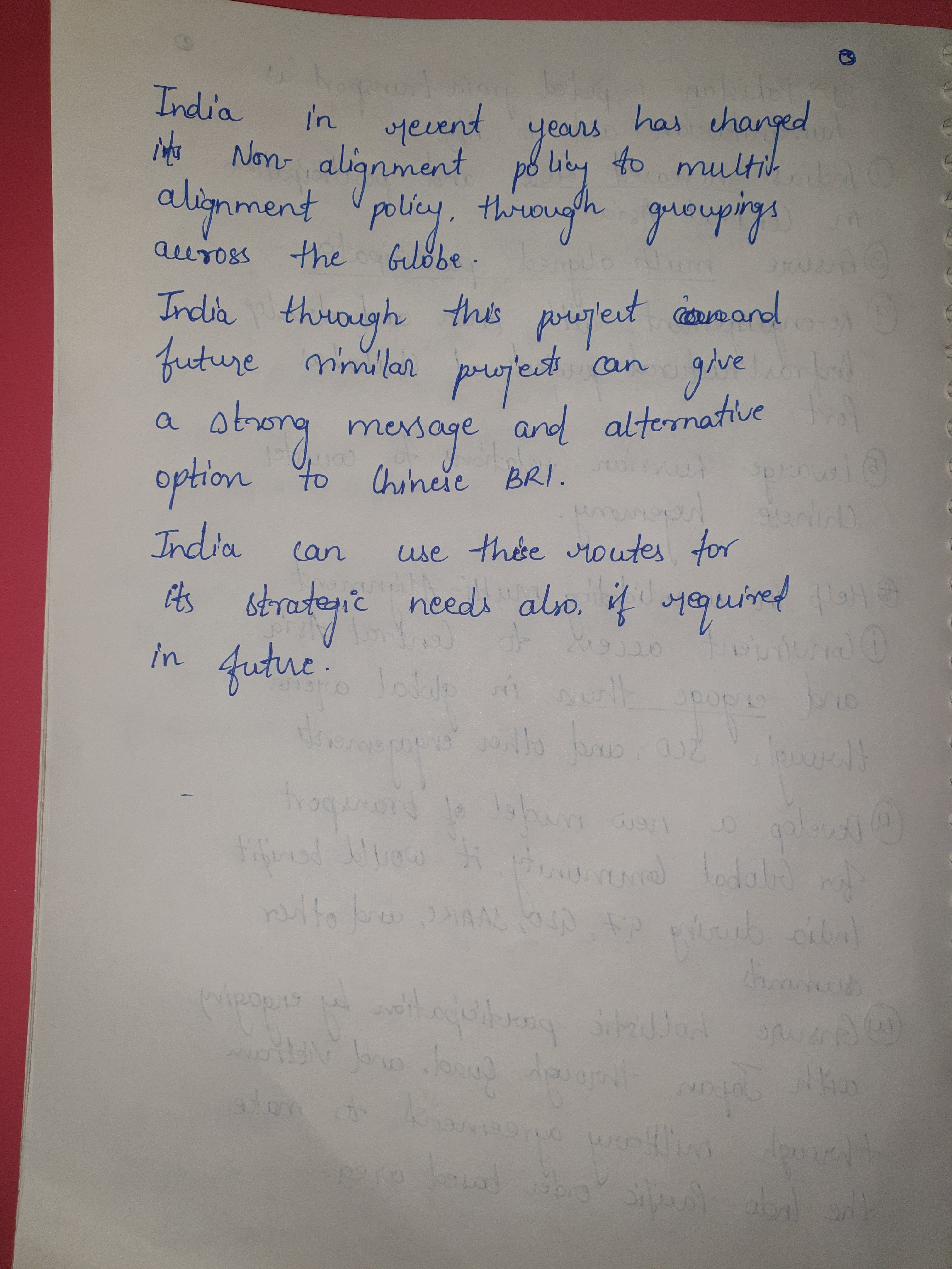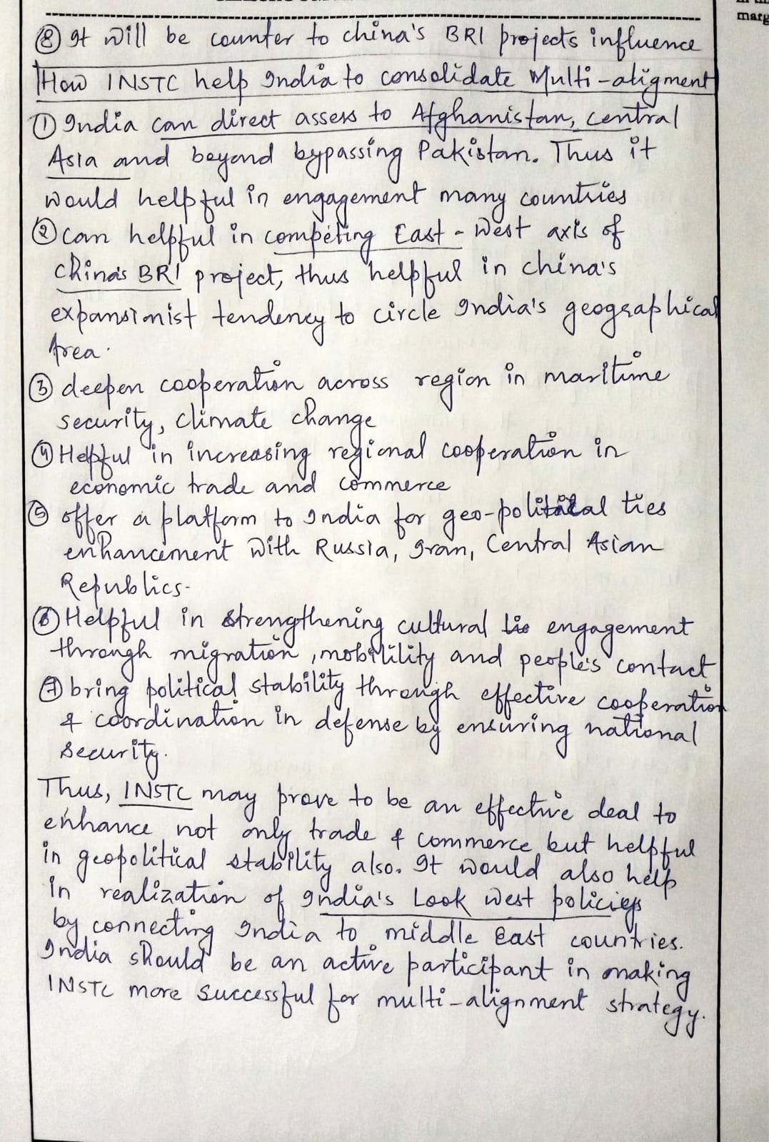 1. The points in the second aspect of the question (multi-alignment) are bit off. In my opinion, here You should highlight, how despite US sanctions on Russia/Iran, and despite being part of QUAD, India has engaged with both Russia and Iran. This has to be the main theme, rest of the points that You have mentioned can follow subsequently, although some of them can also be written under benefits of INSTC.