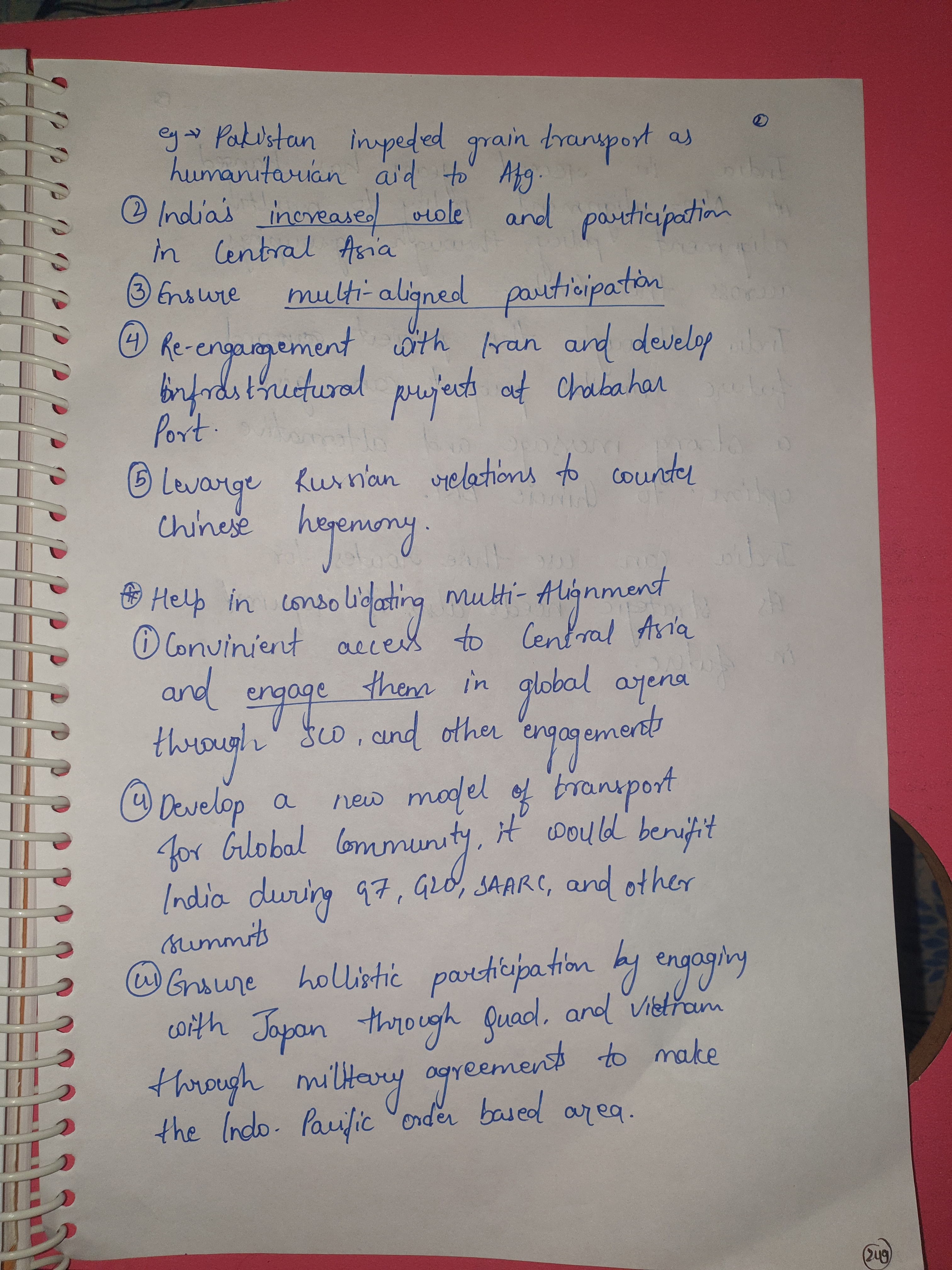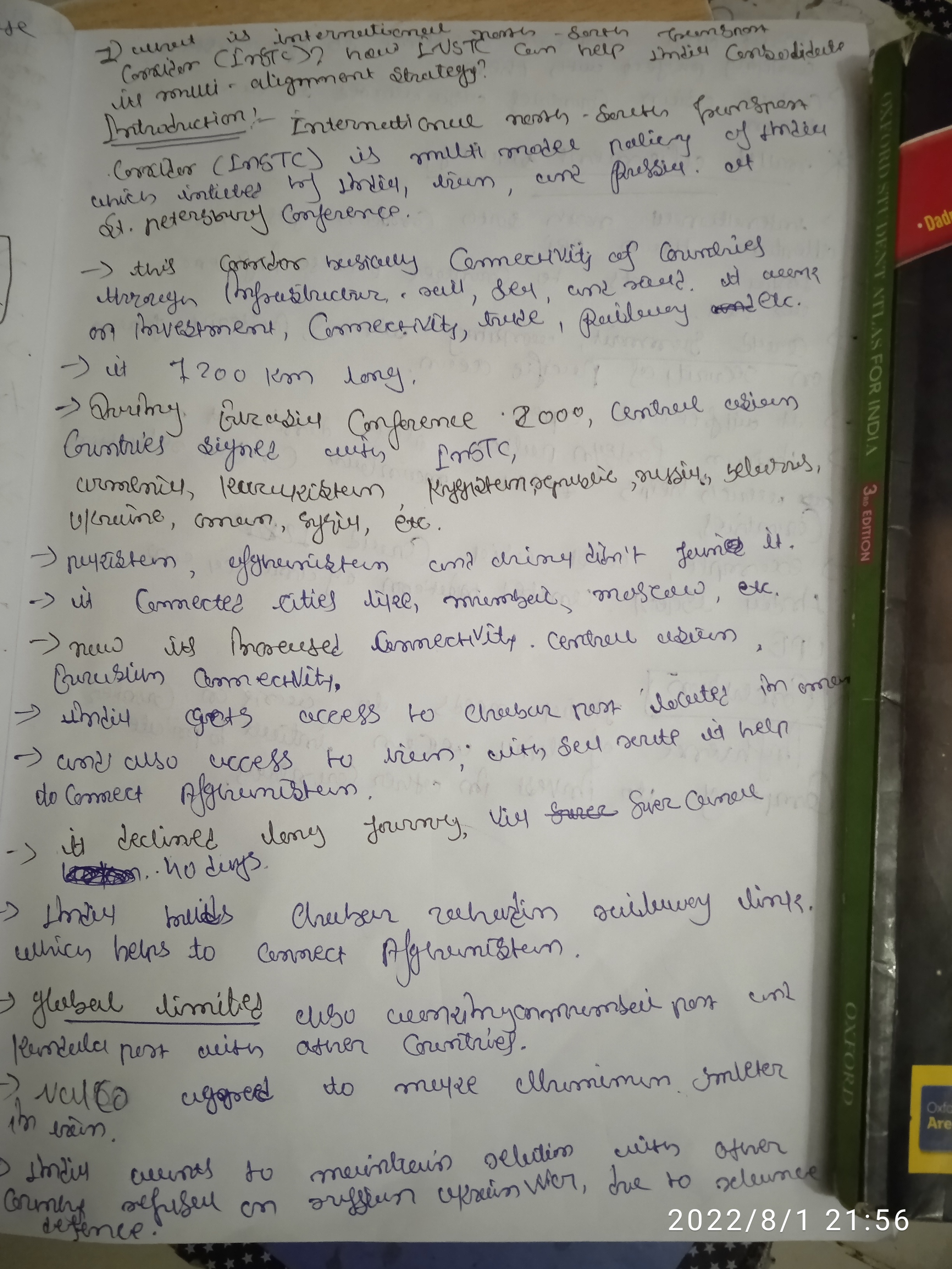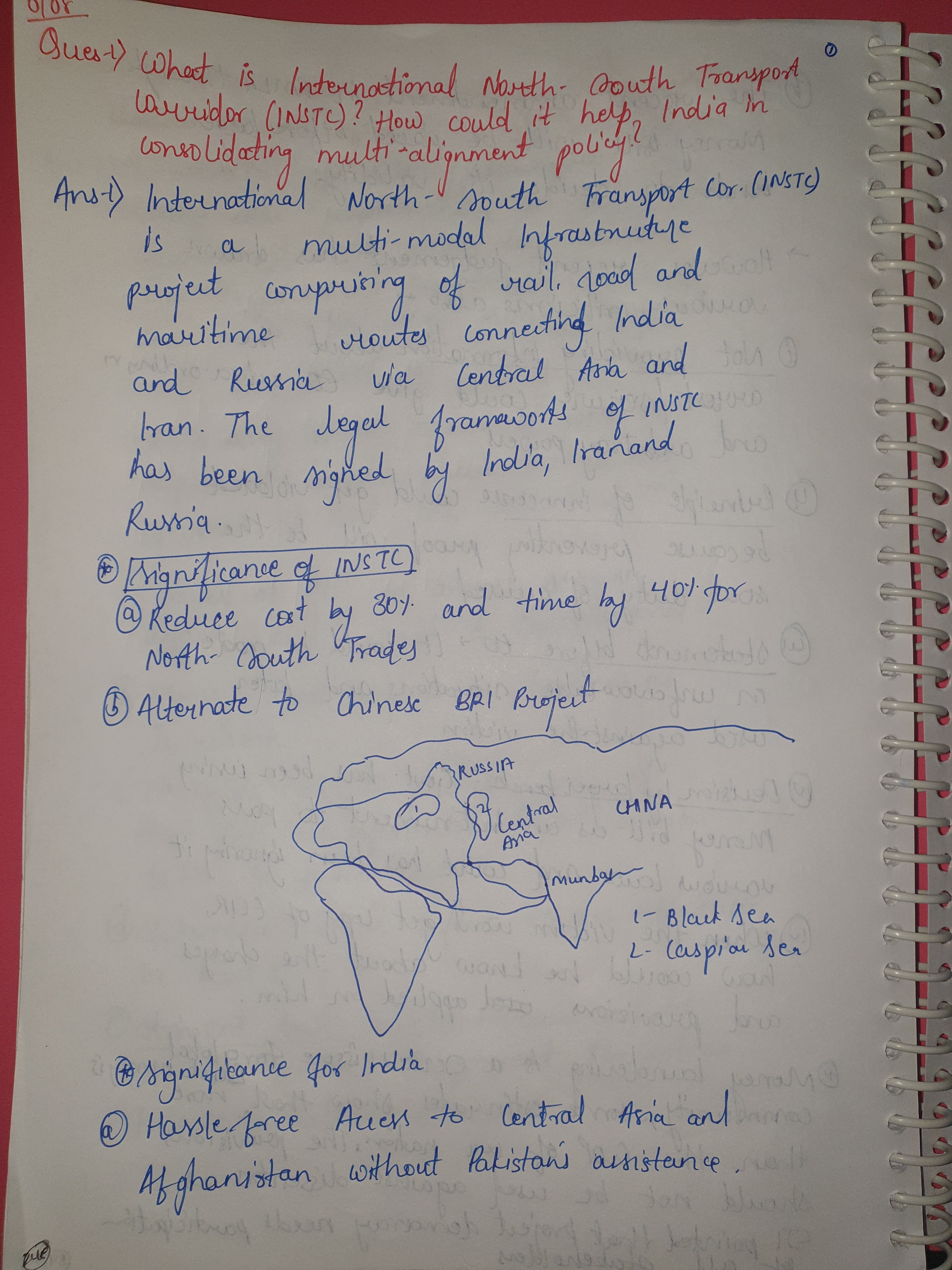 1. The points in the second aspect of the question (multi-alignment) are bit off. In my opinion, here You should highlight, how despite US sanctions on Russia/Iran, and despite being part of QUAD, India has engaged with both Russia and Iran. This has to be the main theme, rest of the points that You have mentioned can follow subsequently, although some of them can also be written under benefits of INSTC.