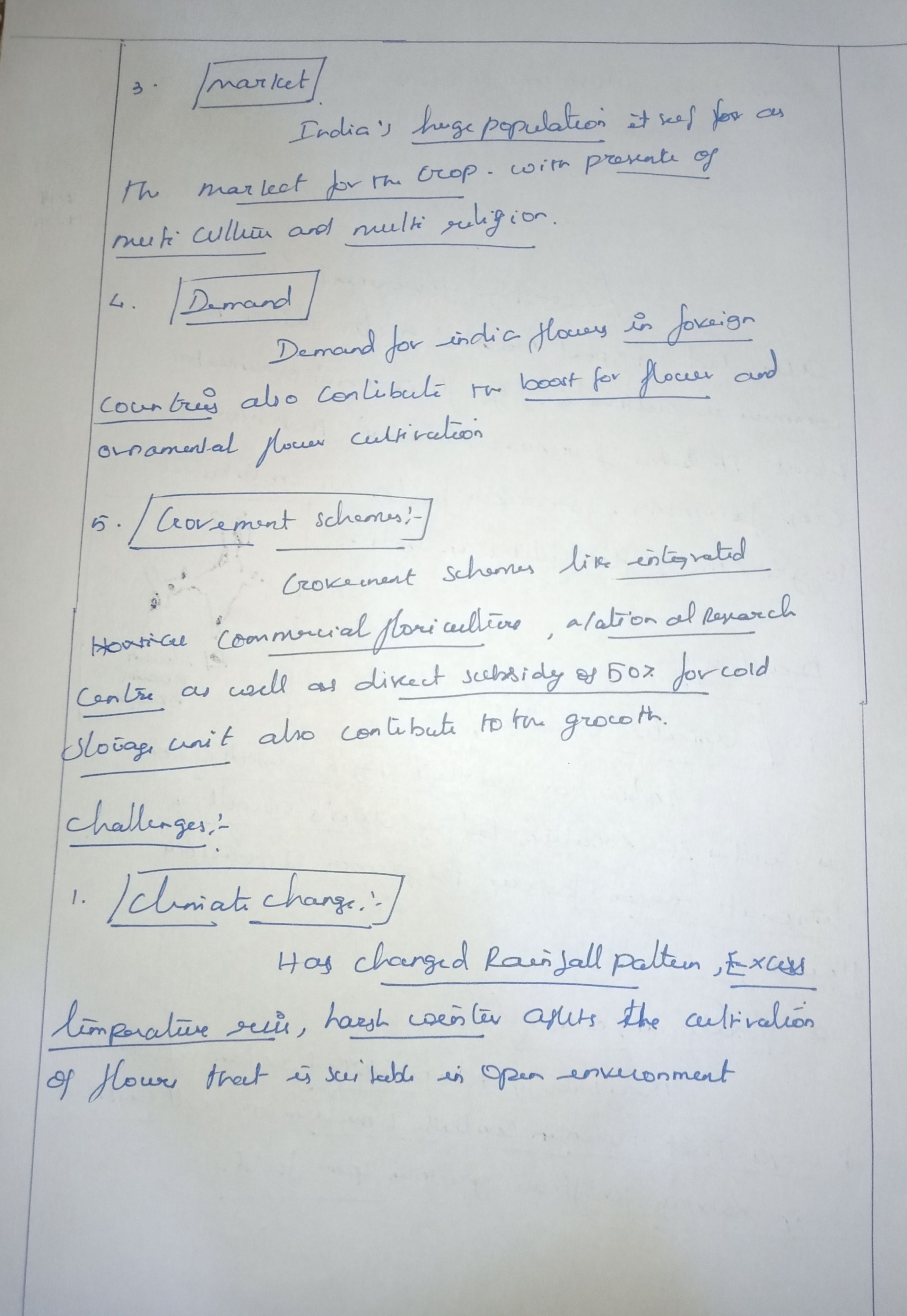 1) Commercial cultivation of flowers and ornamental plants, or floriculture is much more lucrative compared to normal crop farming. Highlight the factors contributing to the growth of floriculture in India.