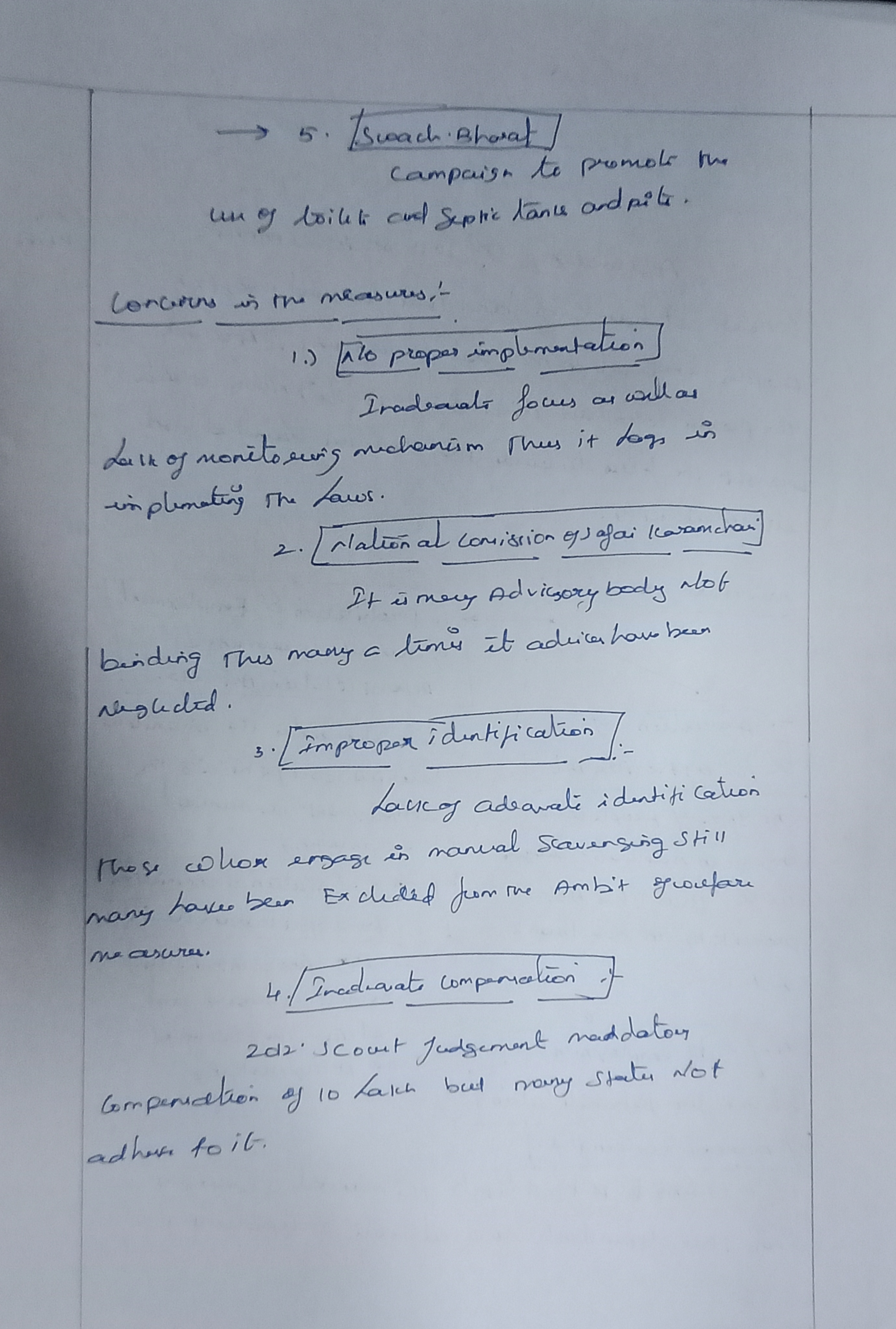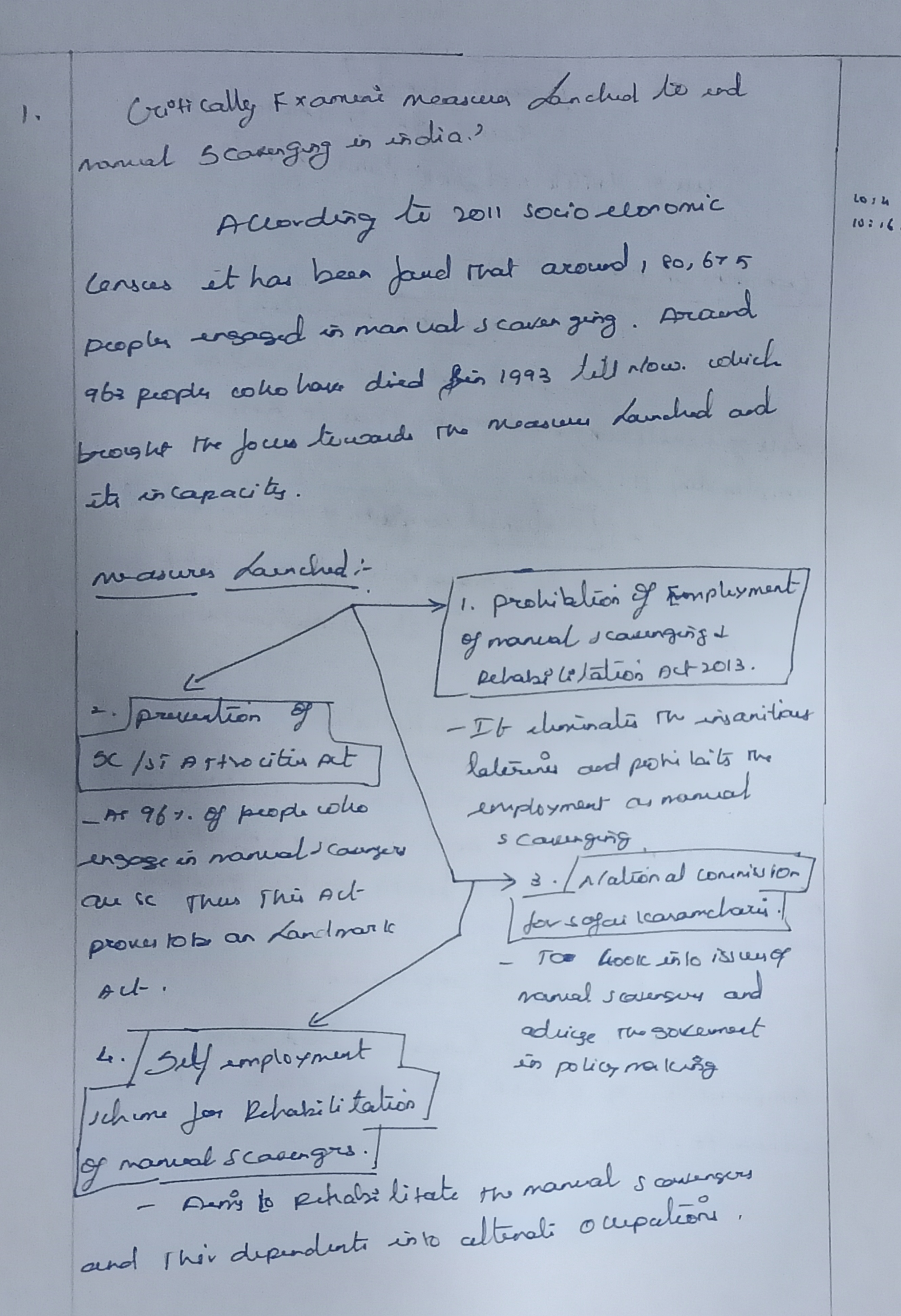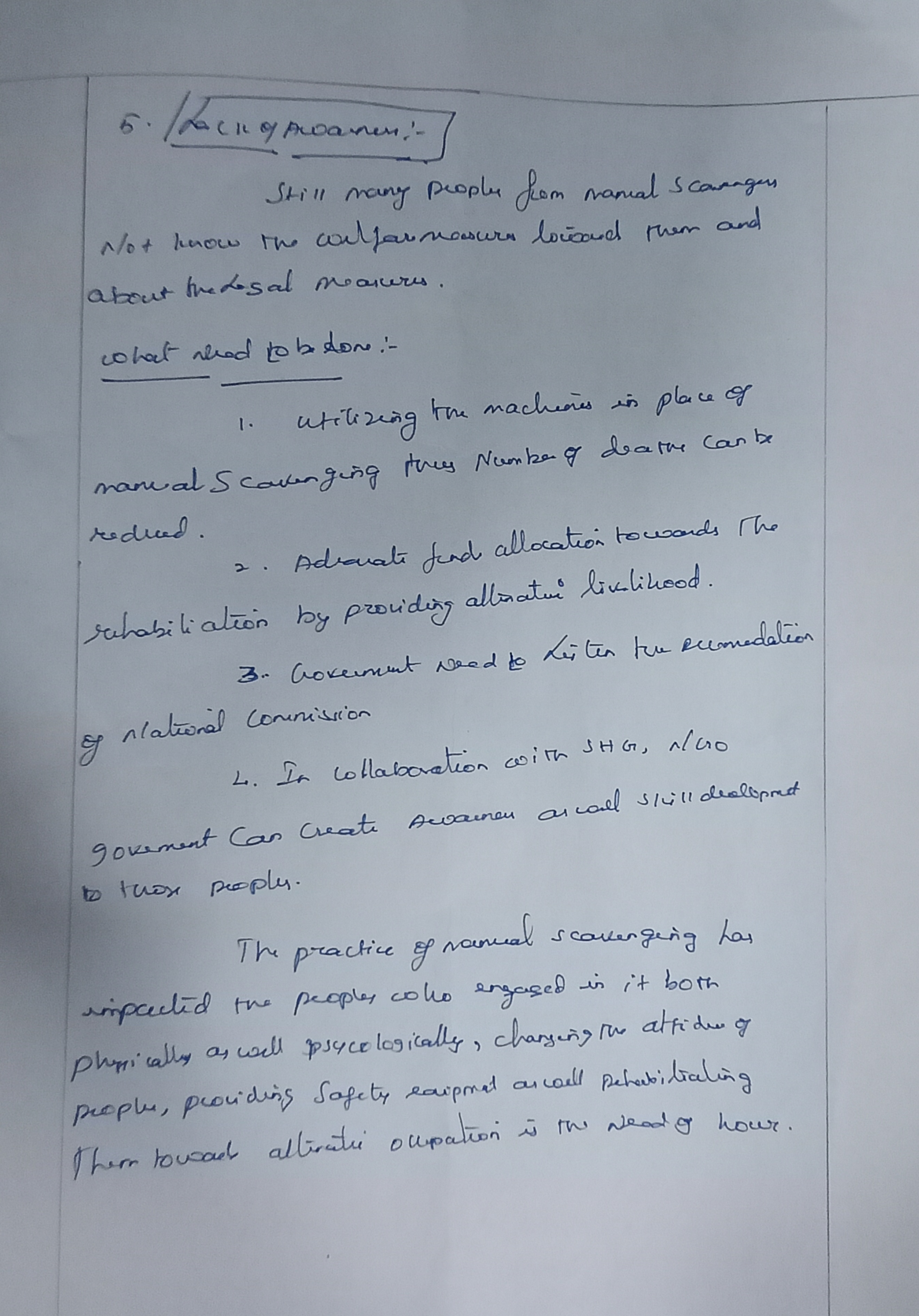 Only shortcoming is that You had to include the criticism of existing provisions especially the poor implementation of the 2013 Act. e.g, You have very correctly mentioned Indian Railways as largest employer of MS, but it should come under shortcomings, not way forward. There are other issues like no penalty on violators etc, compensation not paid, unsanitary septic tanks still exist etc.