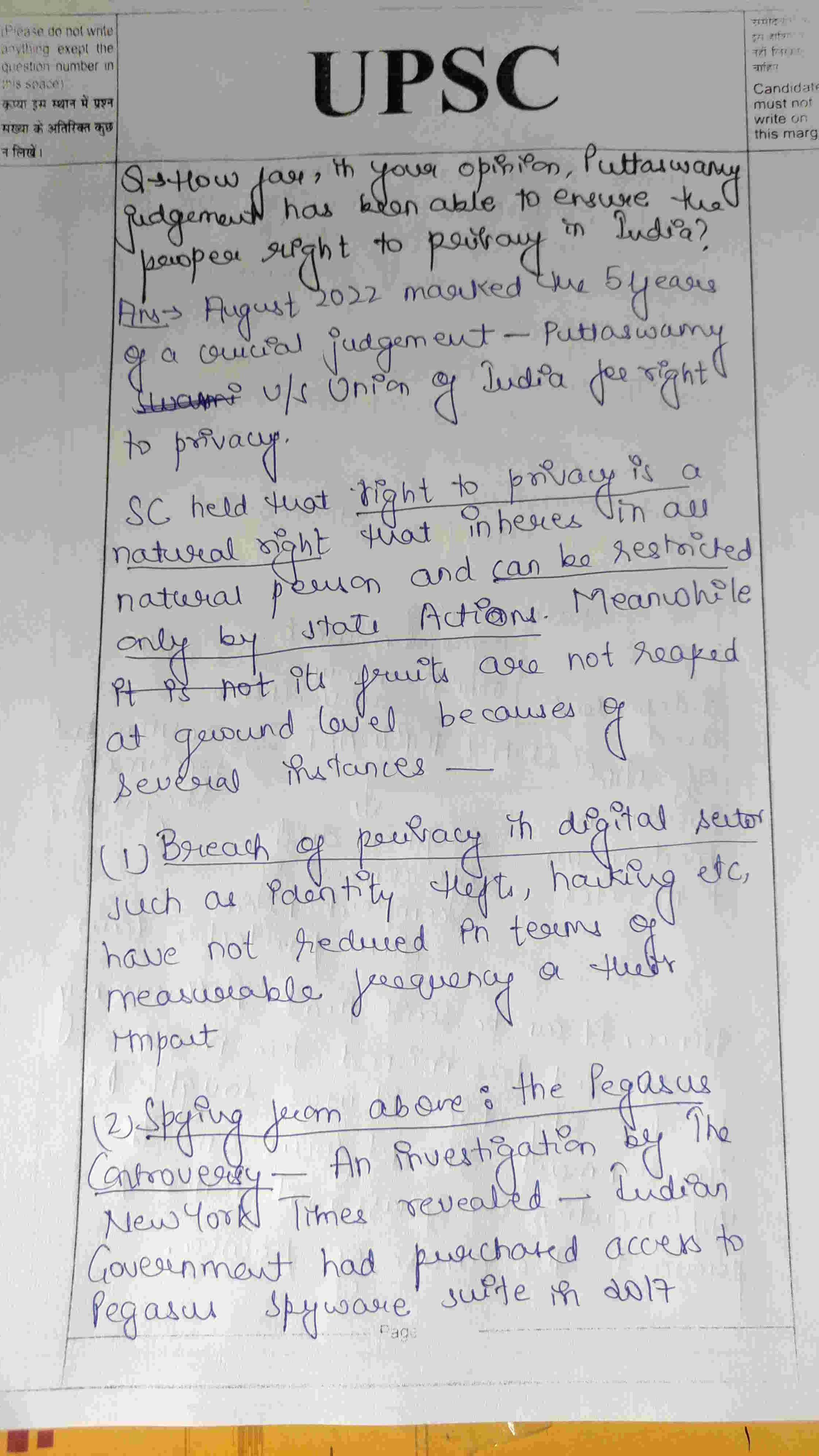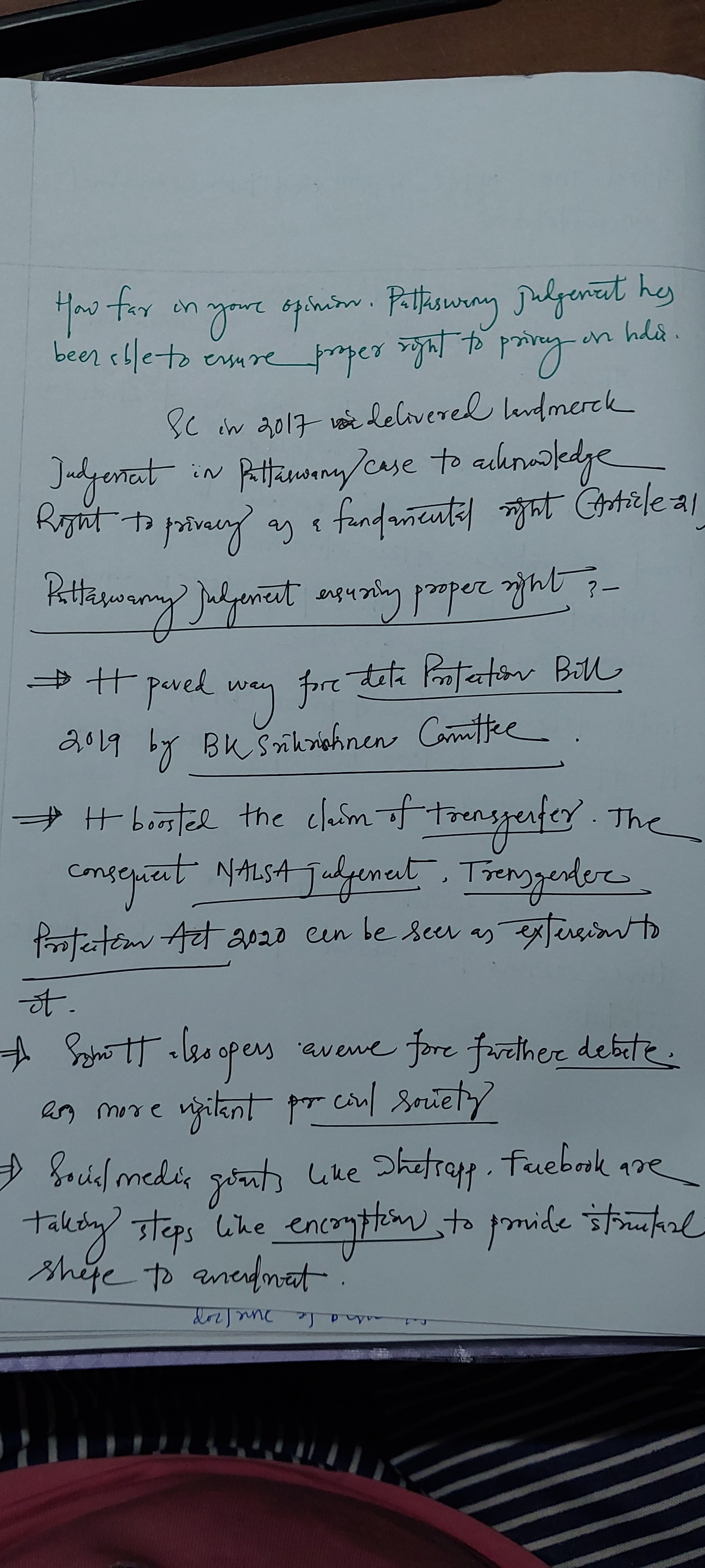 2) How far, in your opinion, Puttaswamy judgment has been able to ensure the proper right to privacy in India?