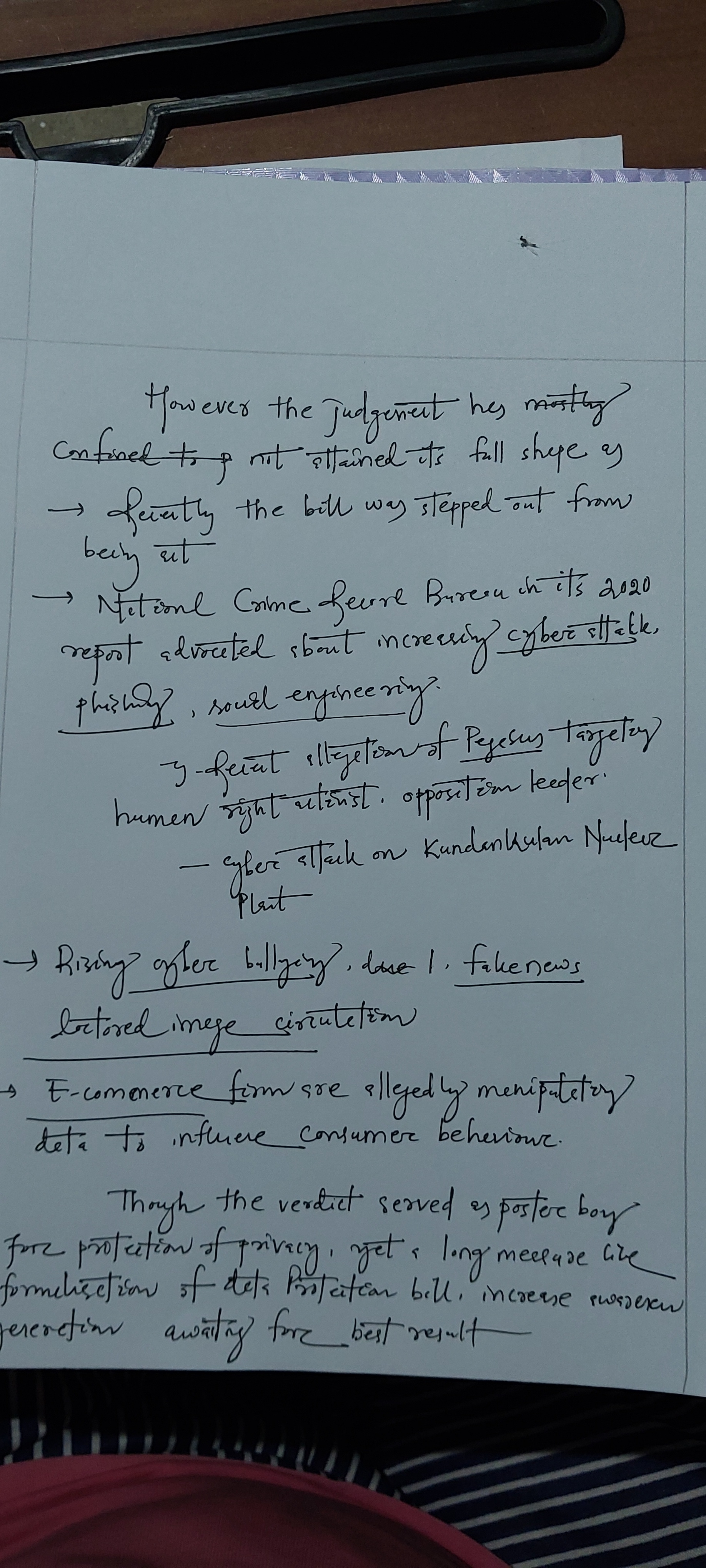 Also include the points like sale of consumer data for targeted advertising, lack of a robust legal framework to implement the Judgment (like EU has stringent privacy norms through GDPR).