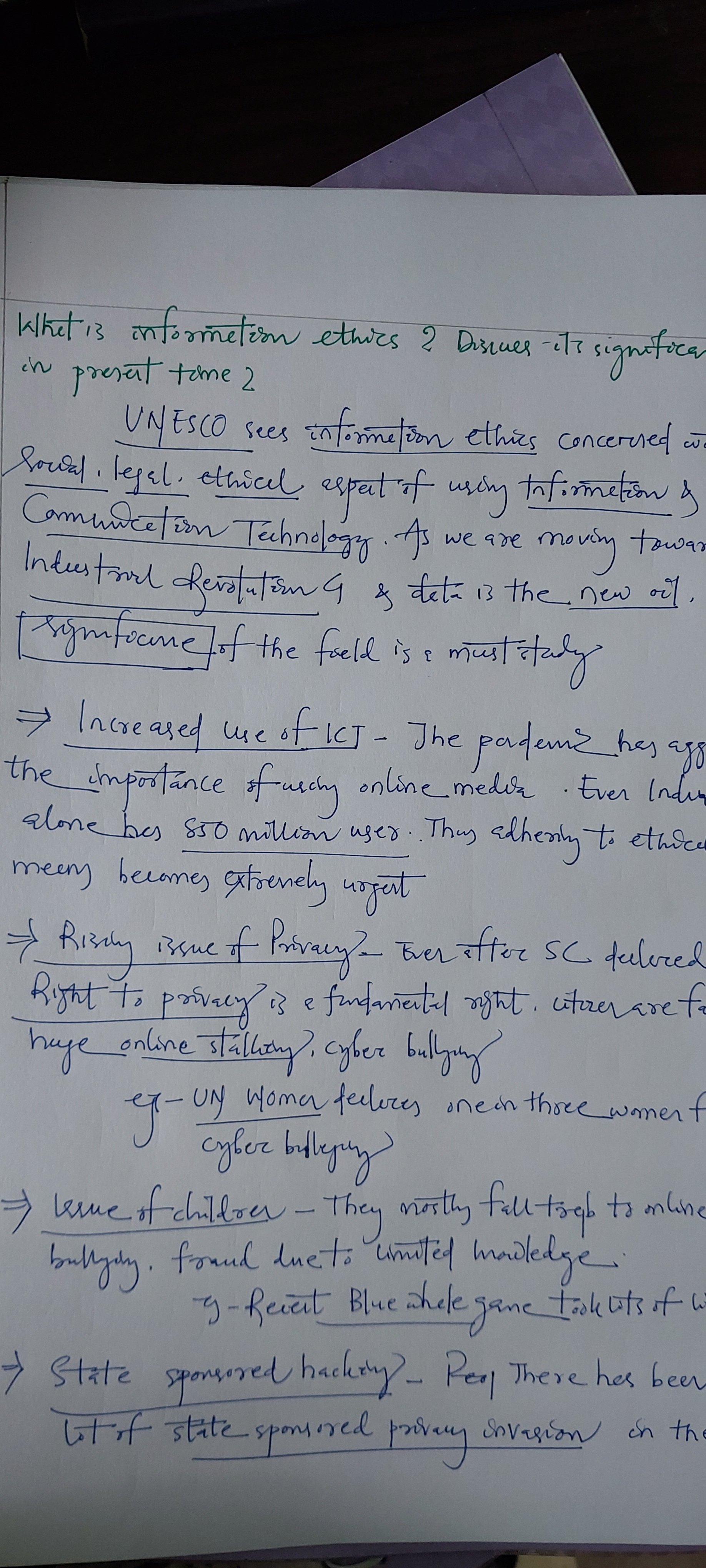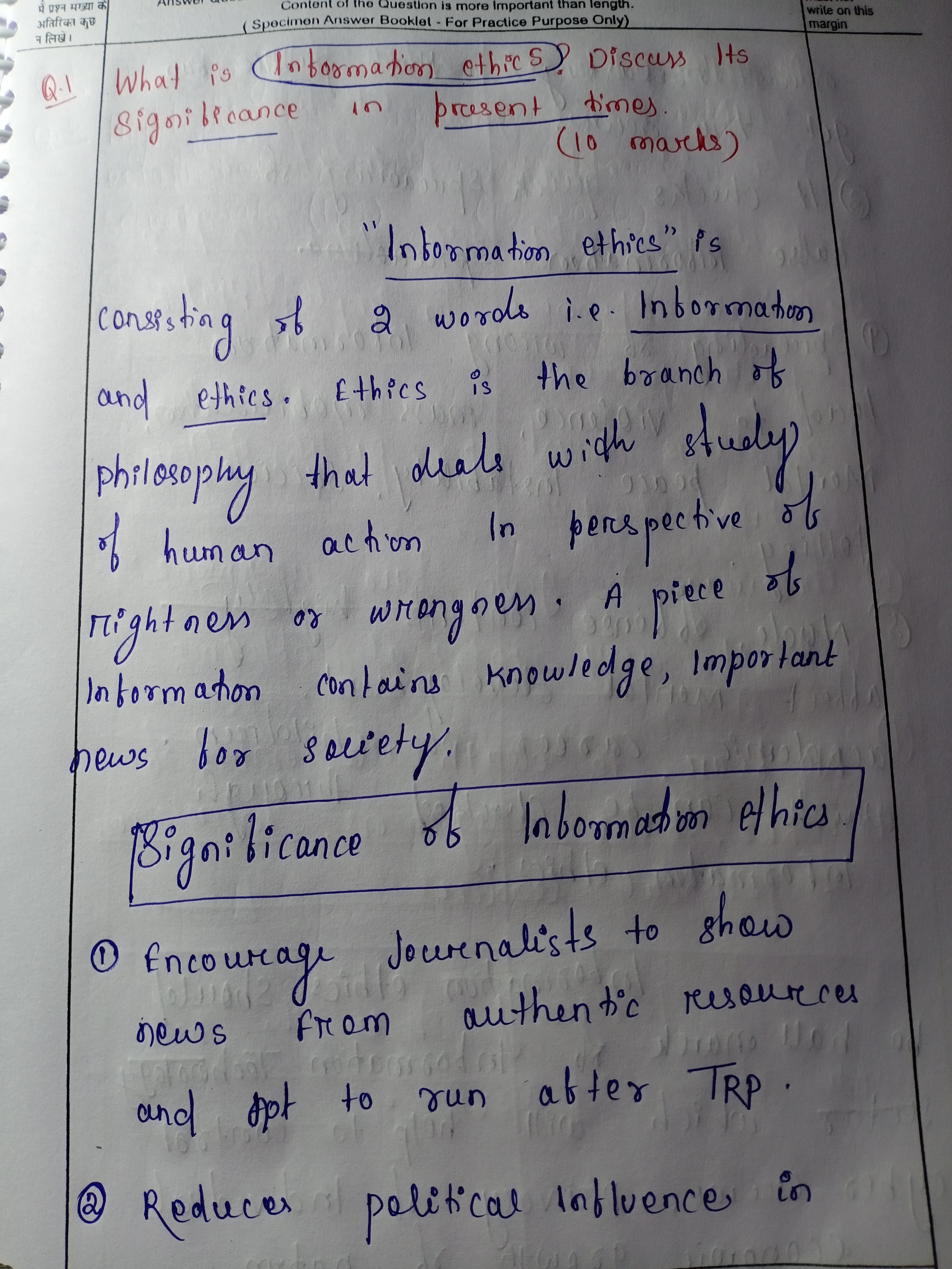 1.) What is Information Ethics? Discuss its significance in present times.