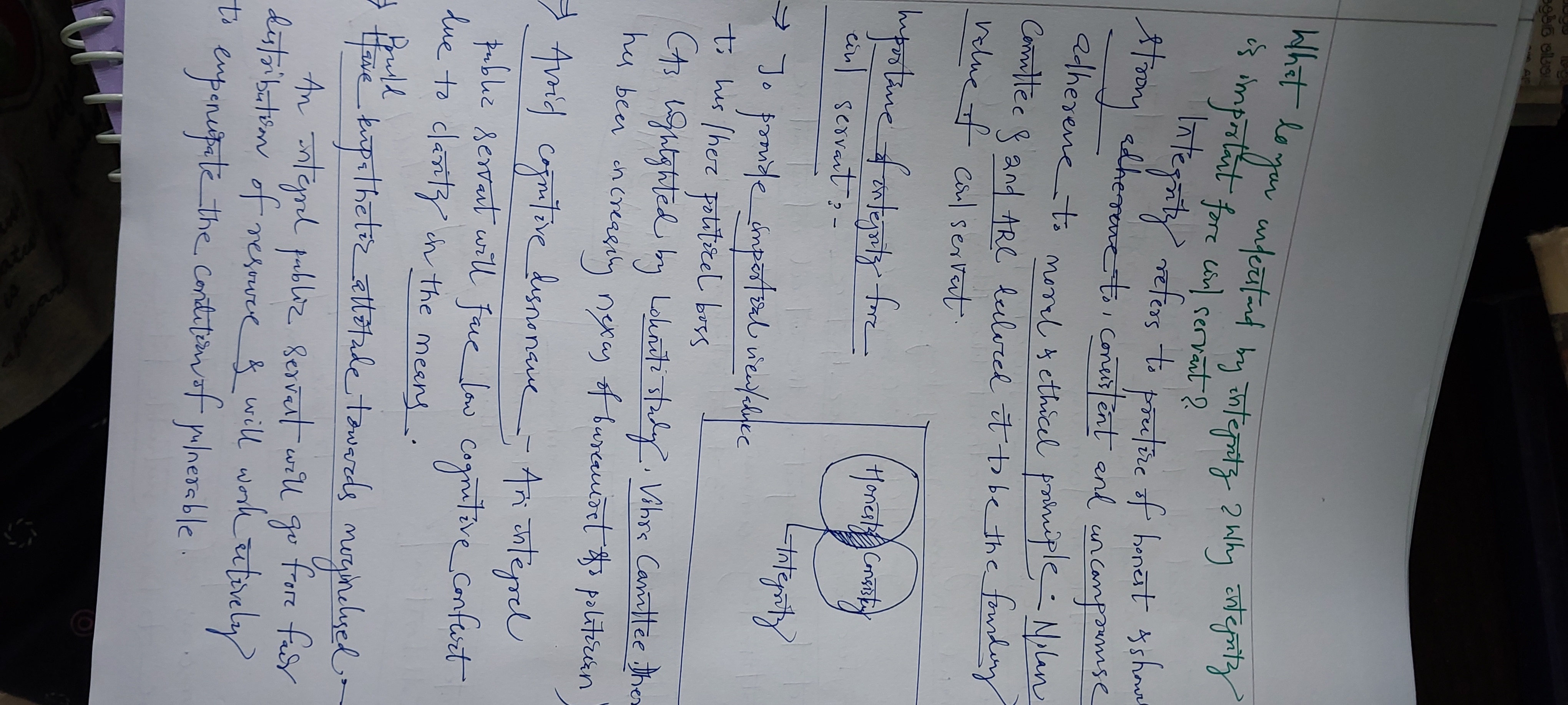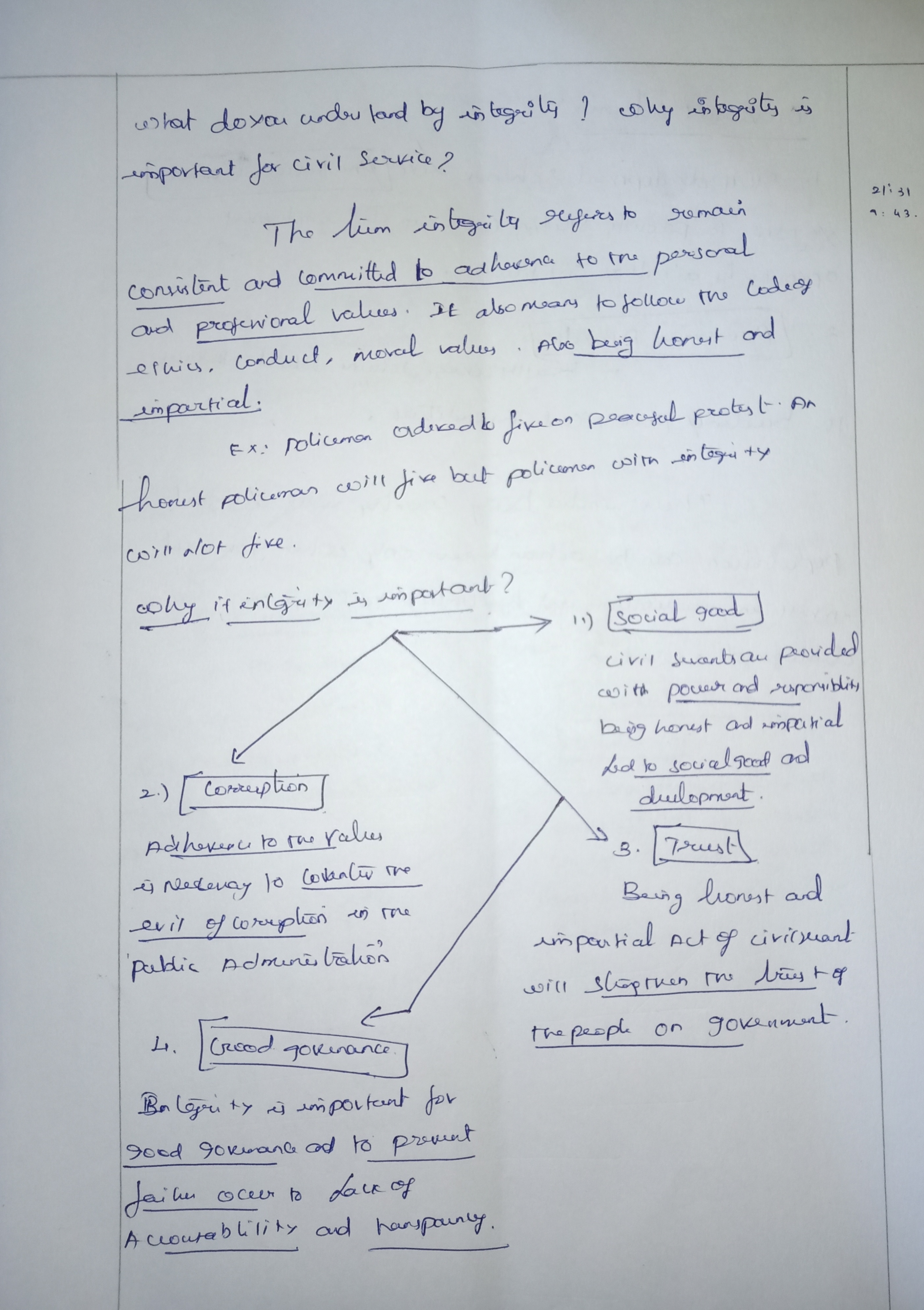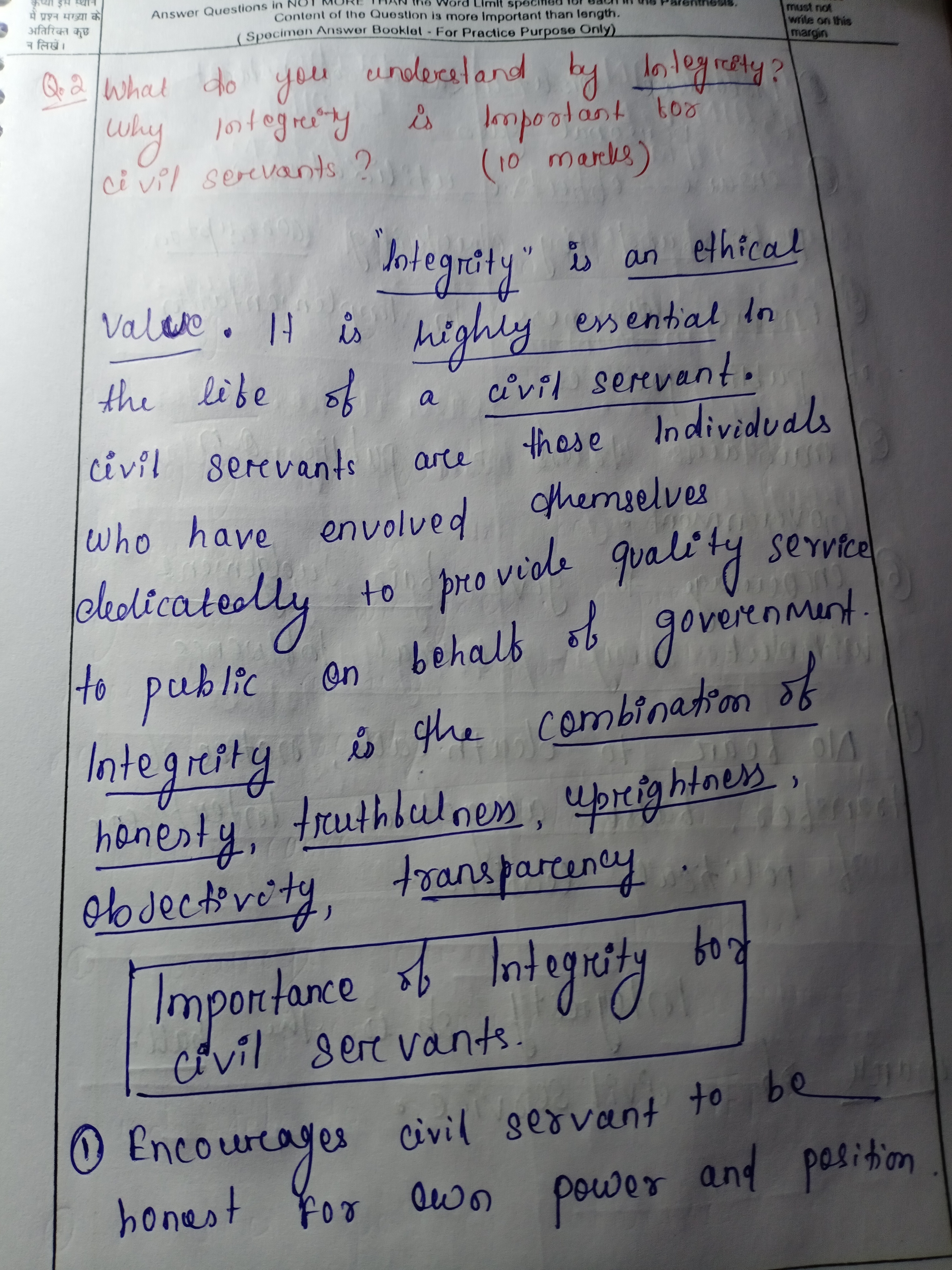 2.) What do you understand by integrity? Why integrity is important for civil servants?