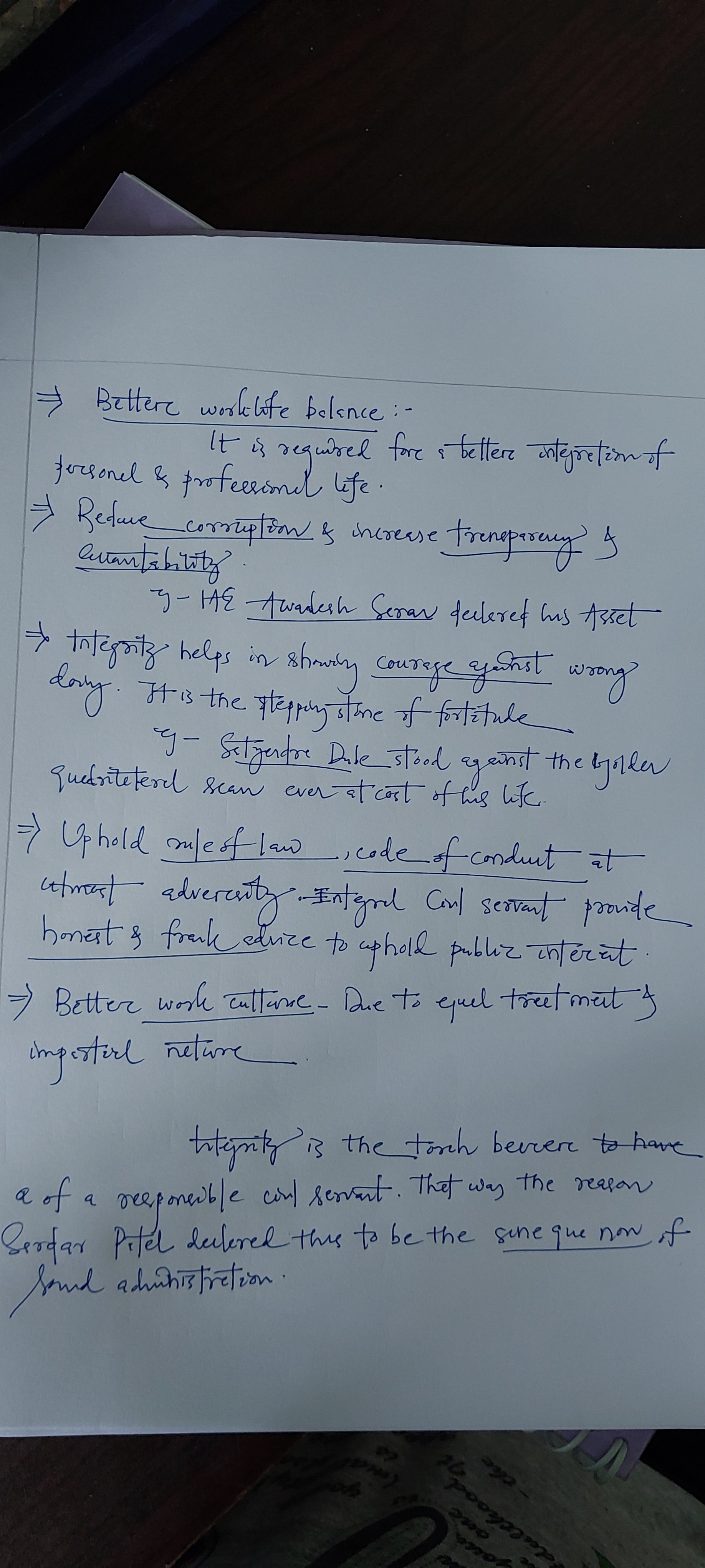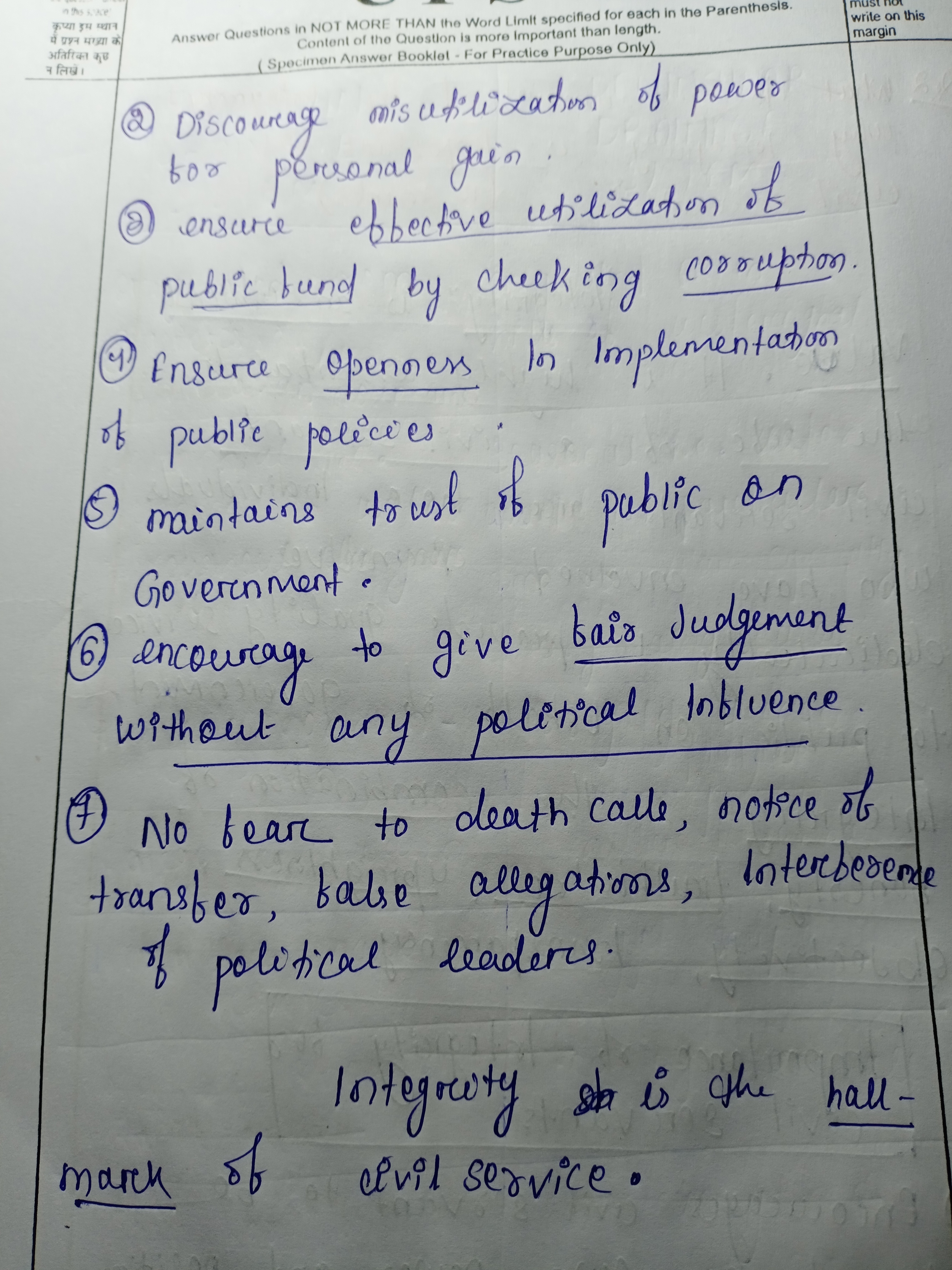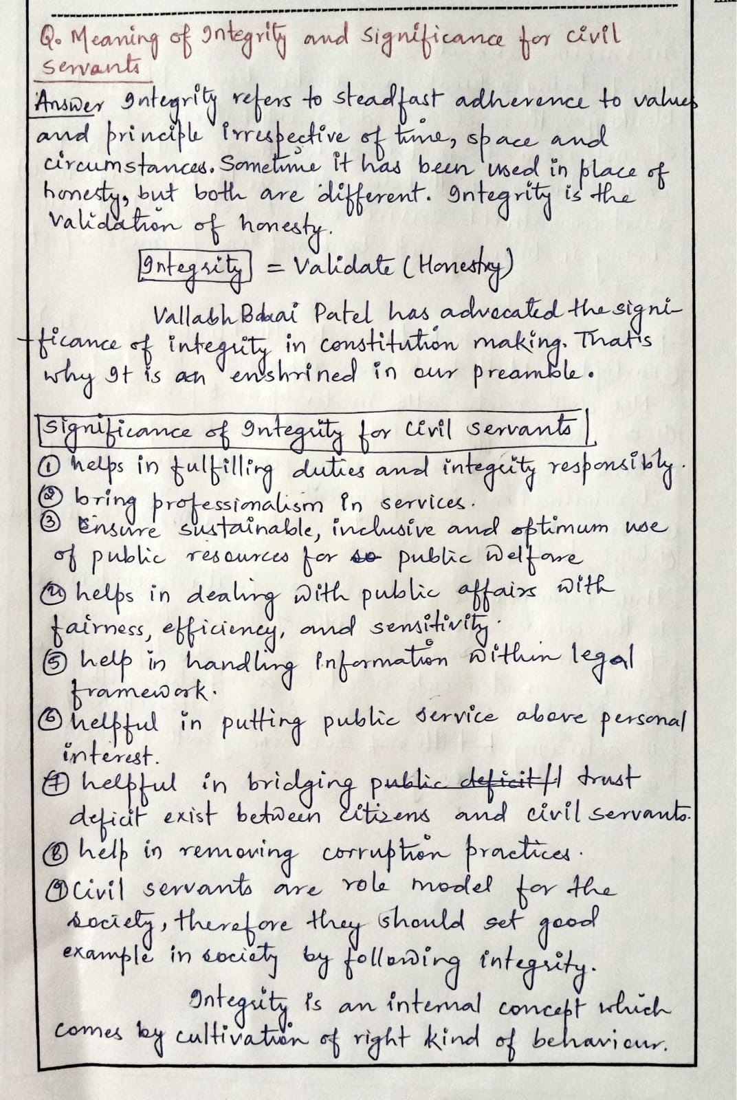 2.) What do you understand by integrity? Why integrity is important for civil servants?
