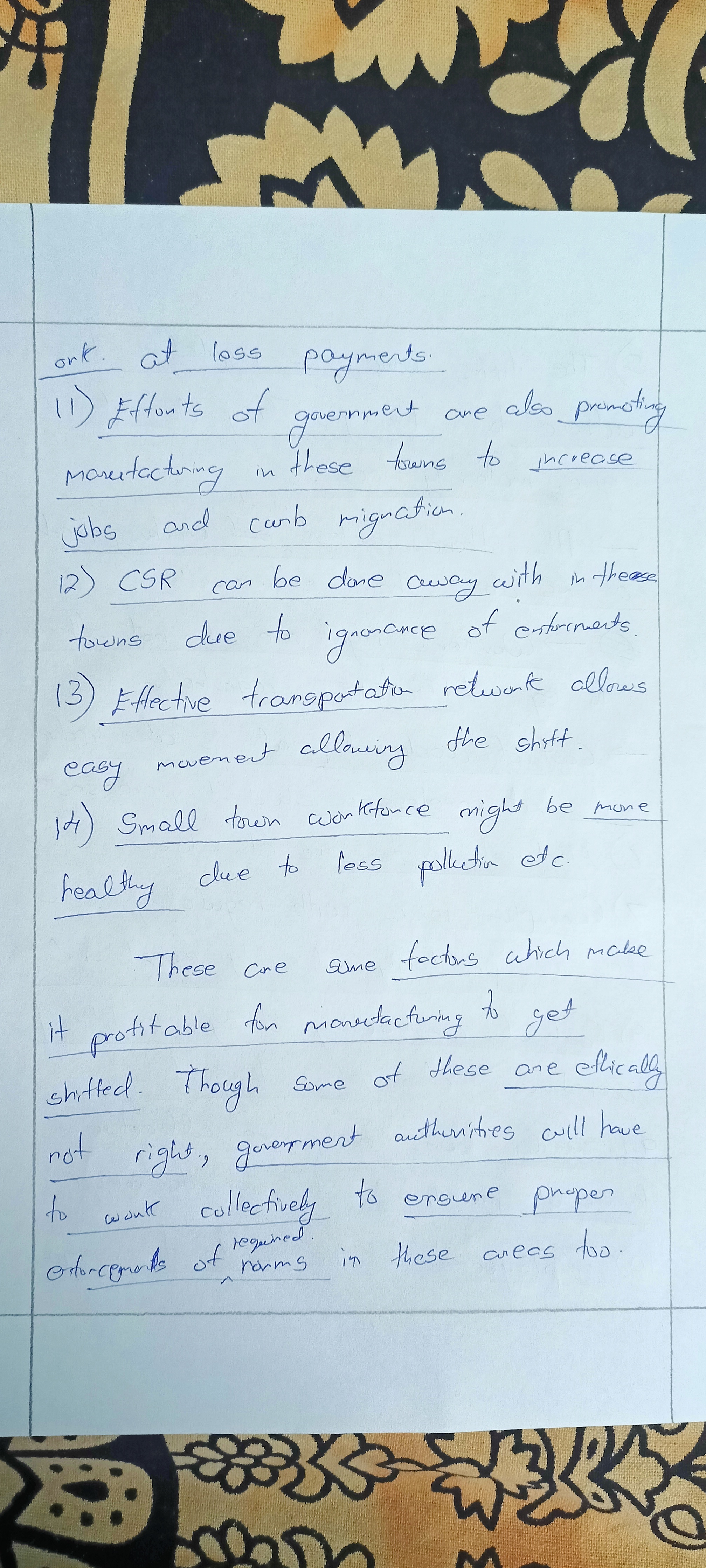 Many reasons are relevant and appropriate. However some of the arguments can be avoided like less regulations (e.g., maternity leave, the Law has no such distinction that units located in rural areas don’t have to provide for leaves). Similarly many other points are applicable for both rural/urban areas and can be avoided.