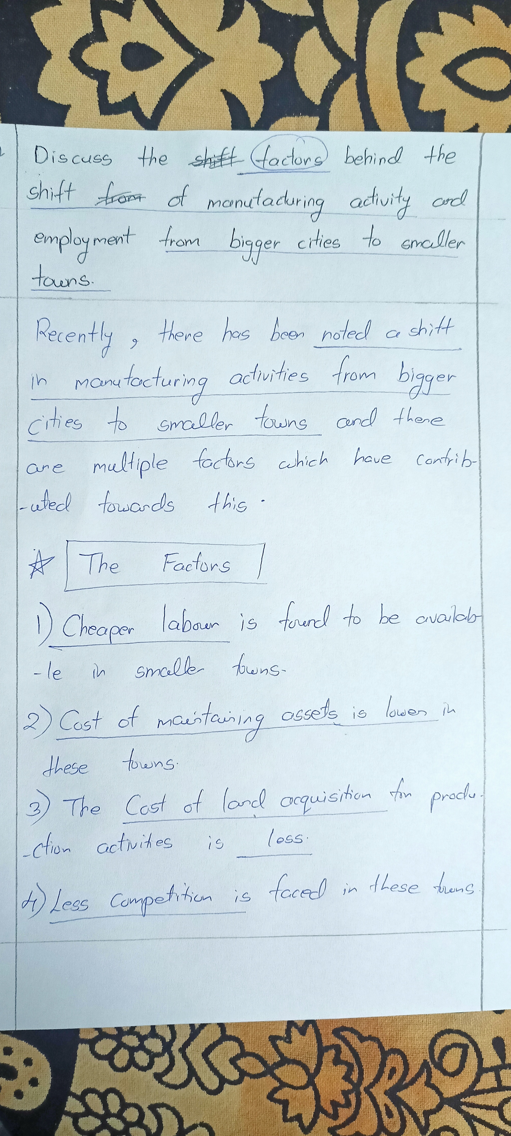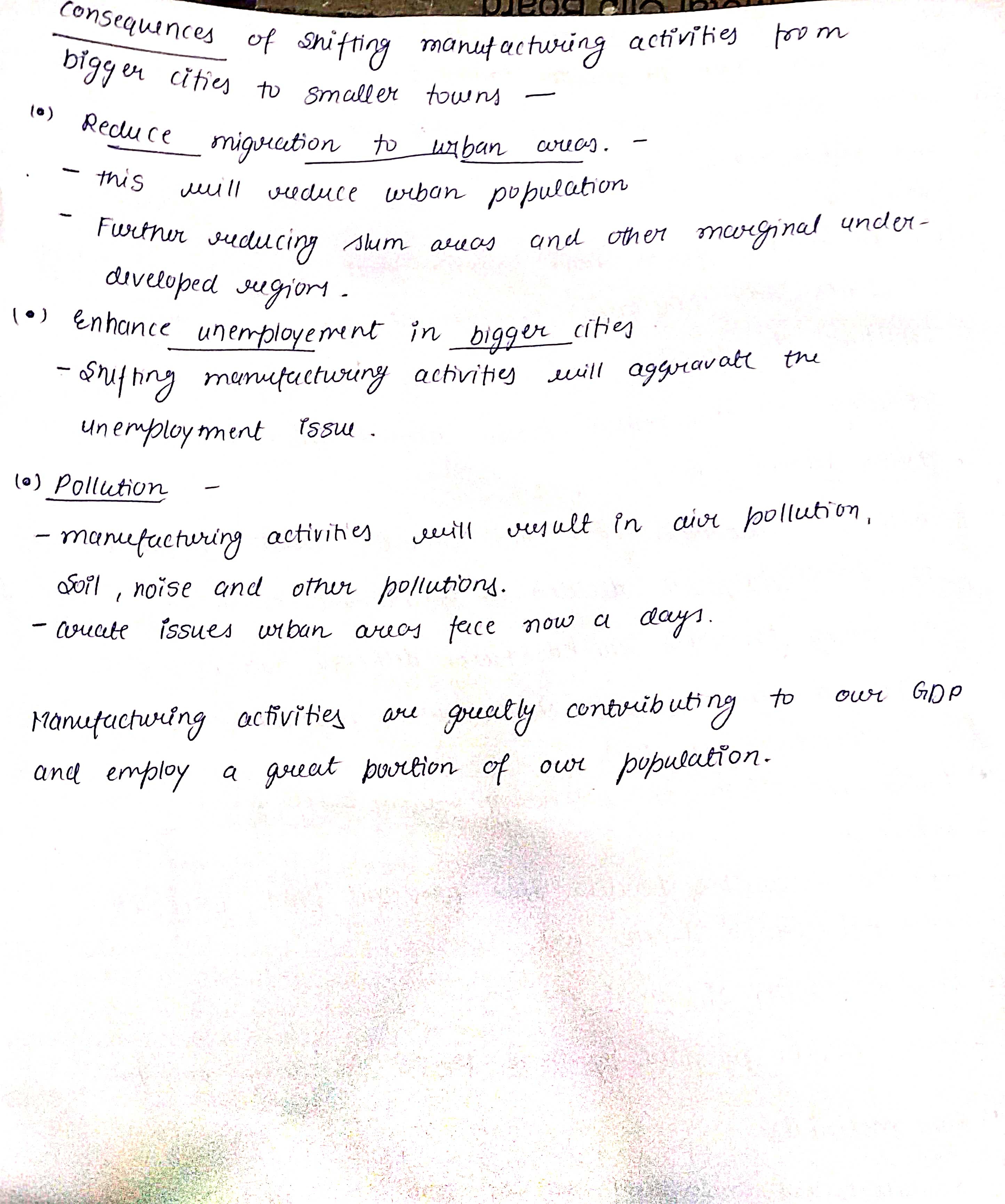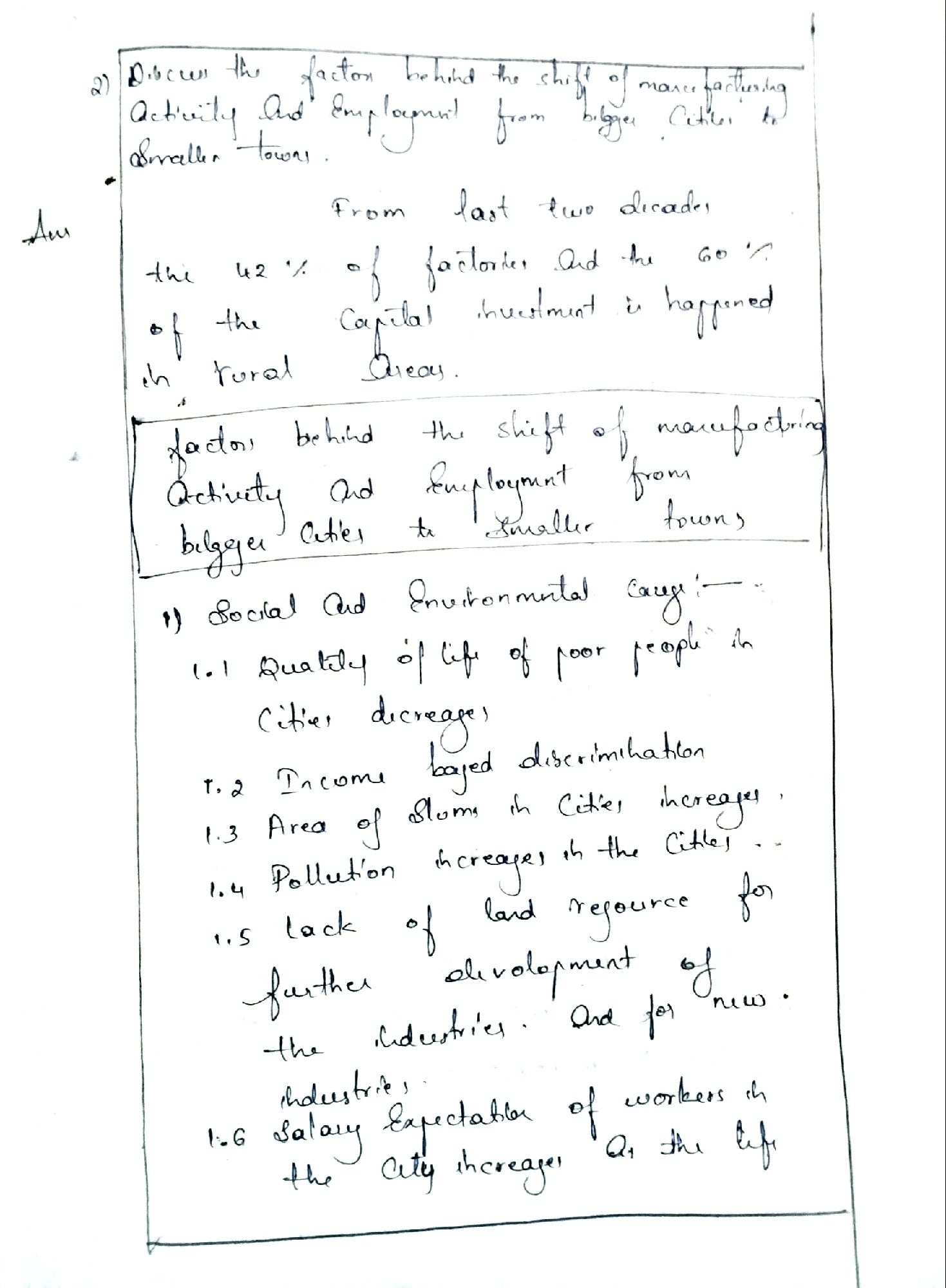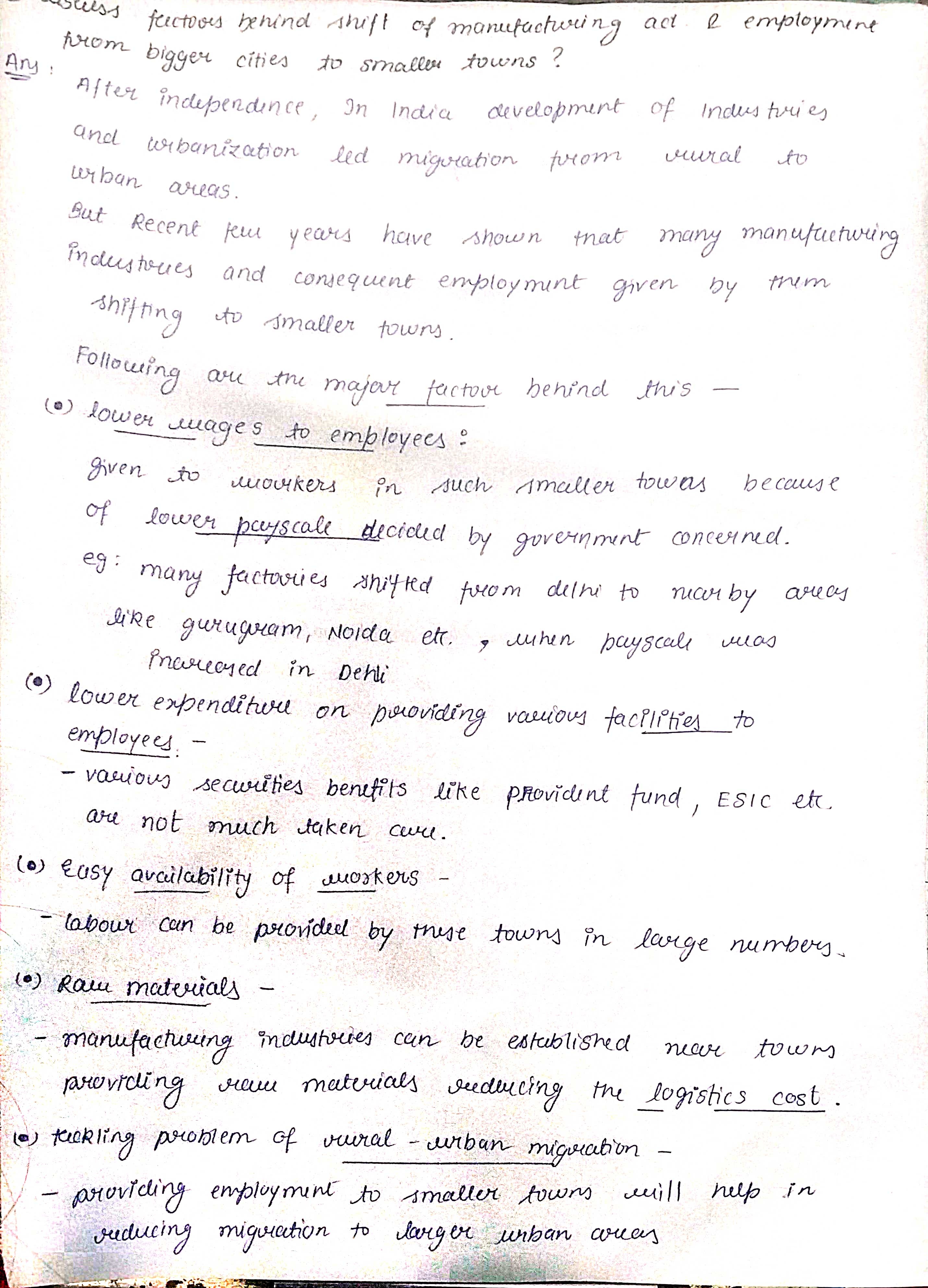2) Discuss the factors behind the shift of manufacturing activity and employment from bigger cities to smaller towns.