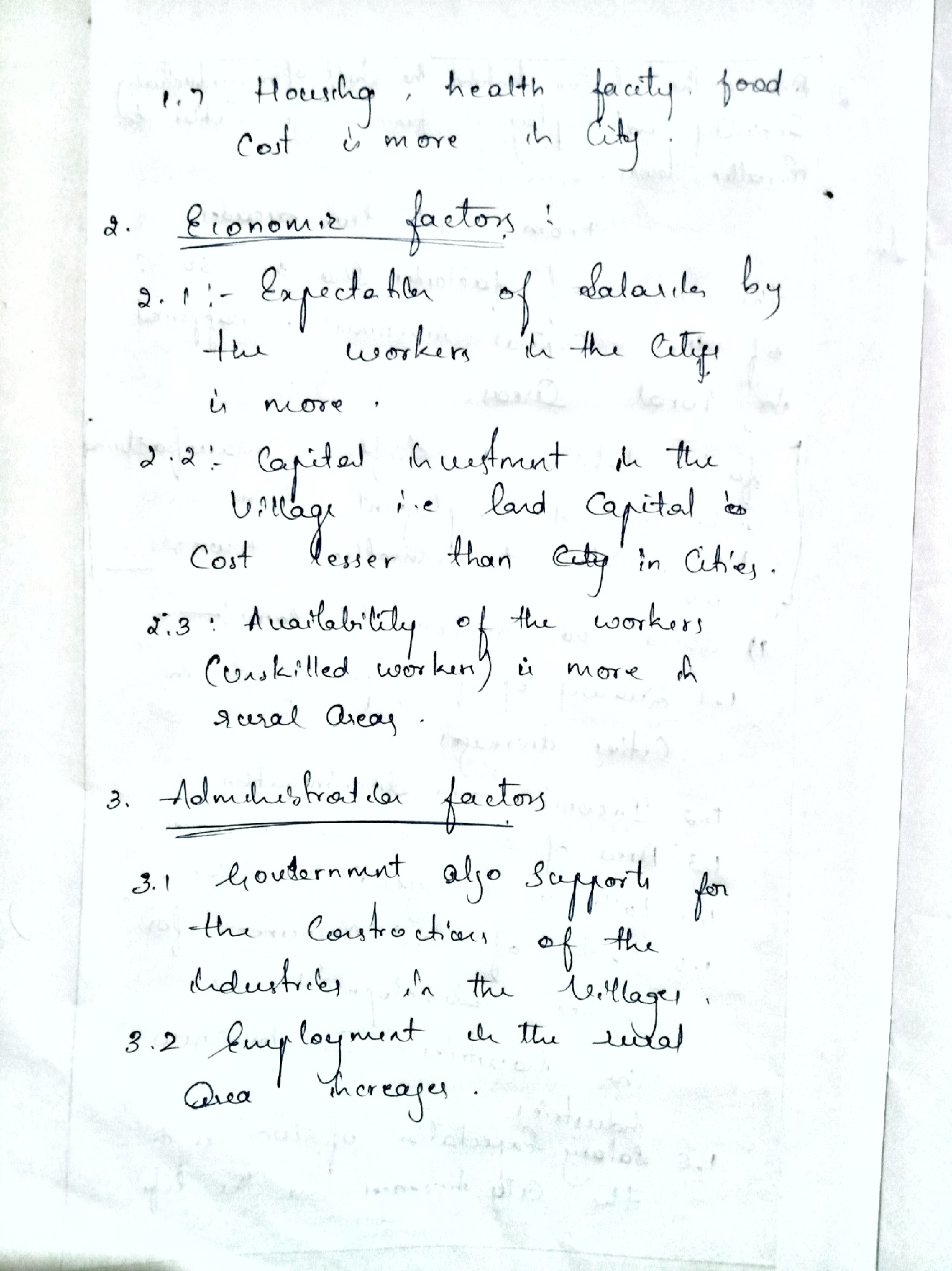1) Urban space crunch- As the factories are becoming more capital intensive the size and number of machineries are increasing.To accomodate them larger spaces are required but at reasonable rents. This feature is available in the rural areas.