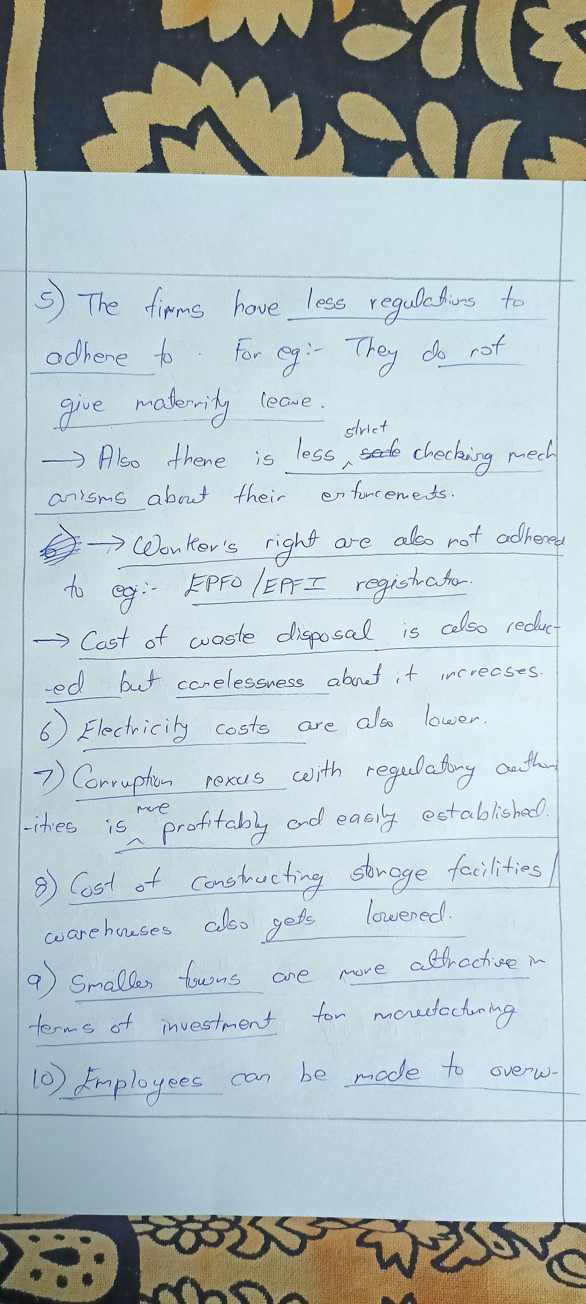 2)Lower wages in rural areas- our villages are source of cheap labour, this helps manufacturing units to cut down their operating costs.