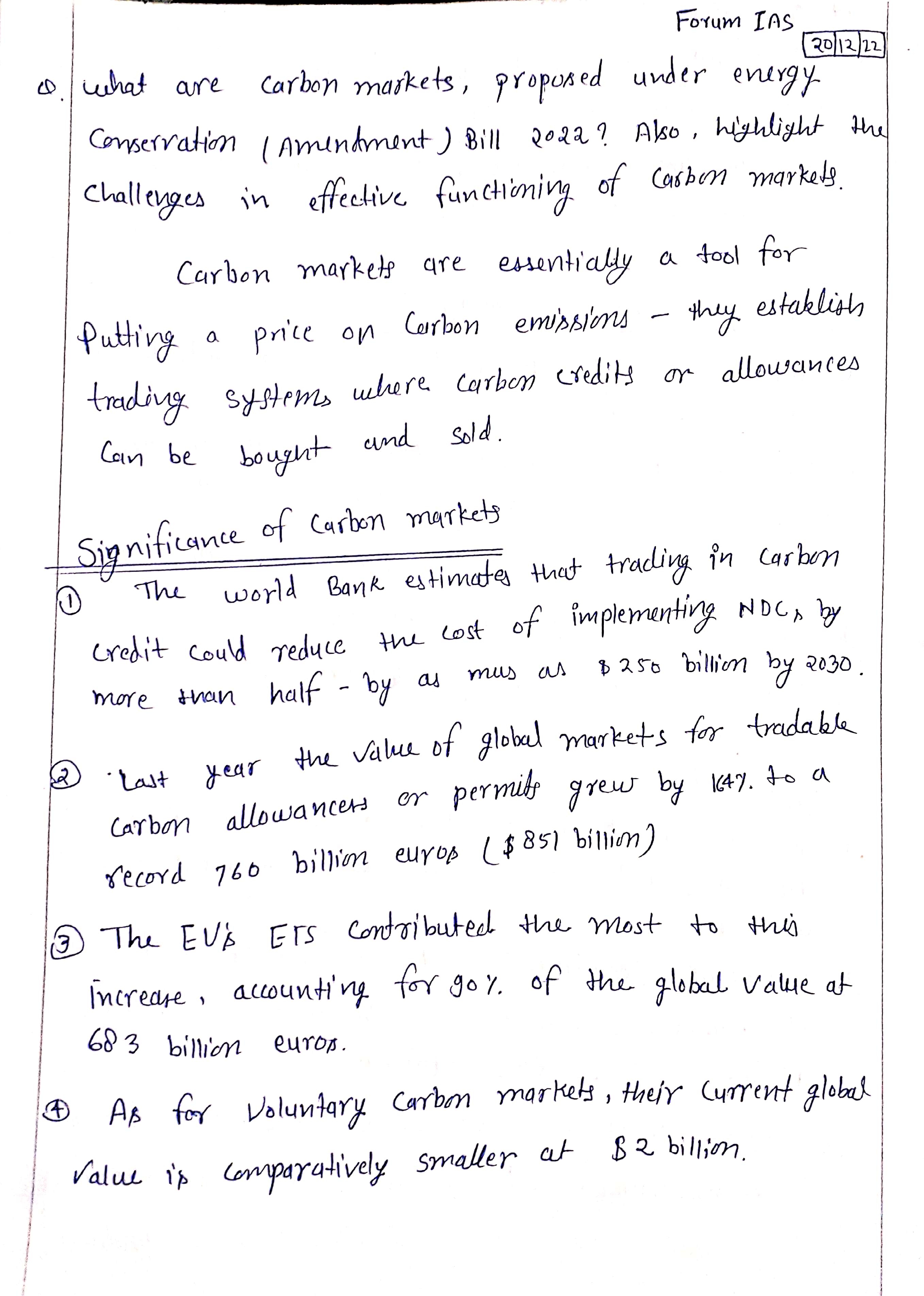 What are carbon markets, proposed under Energy Conservation (Amendment) Bill, 2022? Also, highlight the challenges in effective functioning of carbon markets.
