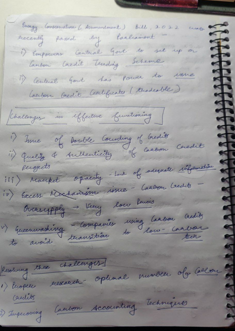 Add keywords like Greenwashing. It is difficult to define ‘baseline emissions’ and ‘additionality’. Carbon emissions offsets can be of low quality, and can be reversed (e.g., certificate issued against afforestation can be temporary if trees are cut after some time). India’s PAT Scheme has not proved to be very effective, so implementation will be crucial.