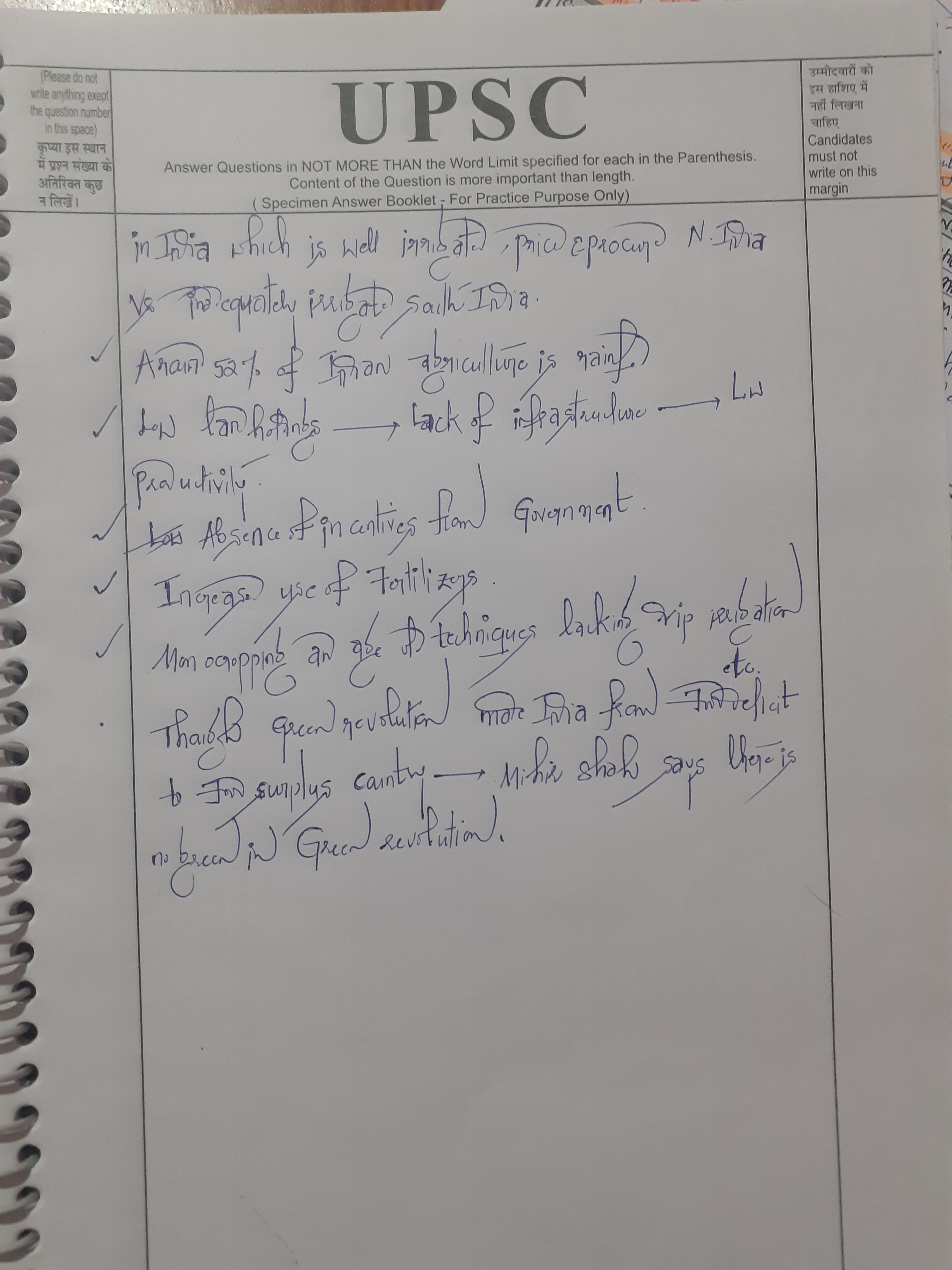 2. Some key points were missing: like impact of climate change on farm productivity, the distorted crop pattern etc.