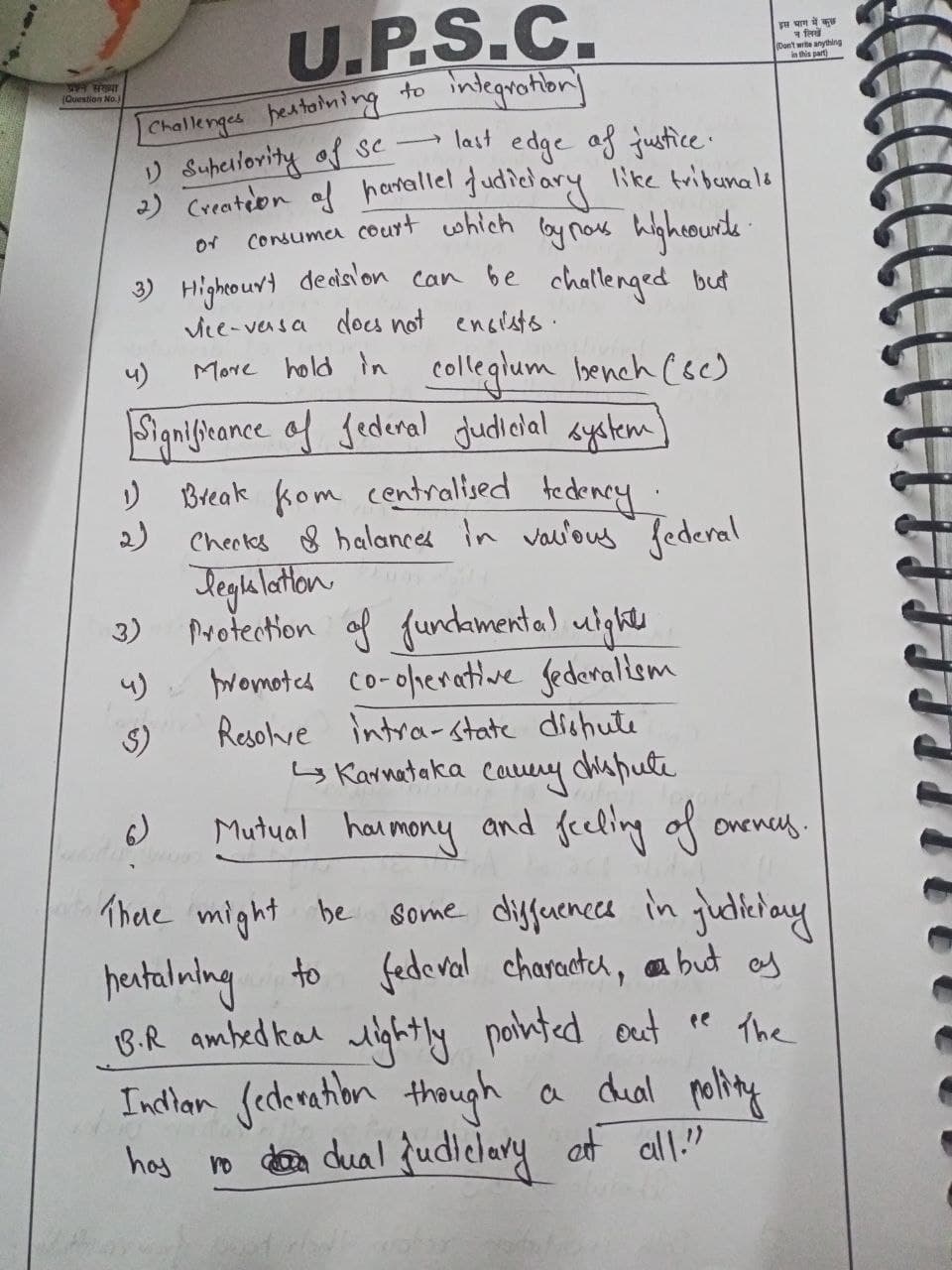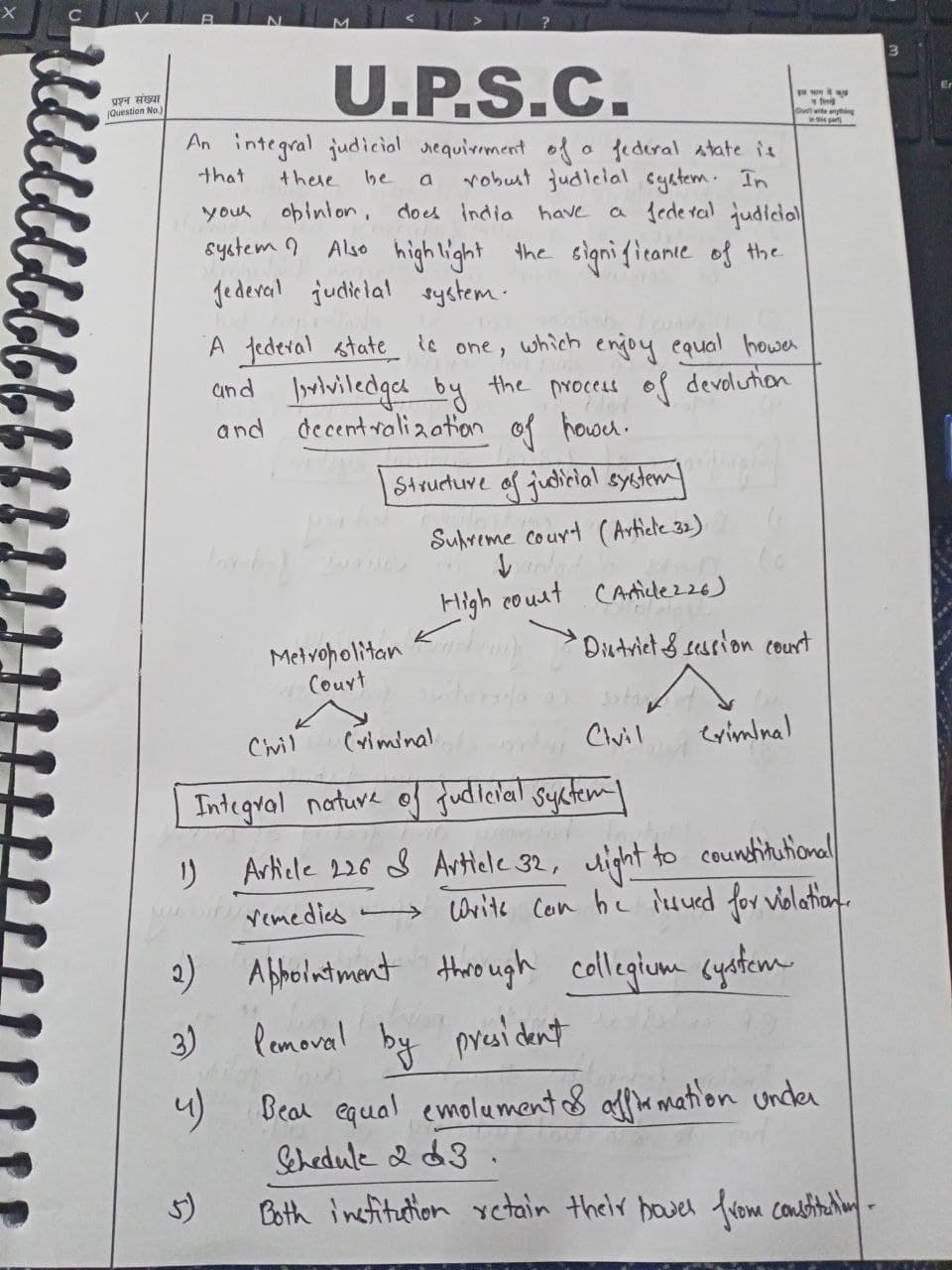 2. Give a clear assessment in your words: whether India has a federal or unitary judicial system, that bit is missing although it is implicit when you list down points for ‘integral nature’. But since question statement has word ‘in your opinion’; mention your assessment explicitly in ‘yes’ or ‘no’