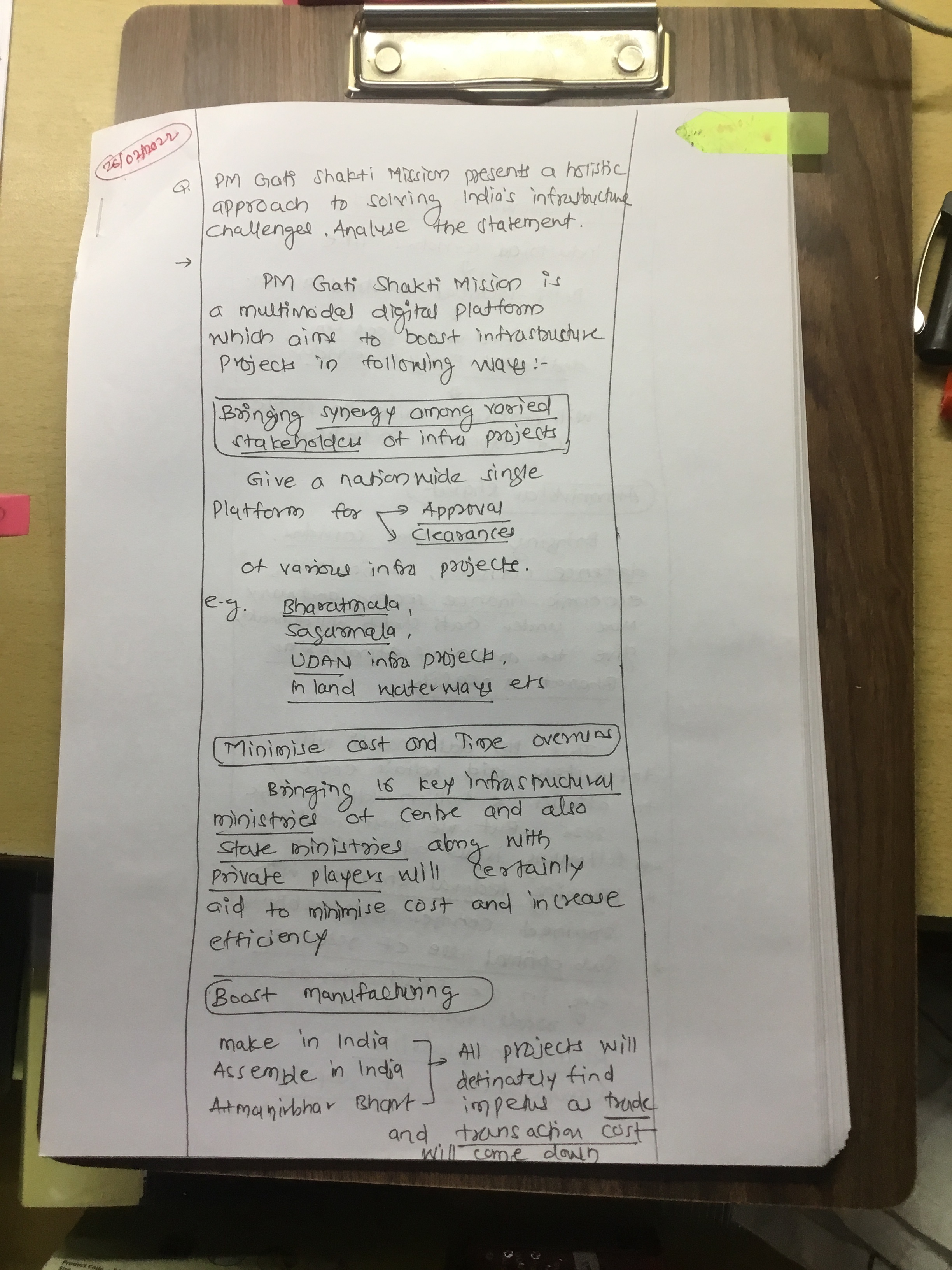 1) PM Gati Shakti Mission presents a holistic approach to solving India’s infrastructure challenges. Analyze the statement.
