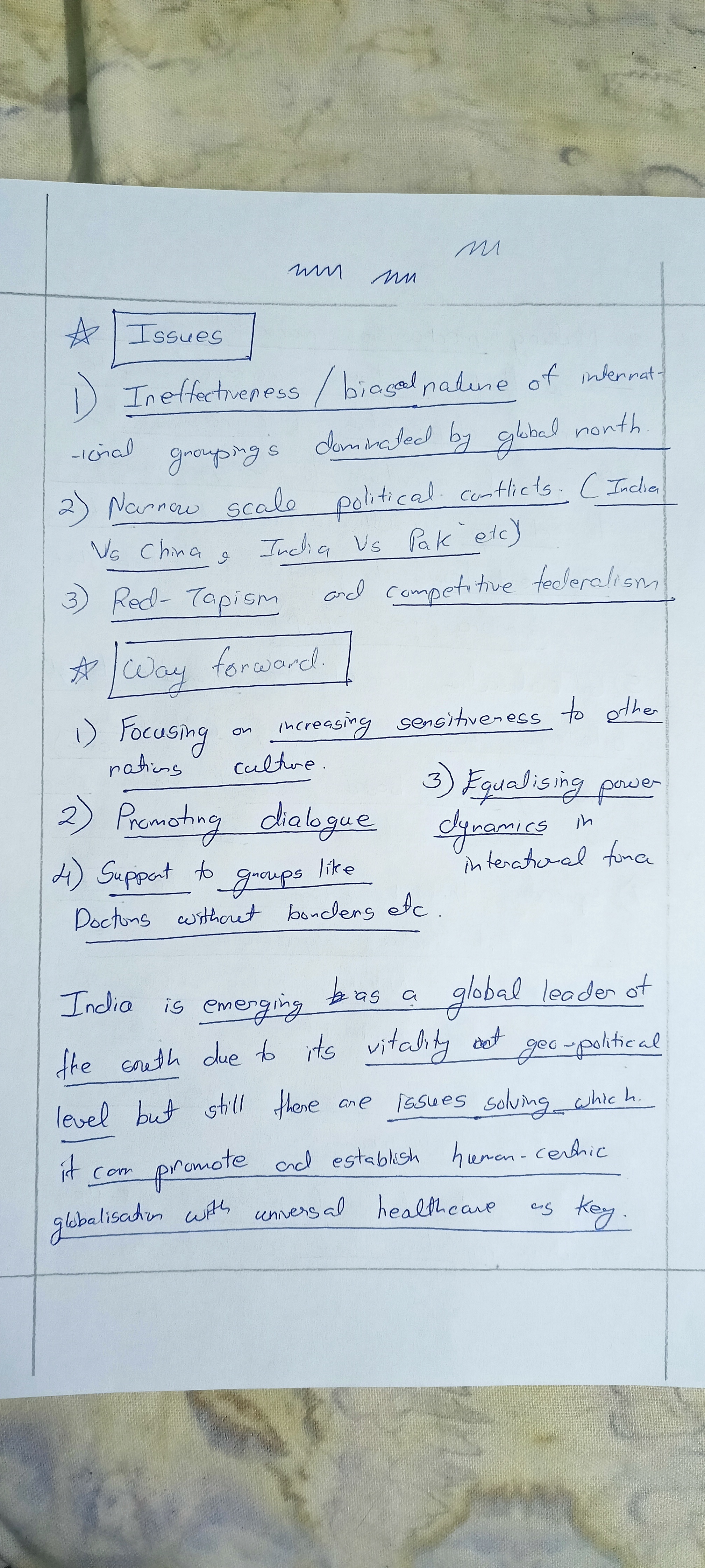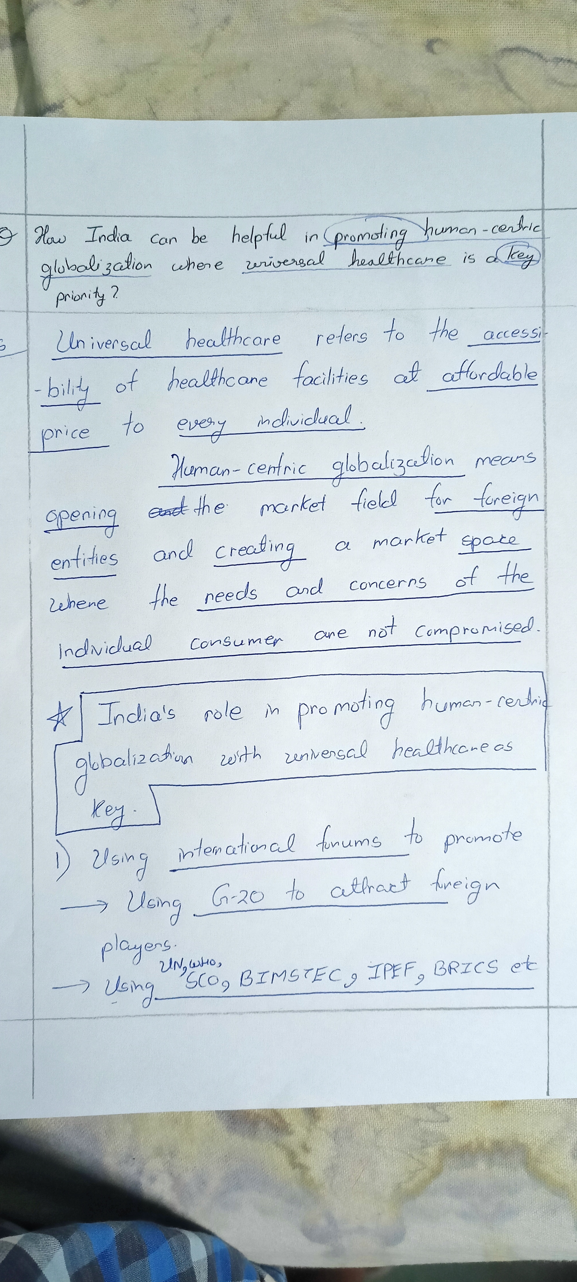 1) How India can be helpful in promoting human-centric globalization where universal healthcare is a key priority?