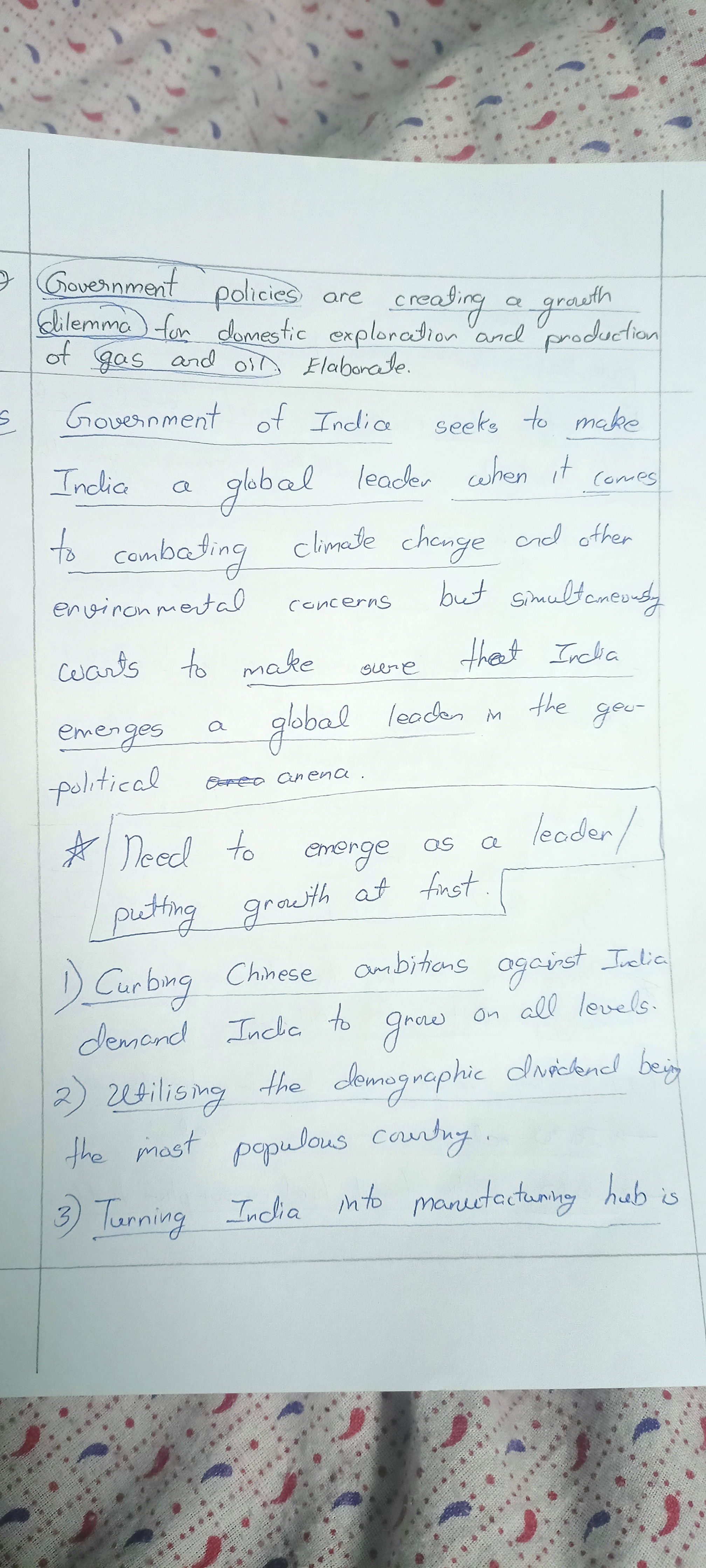 2) Government policies are creating a growth dilemma for domestic exploration and production of oil and gas. Elaborate.
