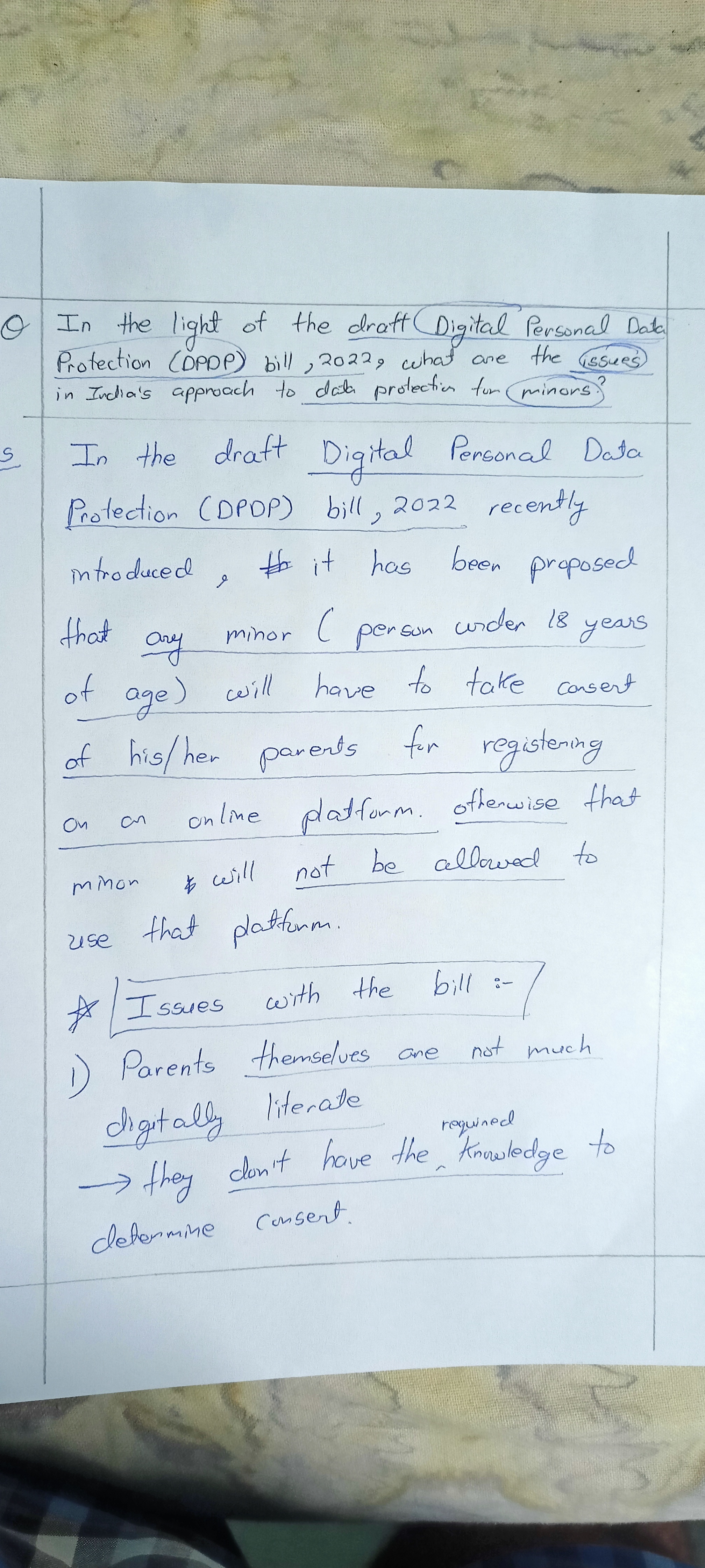 In the light of the draft Digital Personal Data Protection (DPDP) Bill, 2022, what are the issues in India’s approach to data protection for minors?