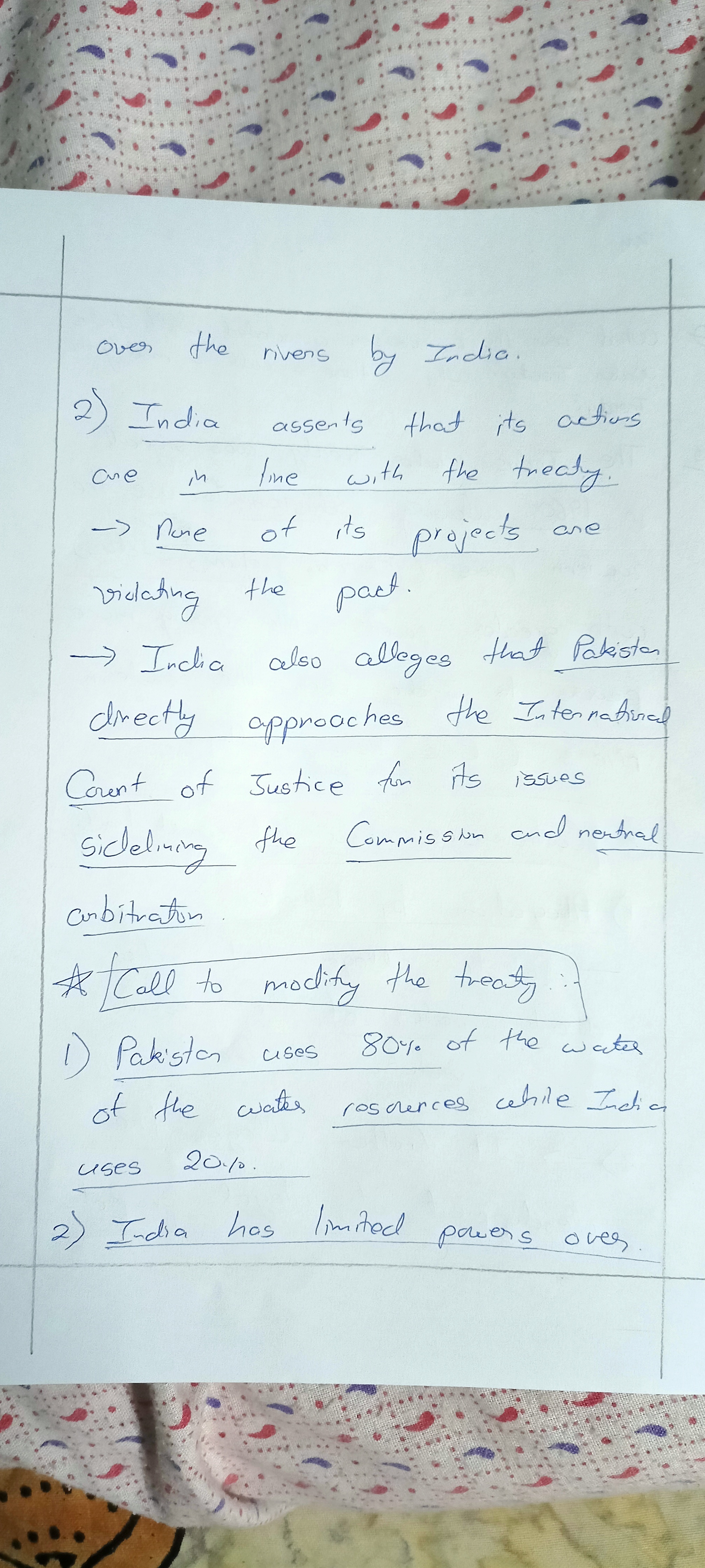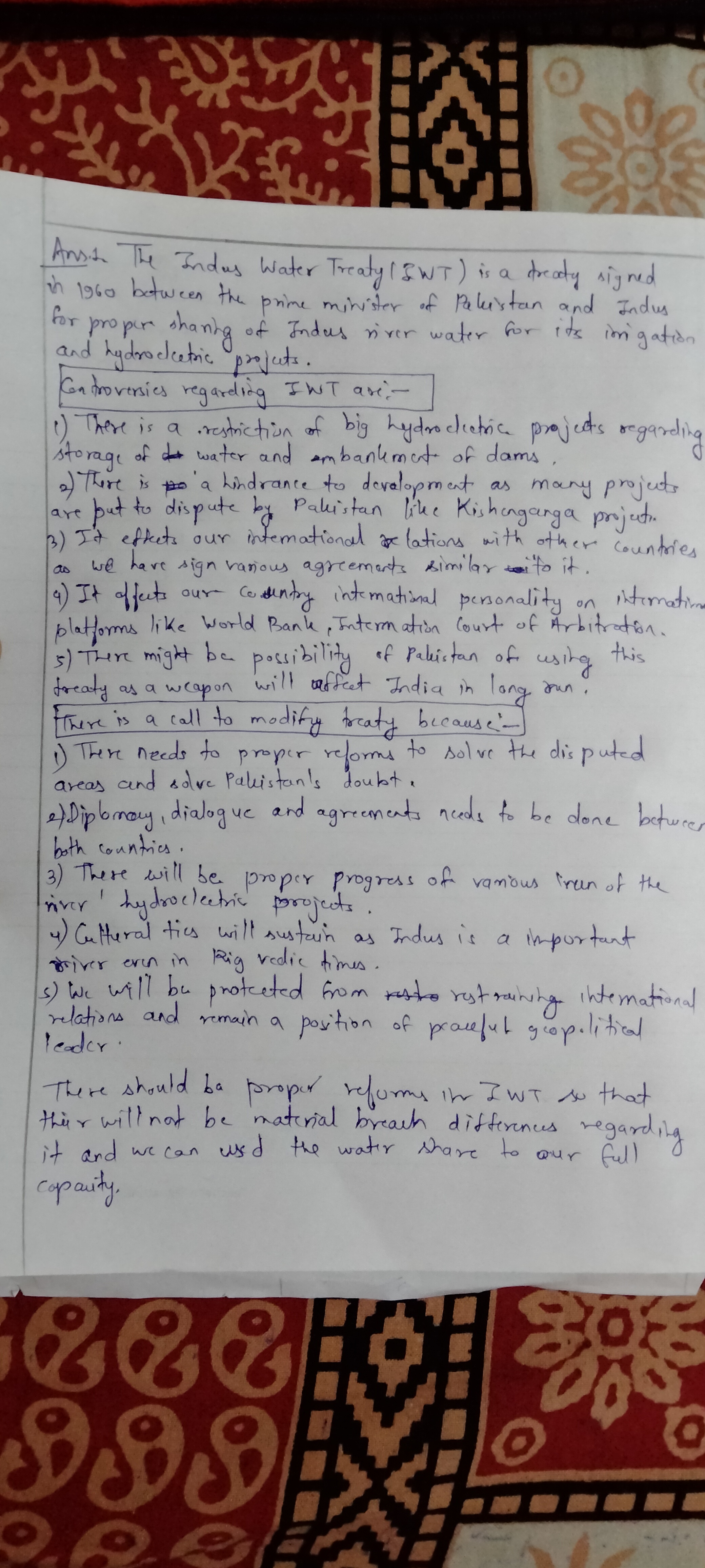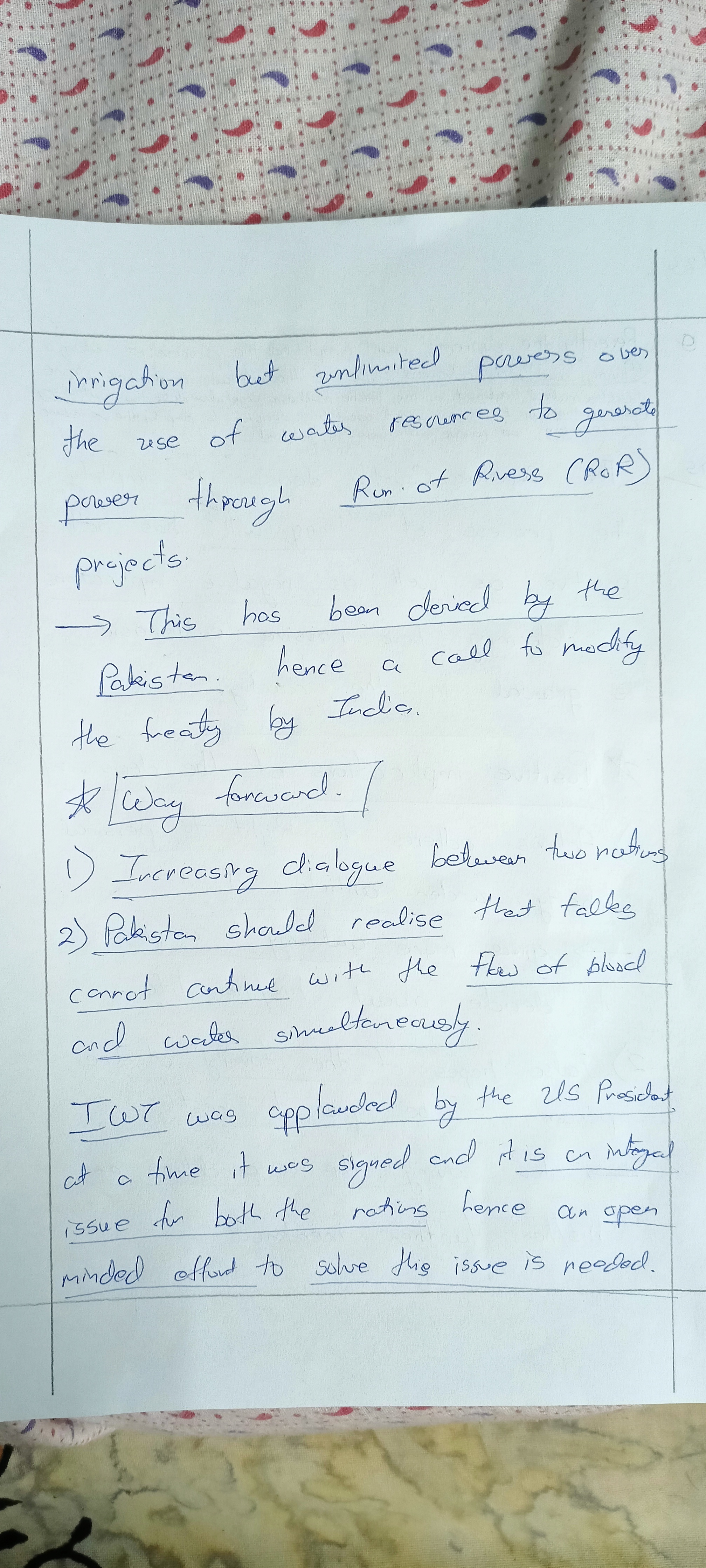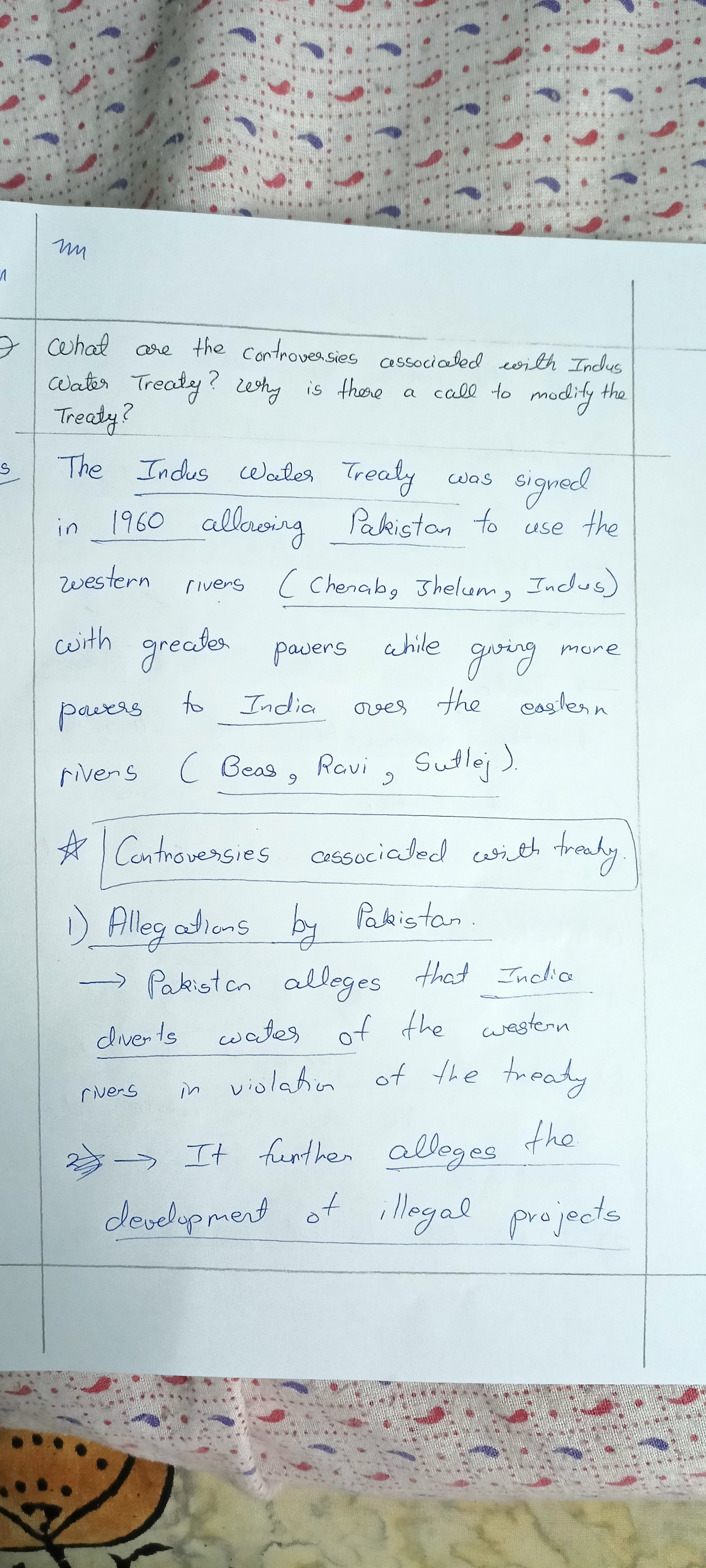 1) What are the controversies associated with Indus Waters Treaty? Why is there a call to modify the Treaty?