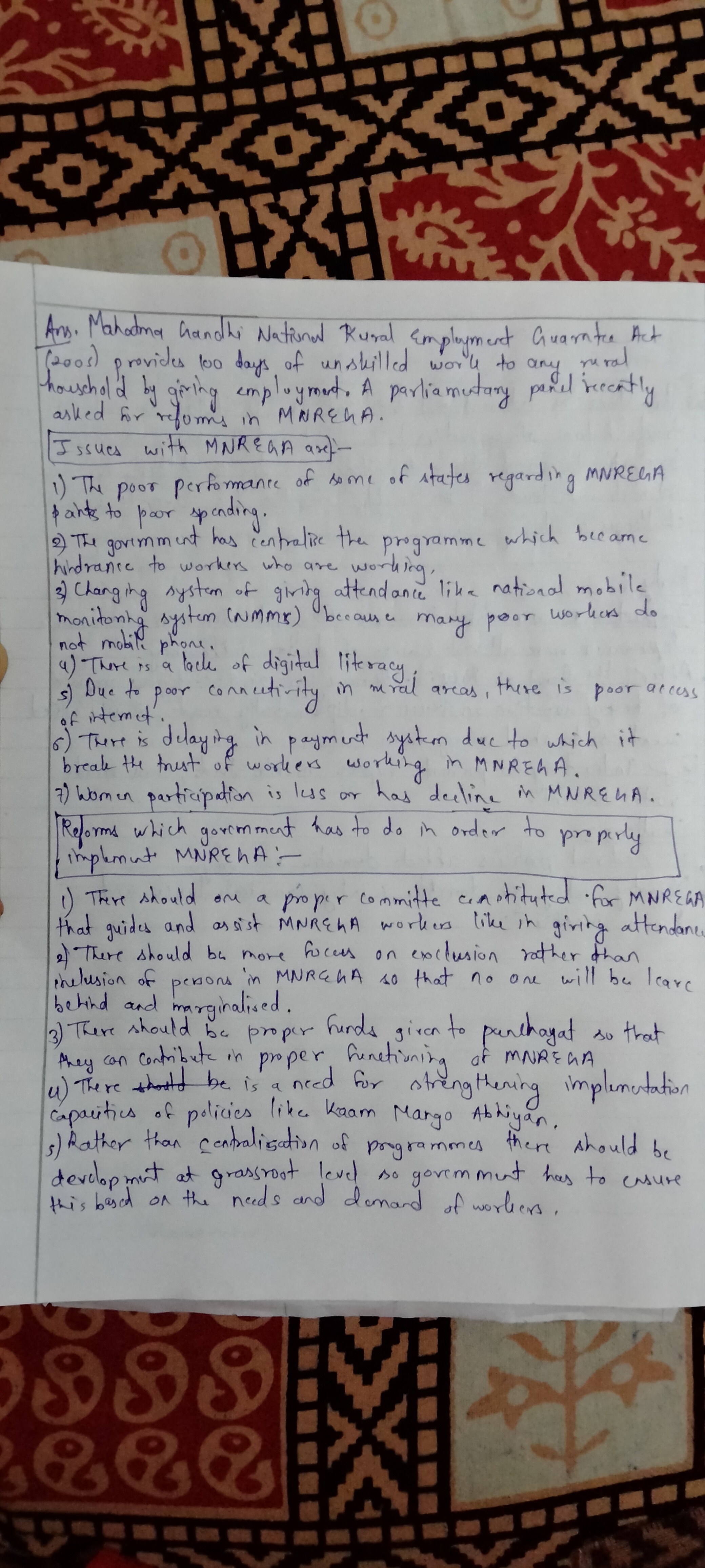2) NREGA is underperforming because its most basic design principles are not being properly followed. Discuss.